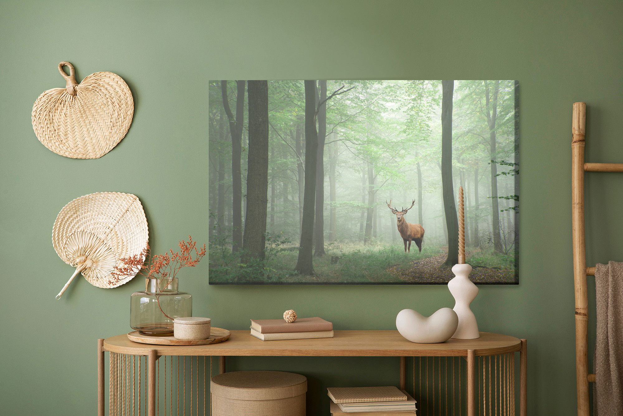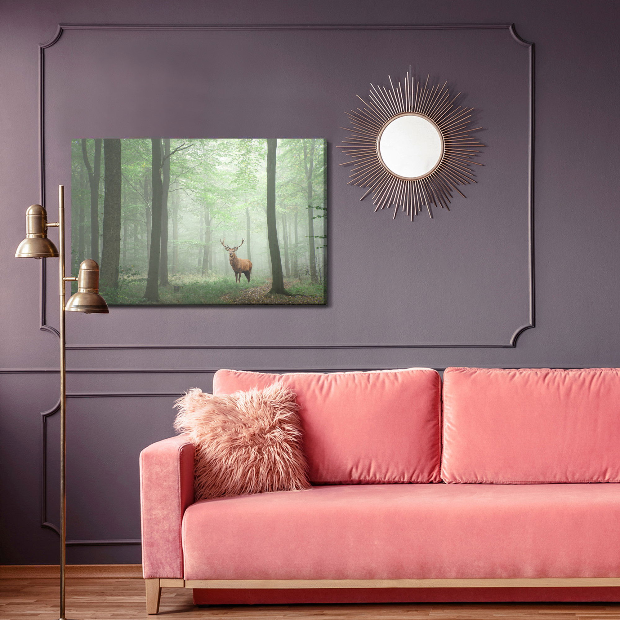 Ljuddämpande tavla – Deer in the misty forest för lugnare rum och mjukare akustik