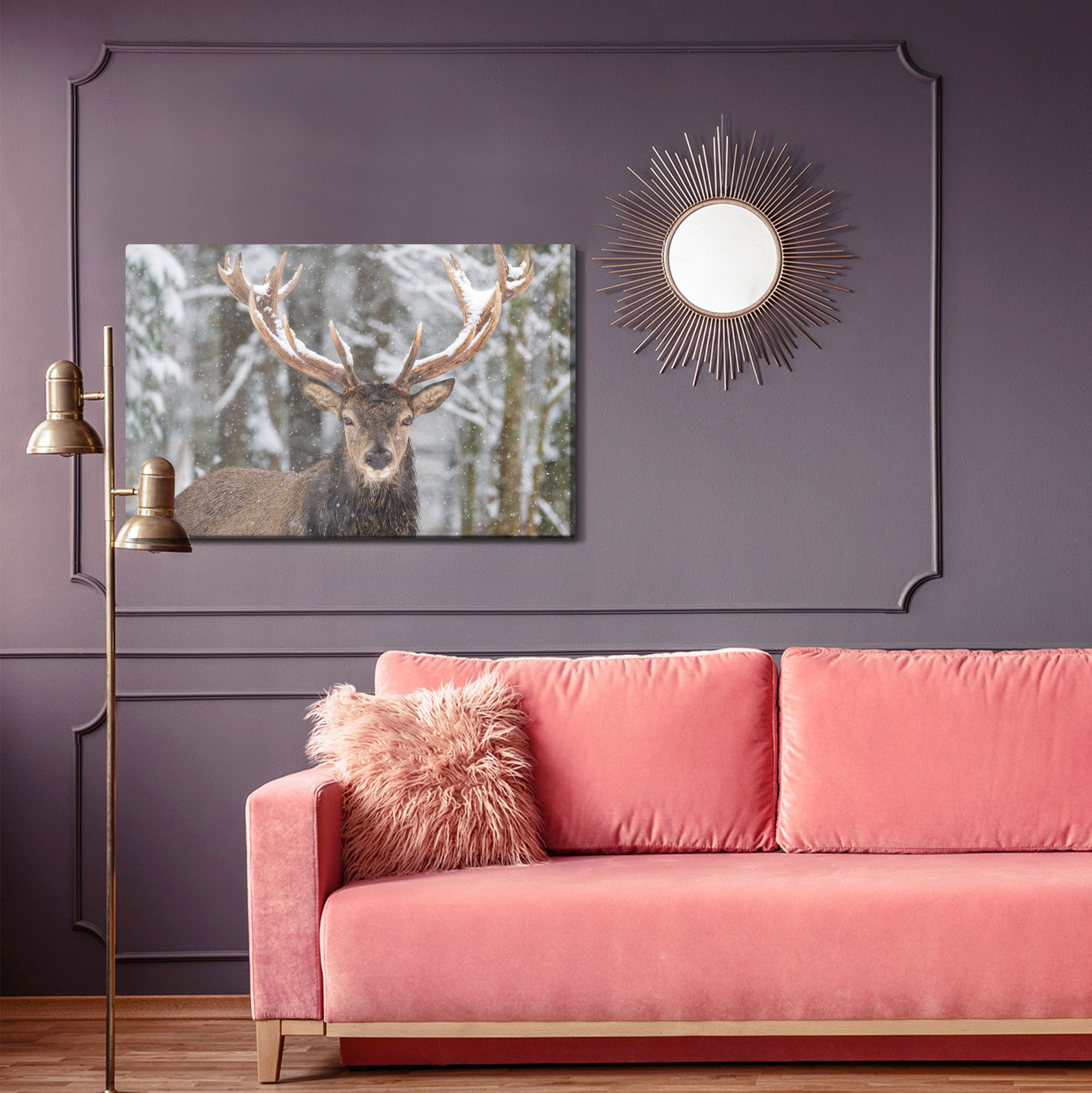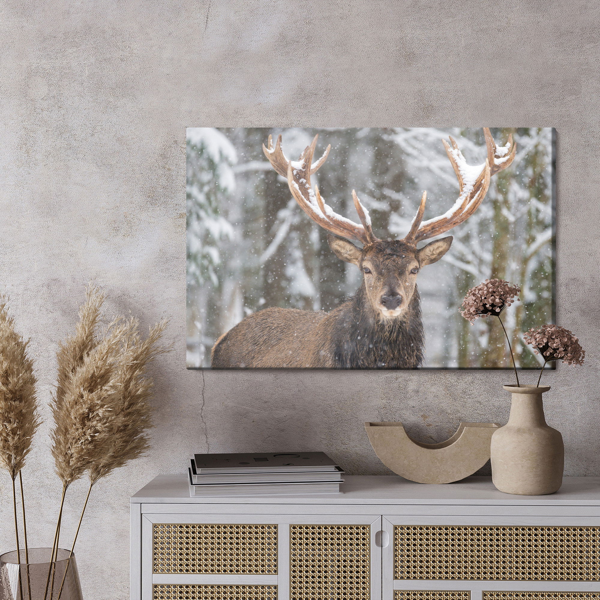Ljuddämpande tavla – Deer in the winter forest för lugnare rum och mjukare akustik