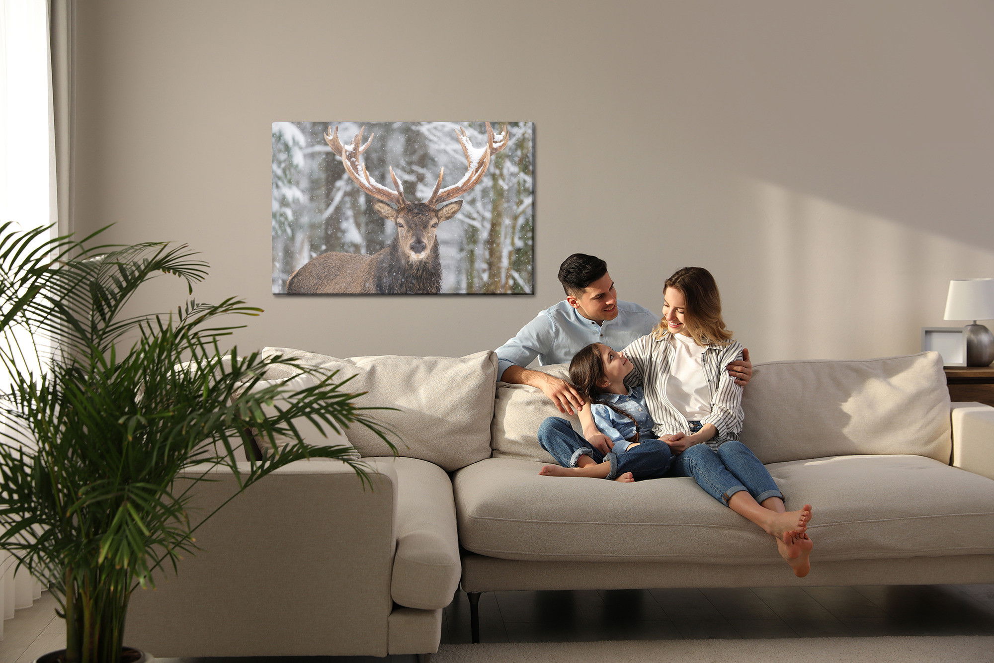 Motivet Deer in the winter forest återges med hög färgprecision och detaljrikedom tack vare HP Latex-teknologi. Trycket sker med vattenbaserade, luktfria och GREENGUARD Gold-certifierade bläck som ger en upplösning på upp till 300 DPI. Färgerna är UV-beständiga och behåller sin styrka även i ljusa rum, vilket gör tavlan lämplig för både hem- och offentliga miljöer.
