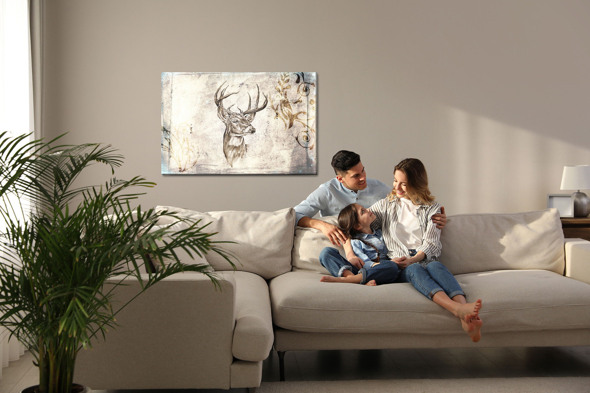 Ljuddämpande tavla – Deer in vintage style för lugnare rum och mjukare akustik