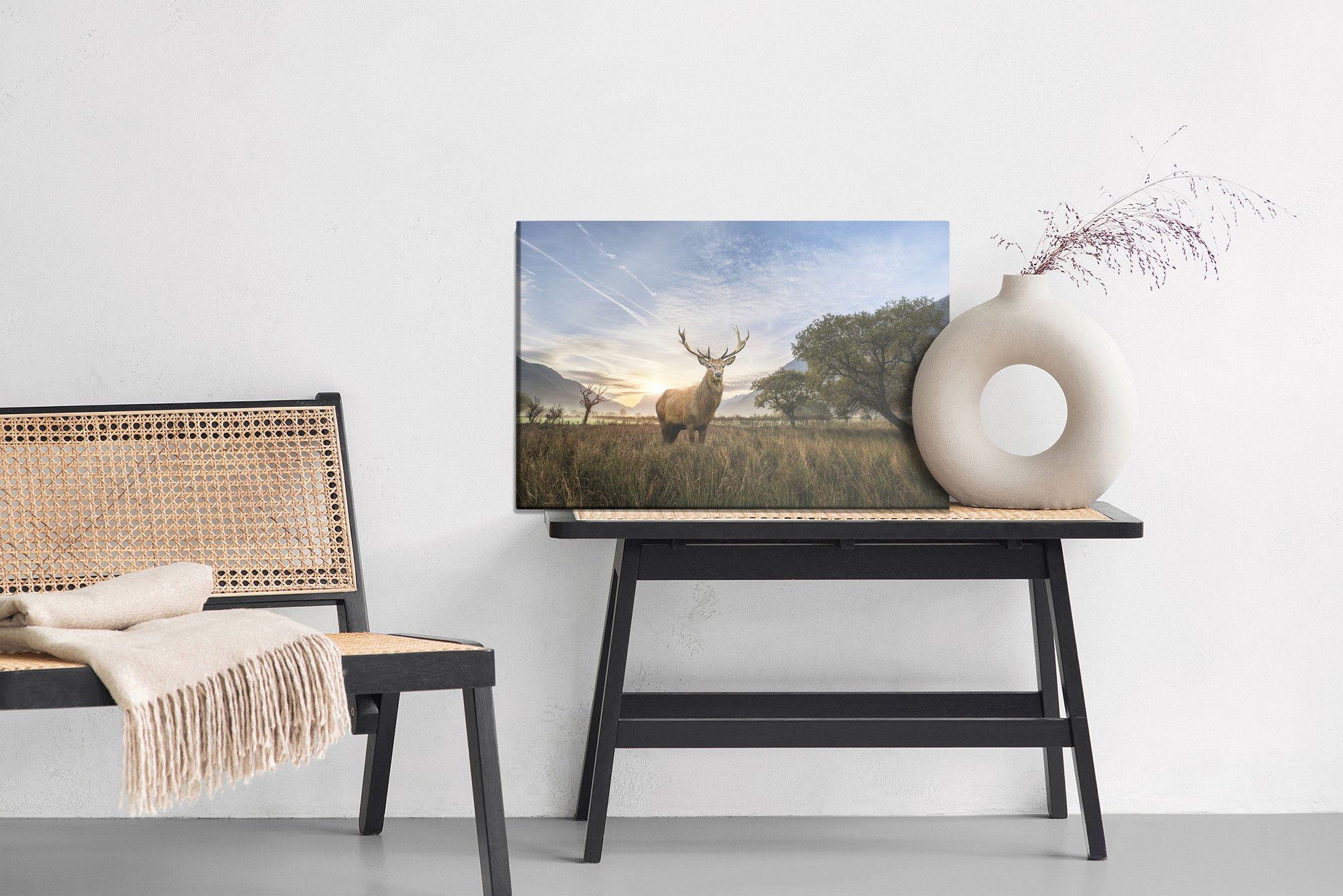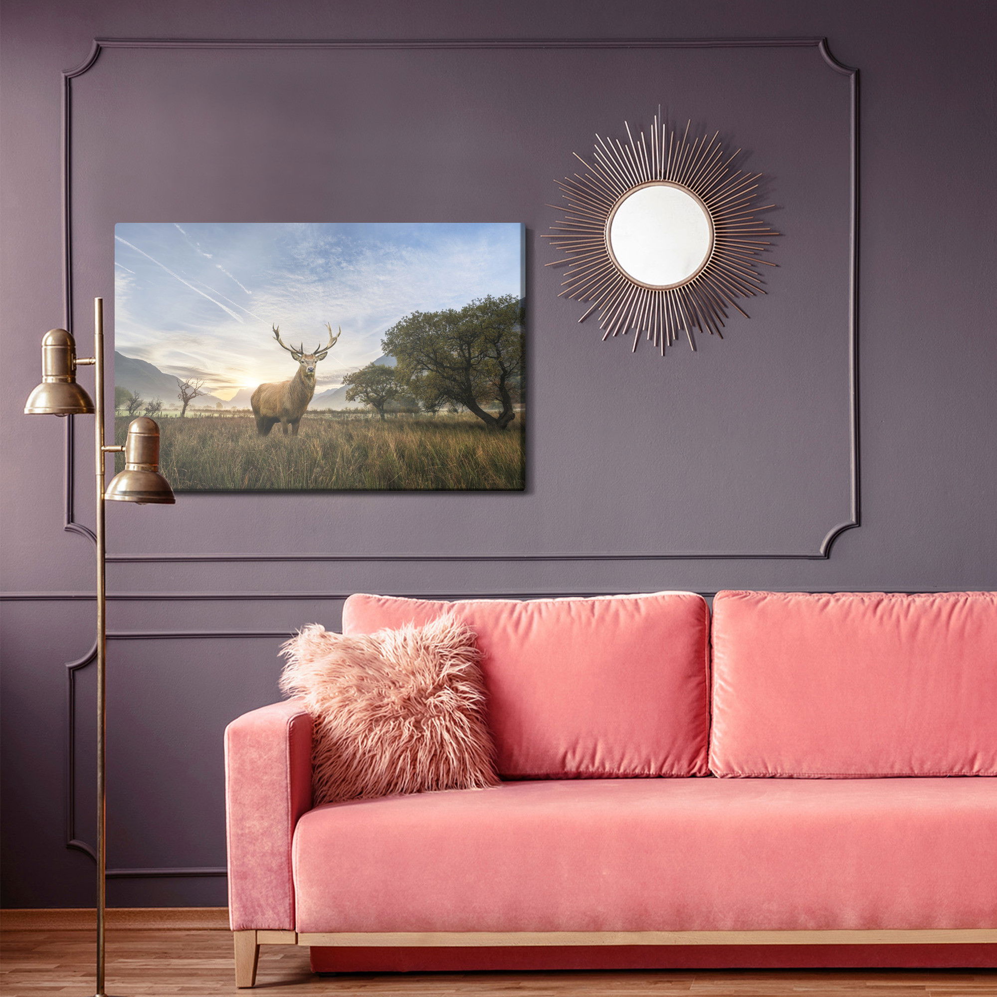 Motivet Deer on the background återges med hög färgprecision och detaljrikedom tack vare HP Latex-teknologi. Trycket sker med vattenbaserade, luktfria och GREENGUARD Gold-certifierade bläck som ger en upplösning på upp till 300 DPI. Färgerna är UV-beständiga och behåller sin styrka även i ljusa rum, vilket gör tavlan lämplig för både hem- och offentliga miljöer.