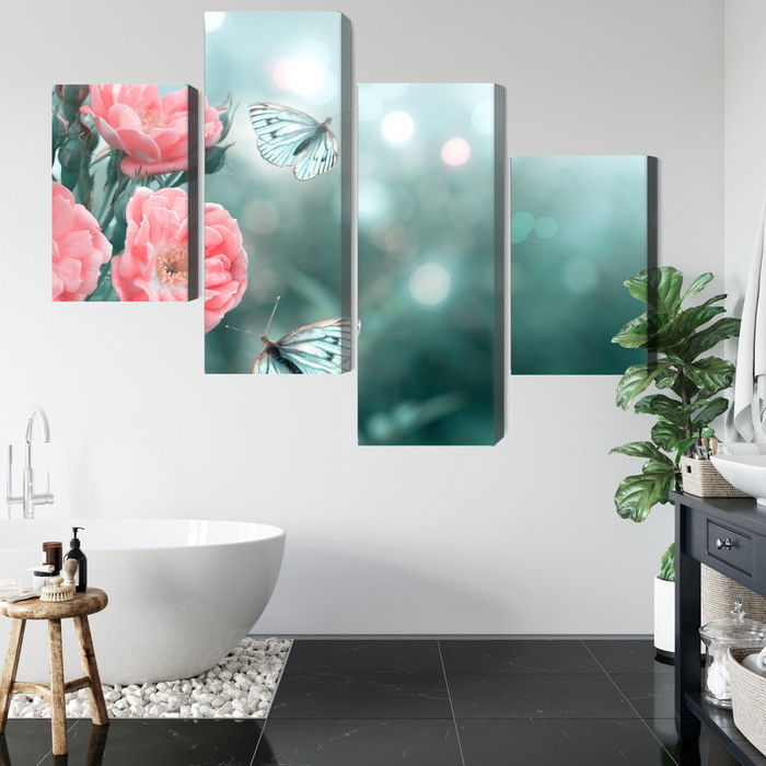 Motivet Delicate flowers and 3d återges med hög färgprecision och detaljrikedom tack vare HP Latex-teknologi. Trycket sker med vattenbaserade, luktfria och GREENGUARD Gold-certifierade bläck som ger en upplösning på upp till 300 DPI. Färgerna är UV-beständiga och behåller sin styrka även i ljusa rum, vilket gör tavlan lämplig för både hem- och offentliga miljöer.