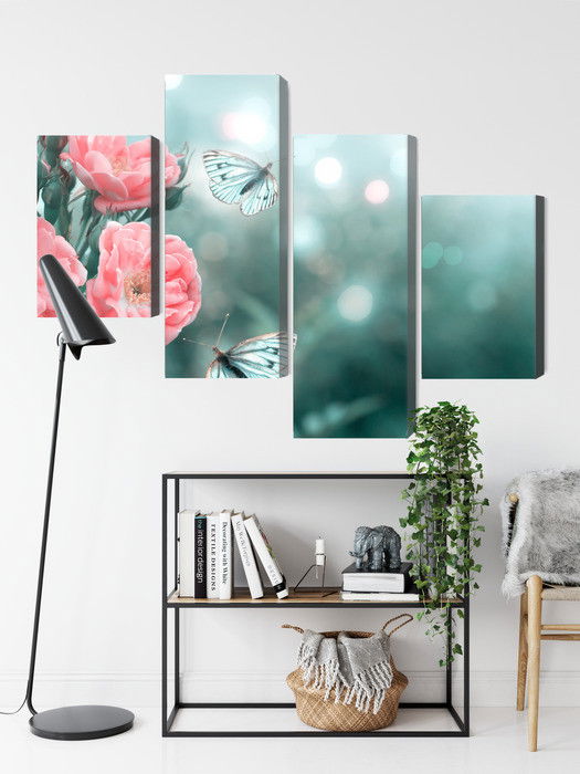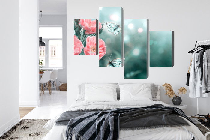 SilentDirects ljuddämpande tavla Delicate flowers and 3d kombinerar ett högupplöst motiv med avancerad akustikteknik. Varje tavla monteras i Sverige och bygger på en stabil canvastavla med fururam, där insidan av ramen fylls med en ljudabsorberande kärna av återvunnen polyester. Konstruktionen gör tavlan till ett både estetiskt och funktionellt inslag i rummet.