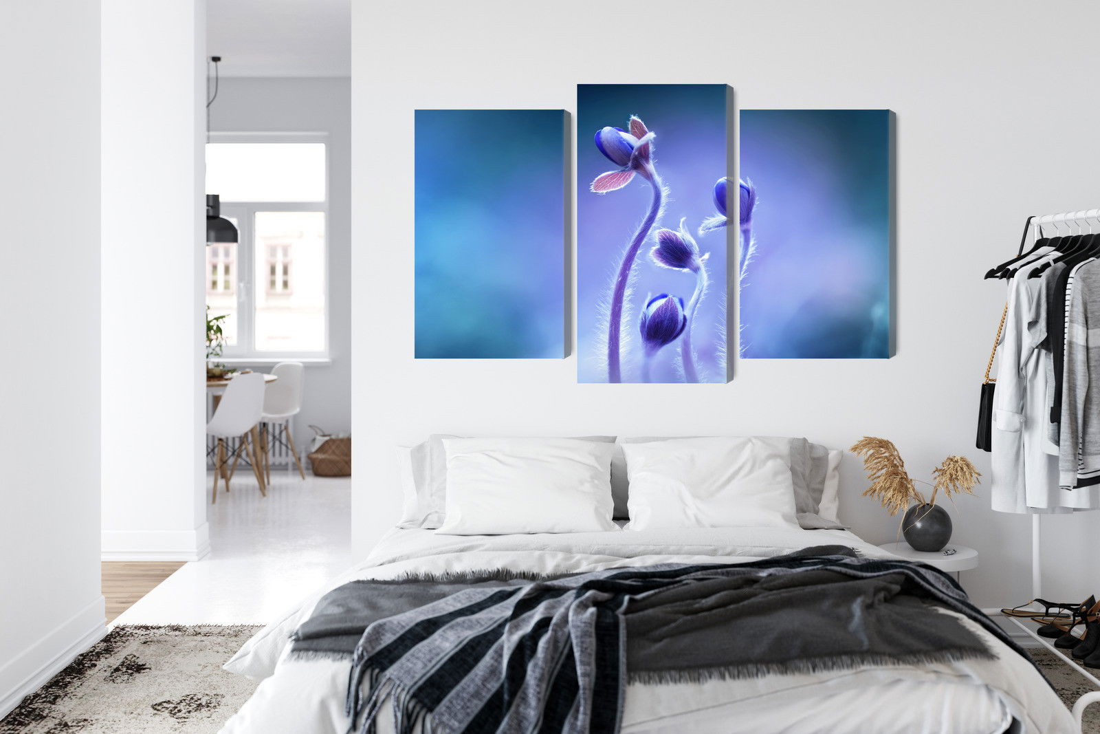 Med SilentDirects ljuddämpande tavla Delicate flowers on a macro får du både ett stilrent motiv och en akustisk lösning i samma produkt. Tavlan byggs i Sverige och utgår från en canvastavla med fururam som fylls med en återvunnen polyestercell för effektiv ljudabsorption.
