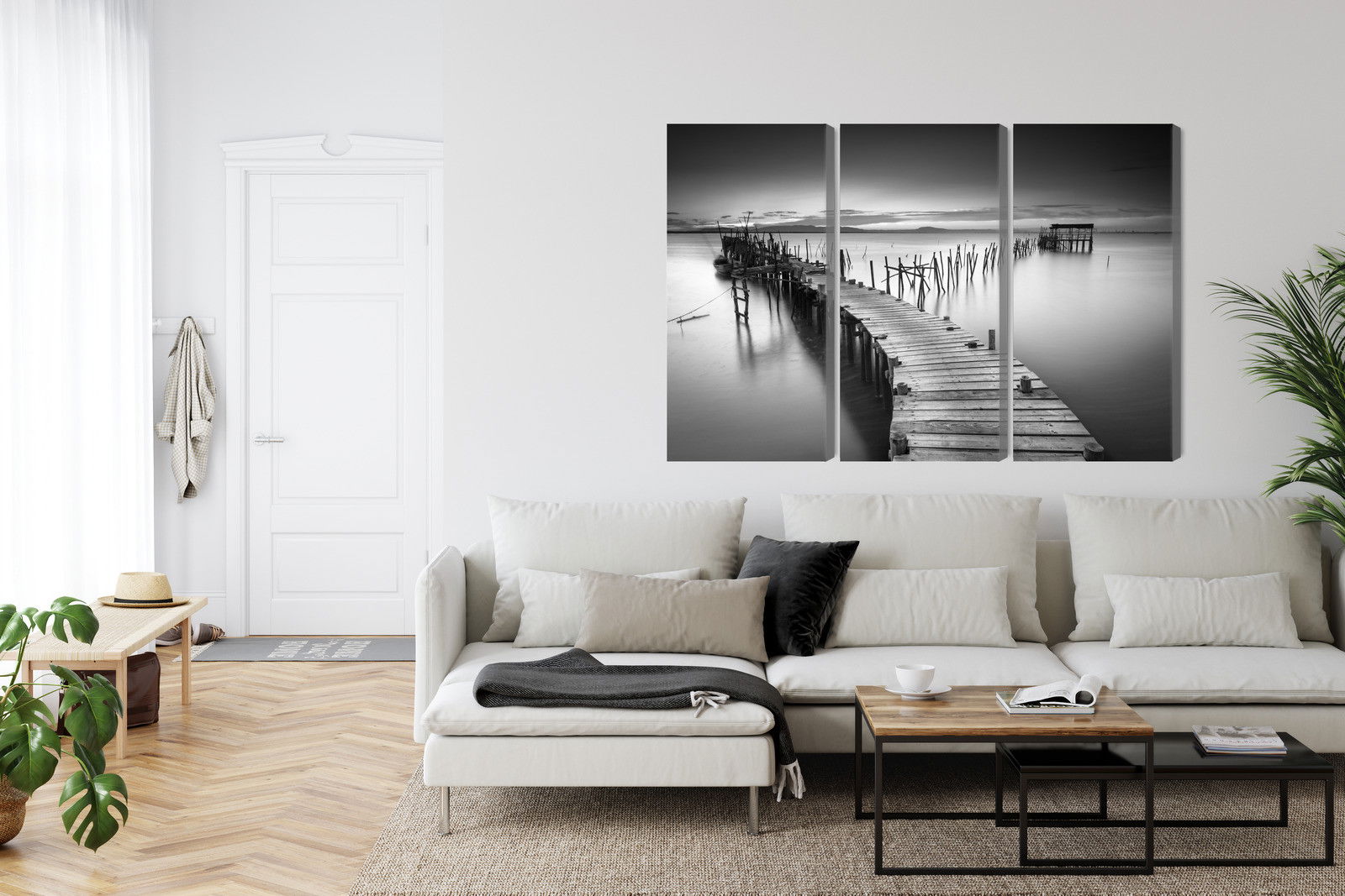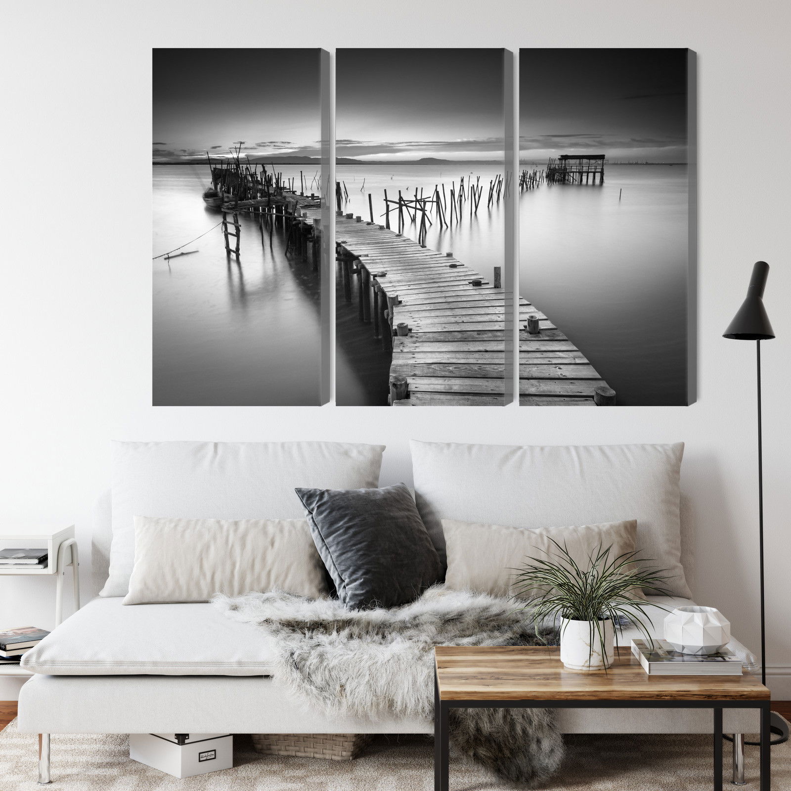 Varje tavla monteras på en massiv fururam. Format upp till 70×50 cm har en ram på 15 mm, medan format från 90×60 cm och uppåt har en ram på 20 mm. Den exakta dukspänningen gör att tavlan håller sin form över tid. Motivet Dilapidated pier trycks runt hela ramen vilket ger ett stilrent galleriuttryck där tavlan är lika vacker från sidan som framifrån. Kombinationen av rak dukspänning, rena linjer och korrekt tryck ger en professionell finish.