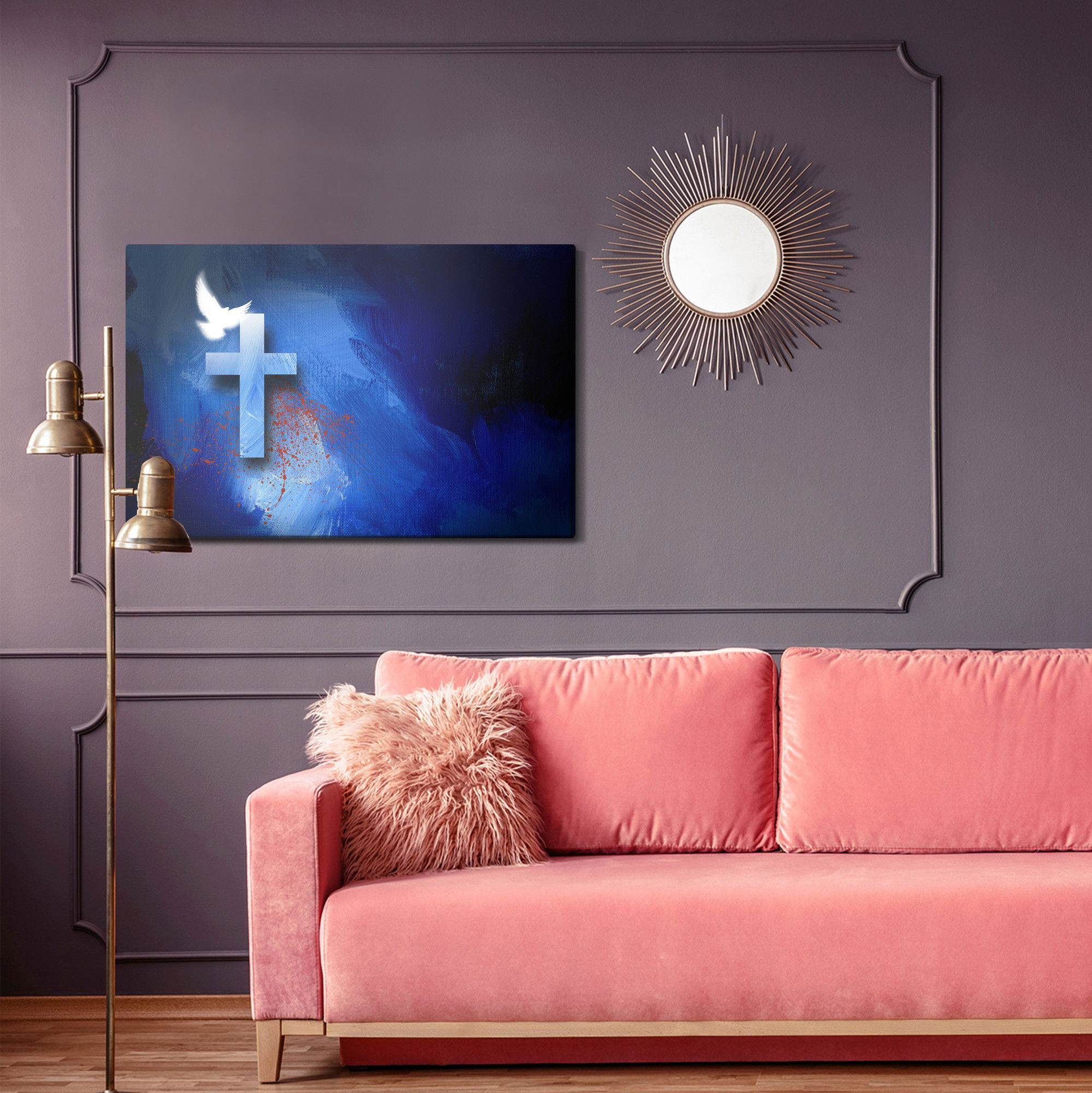Ljuddämpande tavla – Dove above the cross för lugnare rum och mjukare akustik