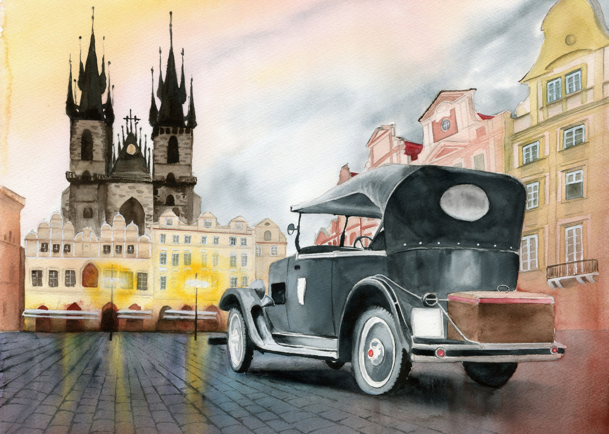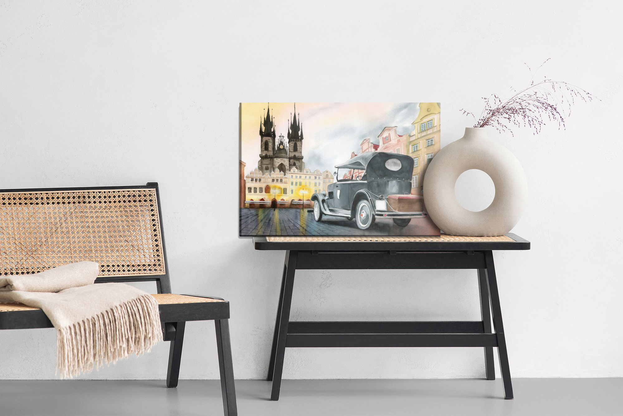 Ljuddämpande tavla – Downtown with old car för lugnare rum och mjukare akustik