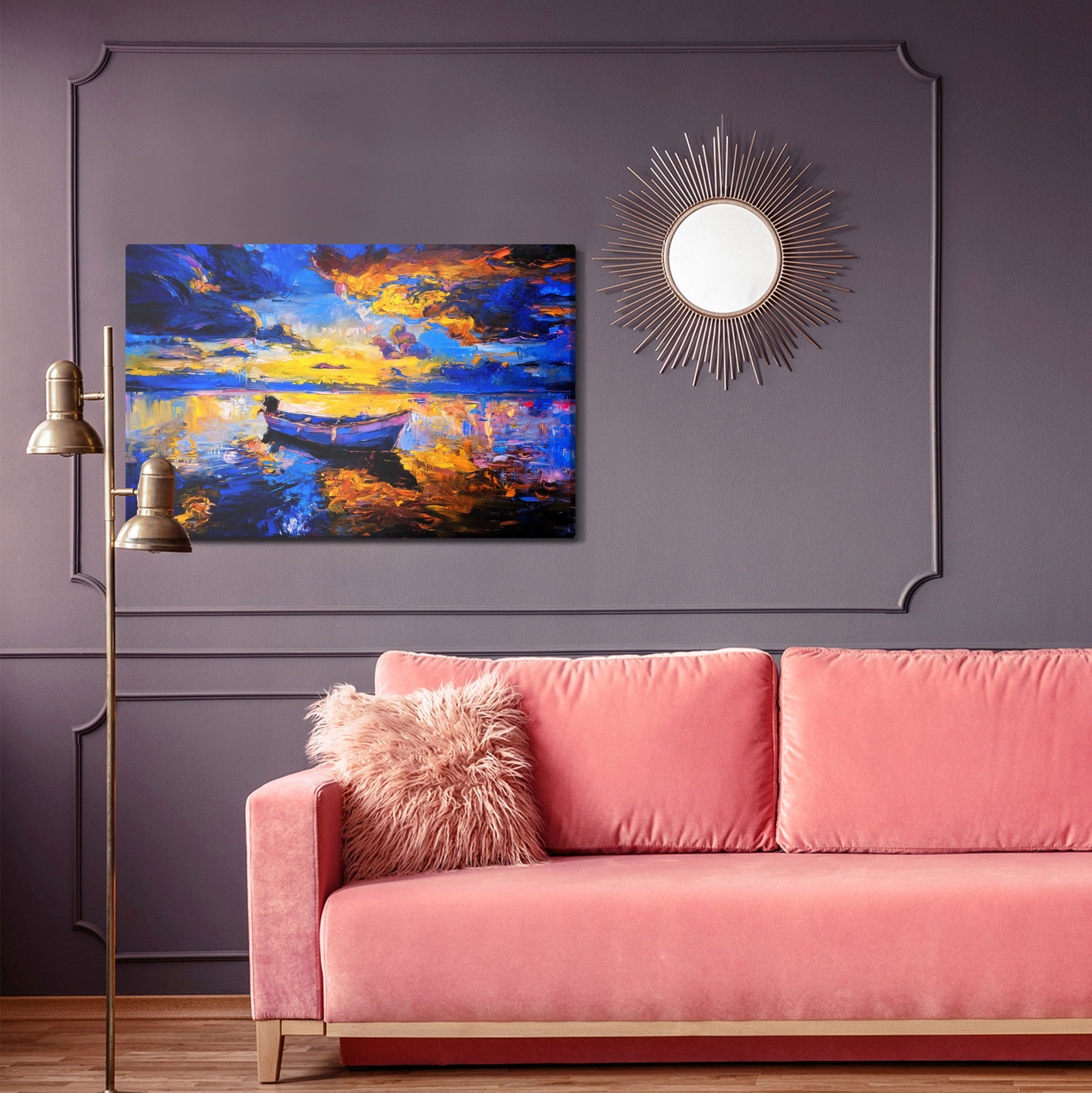 Placera tavlan där du upplever mycket eko eller hög ljudnivå, till exempel i öppna planlösningar, hemmakontor eller sociala ytor. Motiv i denna kategori gör sig särskilt bra i rum där du vill skapa en genomtänkt och sammanhängande känsla. Motiv med hav, vatten och horisonter ger rummet en lugn, djup känsla där mjuka färgskiftningar och ljusreflektioner förstärker atmosfären.