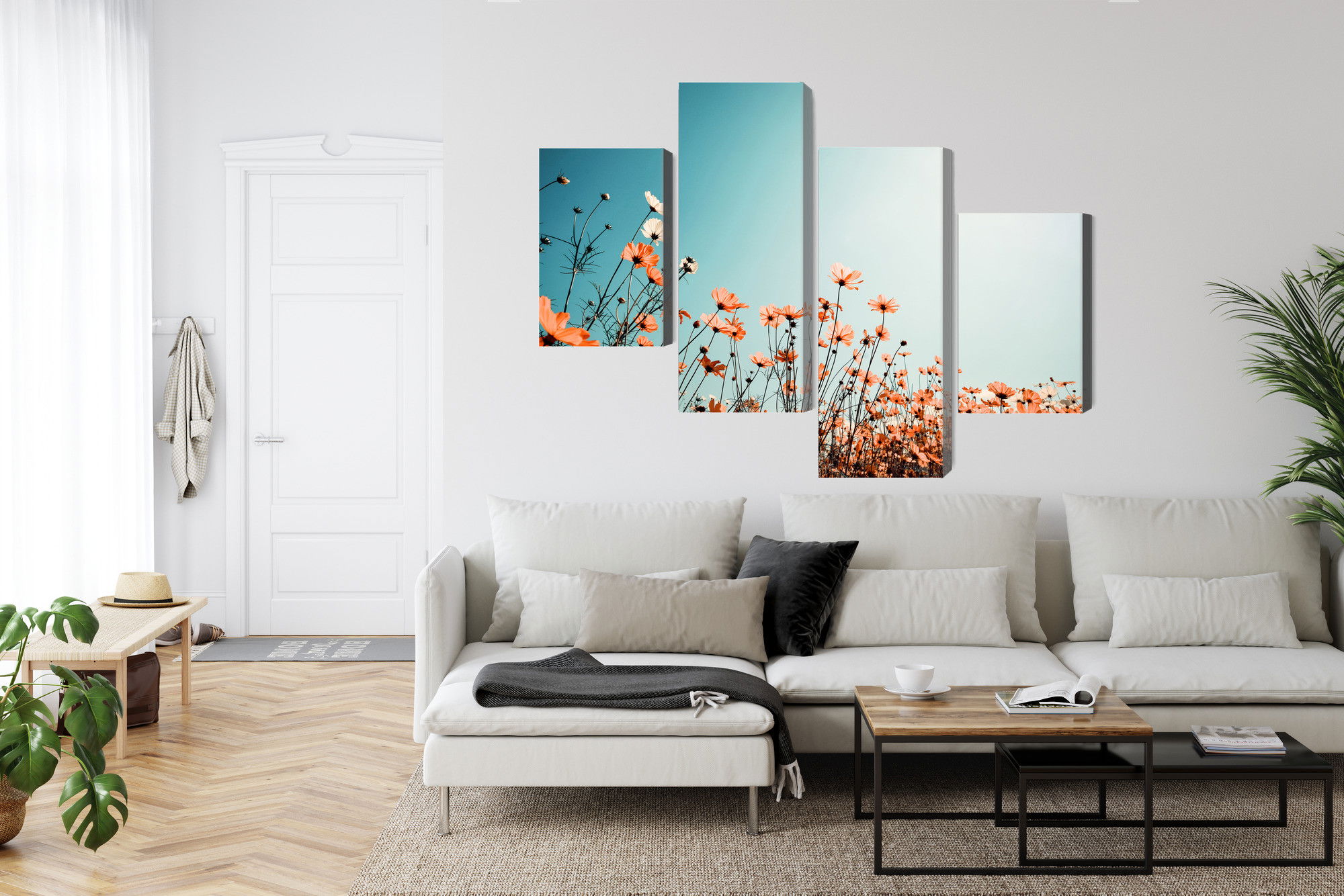 Varje tavla monteras på en massiv fururam. Format upp till 70×50 cm har en ram på 15 mm, medan format från 90×60 cm och uppåt har en ram på 20 mm. Den exakta dukspänningen gör att tavlan håller sin form över tid. Motivet Field flowers in the sun trycks runt hela ramen vilket ger ett stilrent galleriuttryck där tavlan är lika vacker från sidan som framifrån. Kombinationen av rak dukspänning, rena linjer och korrekt tryck ger en professionell finish.