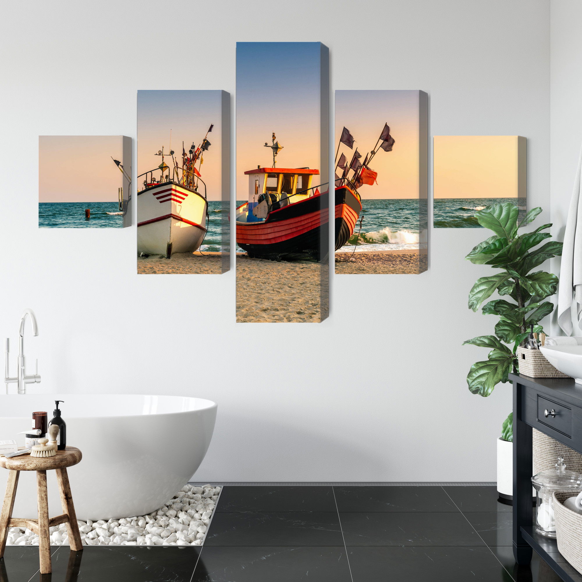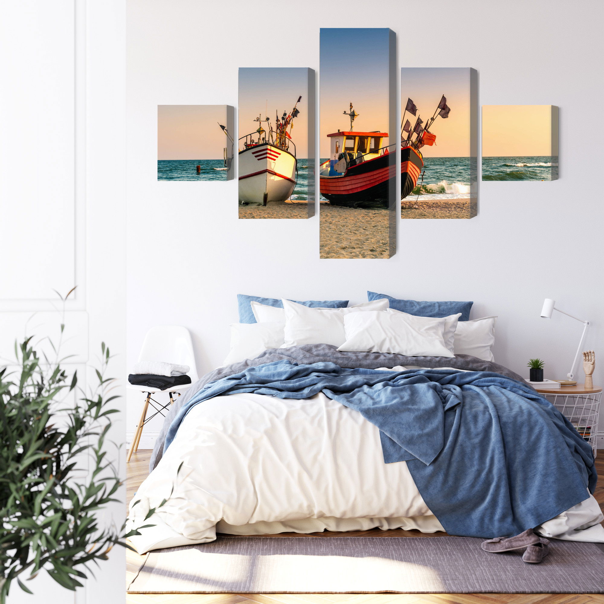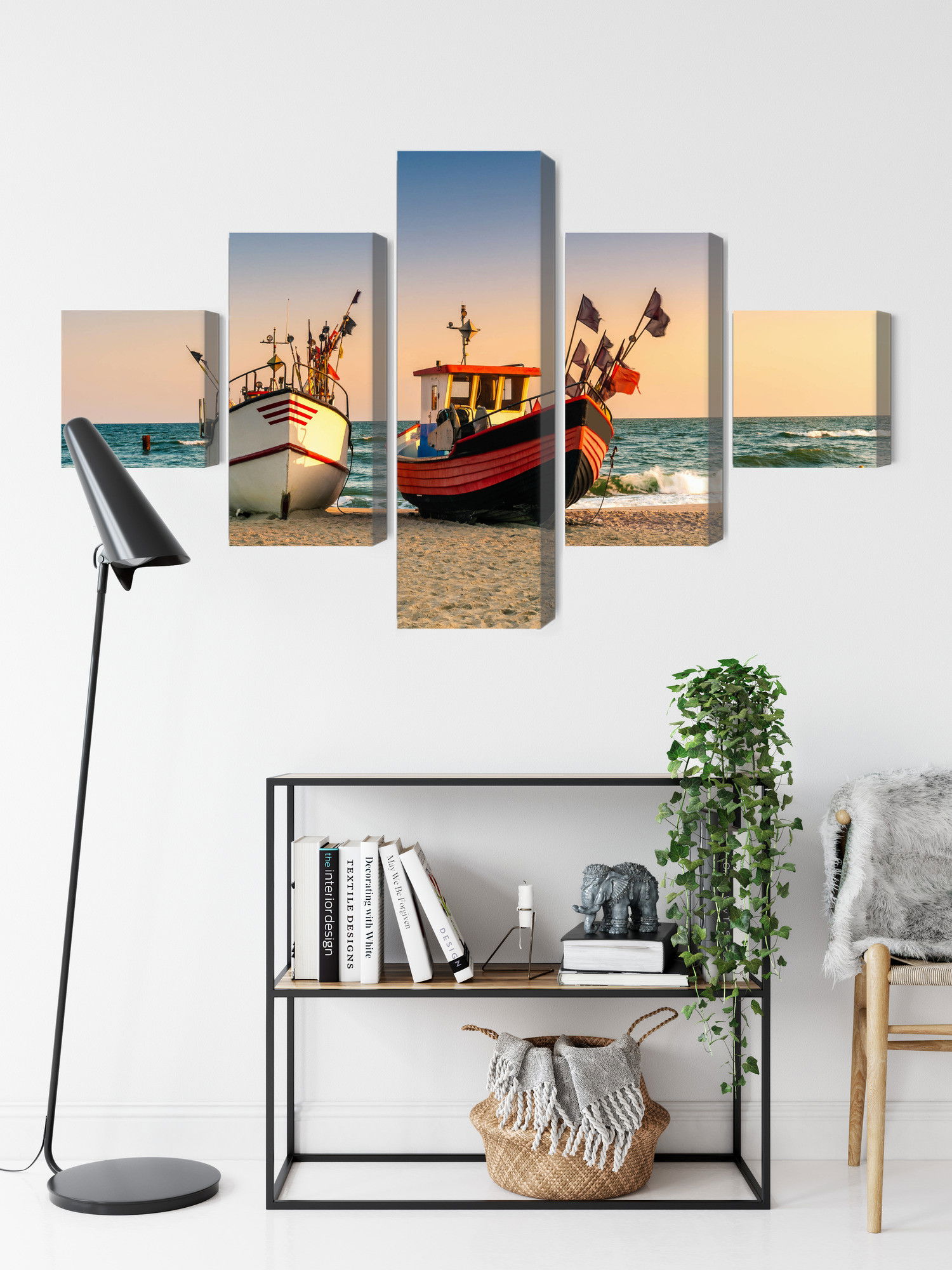 Ljuddämpande tavla – Fishing boats on the beach för lugnare rum och mjukare akustik