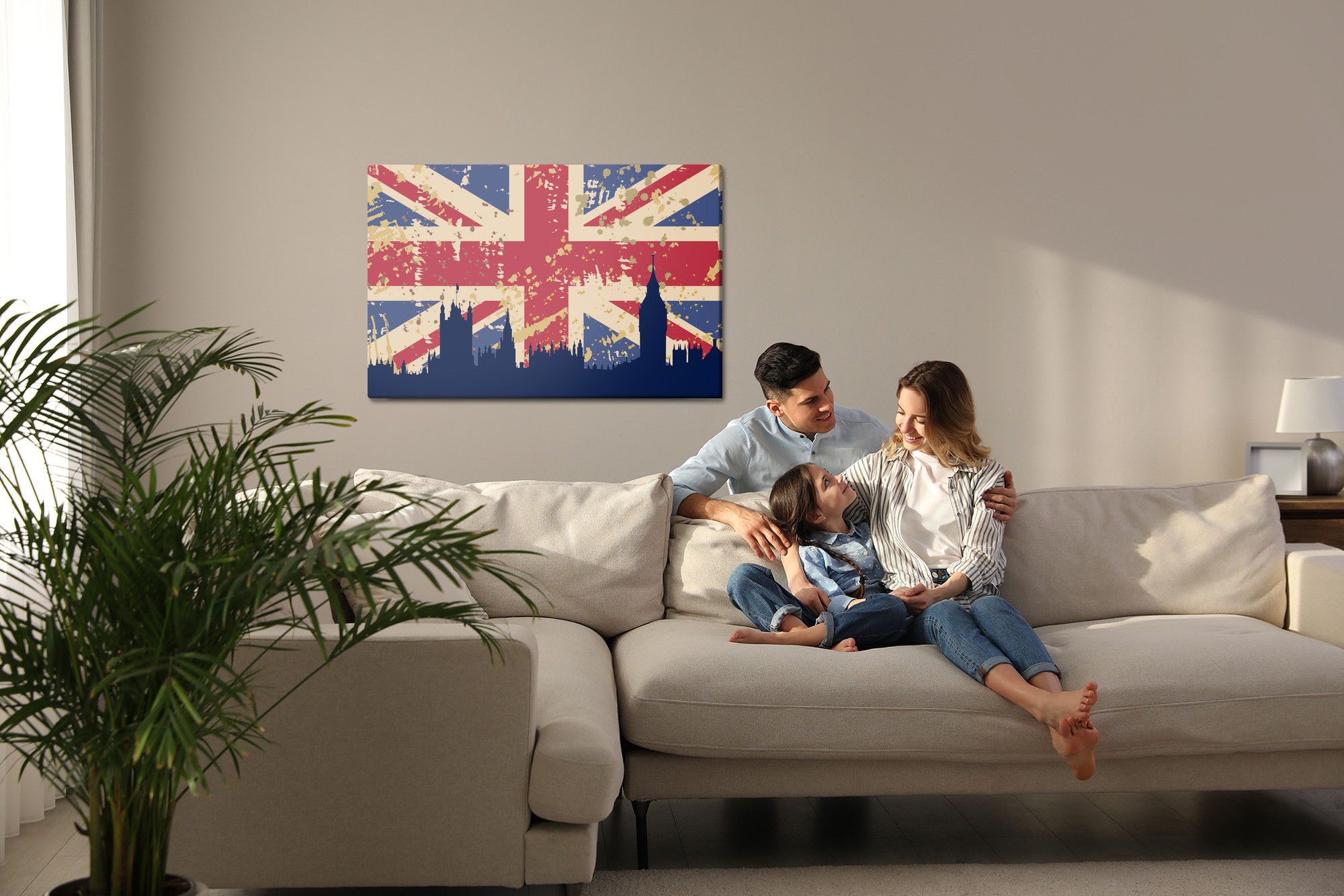 Varje tavla monteras på en massiv fururam. Format upp till 70×50 cm har en ram på 15 mm, medan format från 90×60 cm och uppåt har en ram på 20 mm. Den exakta dukspänningen gör att tavlan håller sin form över tid. Motivet Flag of the united kingdom trycks runt hela ramen vilket ger ett stilrent galleriuttryck där tavlan är lika vacker från sidan som framifrån. Kombinationen av rak dukspänning, rena linjer och korrekt tryck ger en professionell finish.