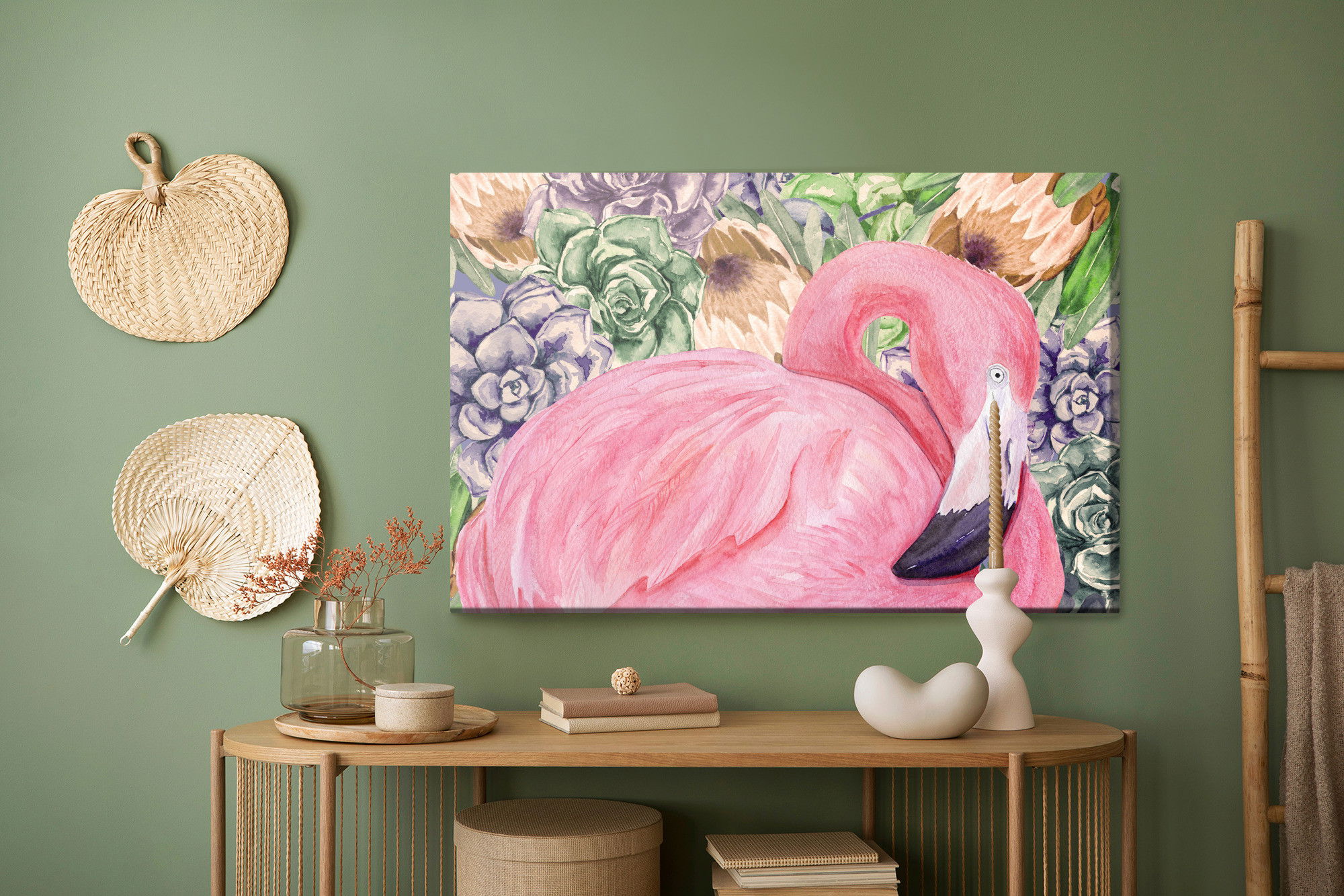 Ljuddämpande tavla – Flamingo and flowers för lugnare rum och mjukare akustik