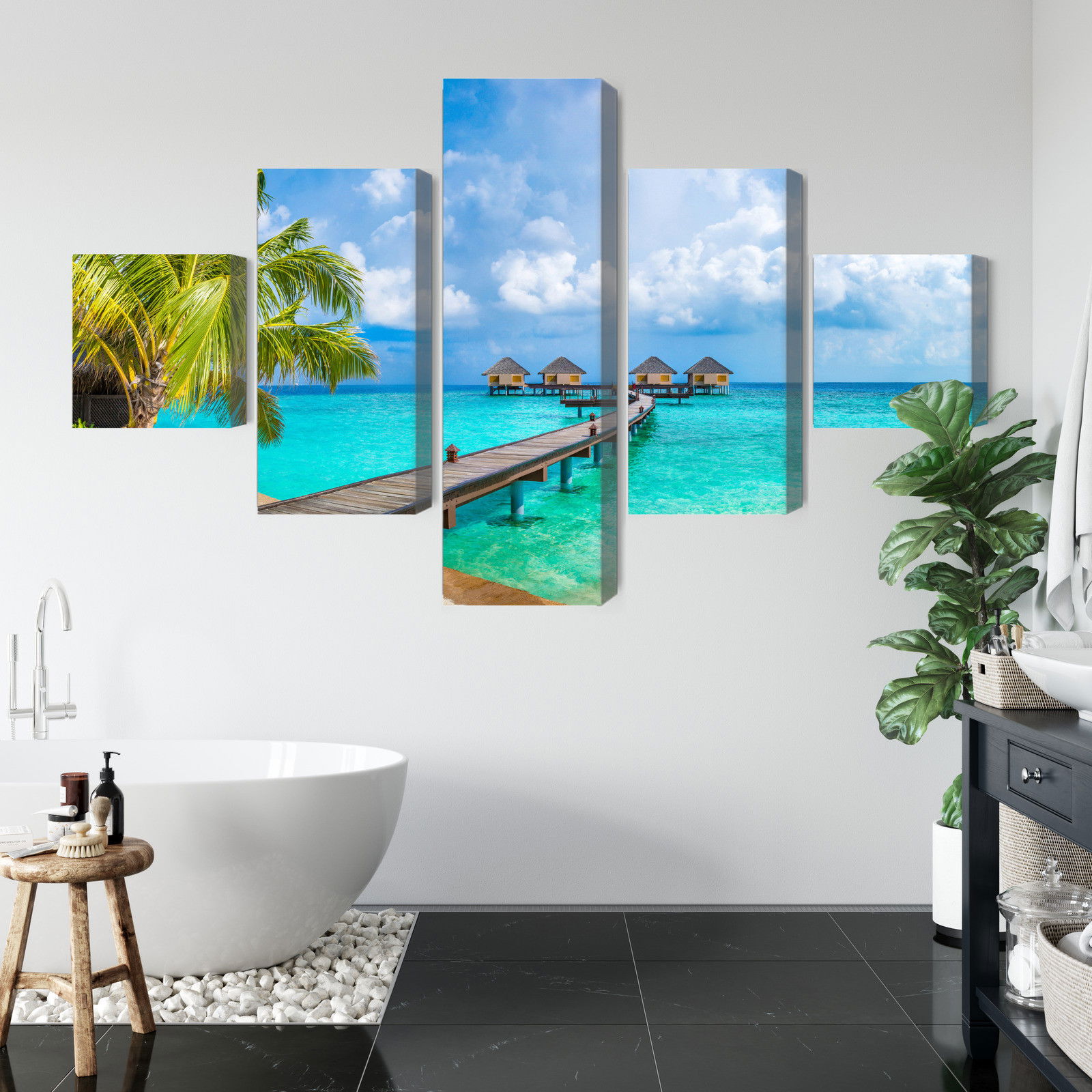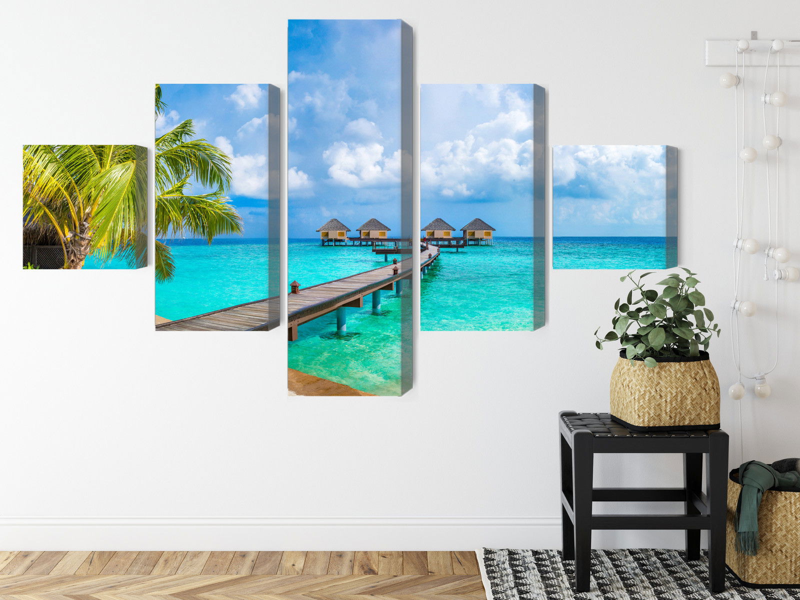 Varje tavla monteras på en massiv fururam. Format upp till 70×50 cm har en ram på 15 mm, medan format från 90×60 cm och uppåt har en ram på 20 mm. Den exakta dukspänningen gör att tavlan håller sin form över tid. Motivet Floating houses trycks runt hela ramen vilket ger ett stilrent galleriuttryck där tavlan är lika vacker från sidan som framifrån. Kombinationen av rak dukspänning, rena linjer och korrekt tryck ger en professionell finish.