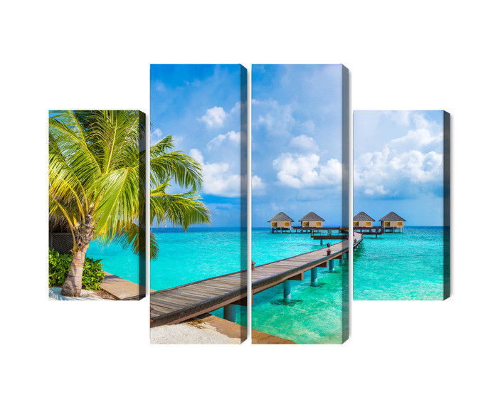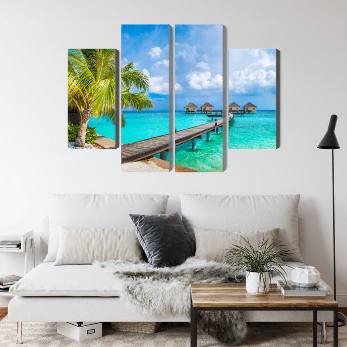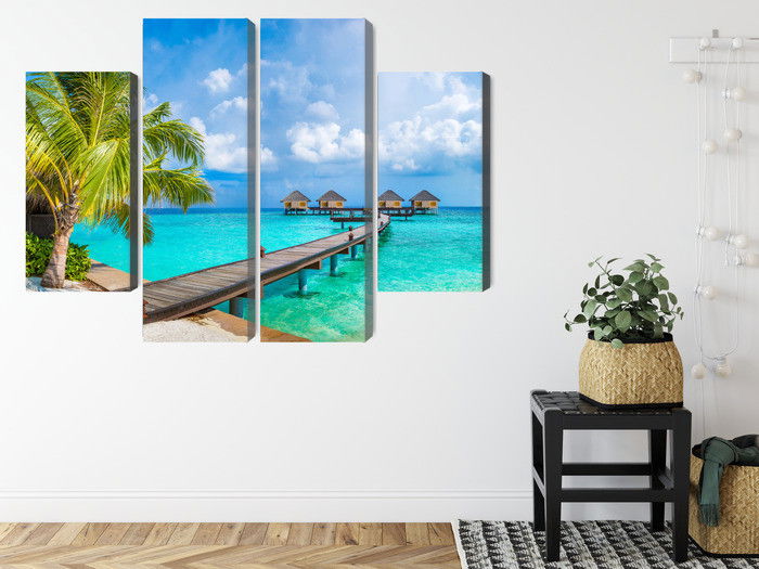 Motivet Floating houses återges med hög färgprecision och detaljrikedom tack vare HP Latex-teknologi. Trycket sker med vattenbaserade, luktfria och GREENGUARD Gold-certifierade bläck som ger en upplösning på upp till 300 DPI. Färgerna är UV-beständiga och behåller sin styrka även i ljusa rum, vilket gör tavlan lämplig för både hem- och offentliga miljöer.