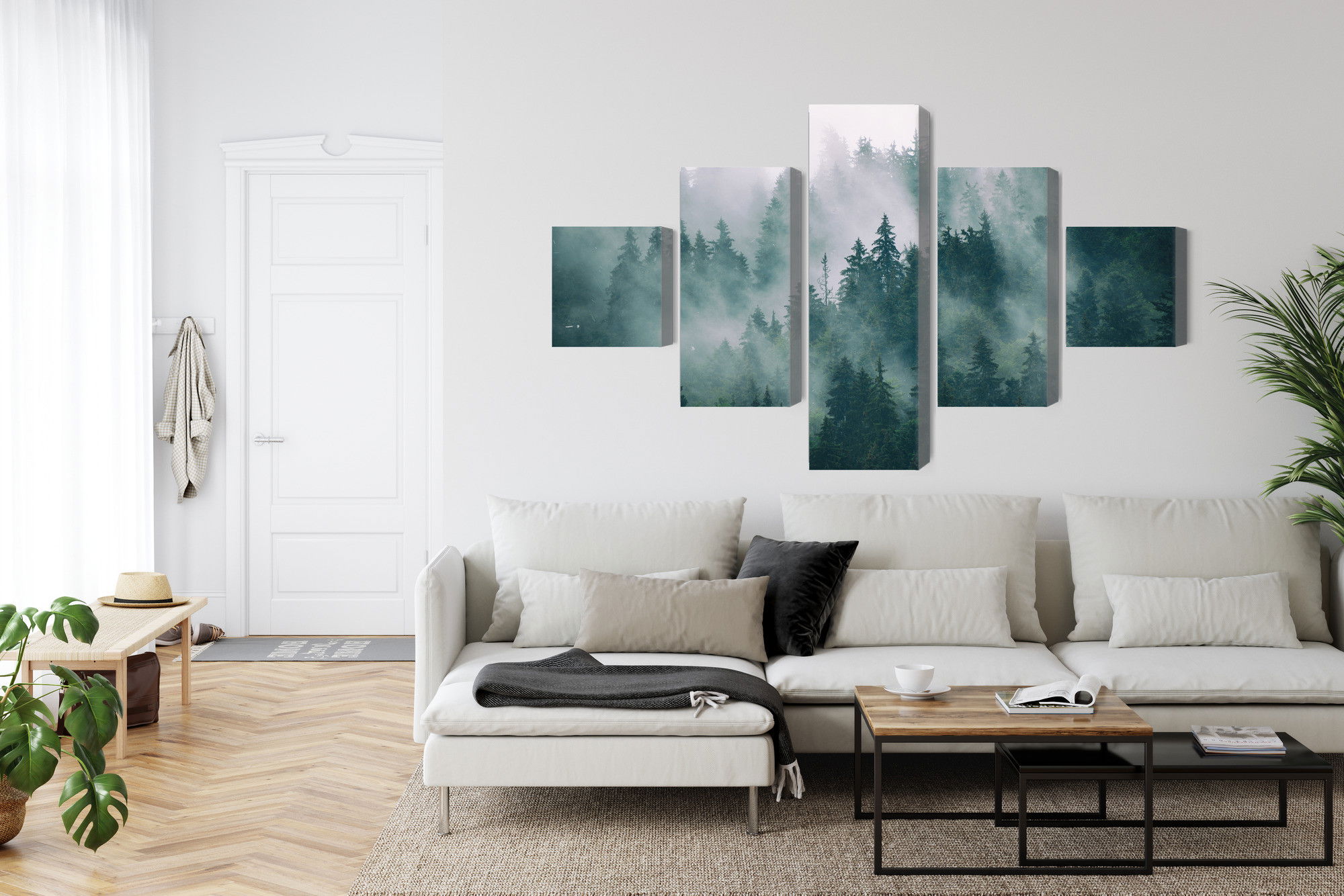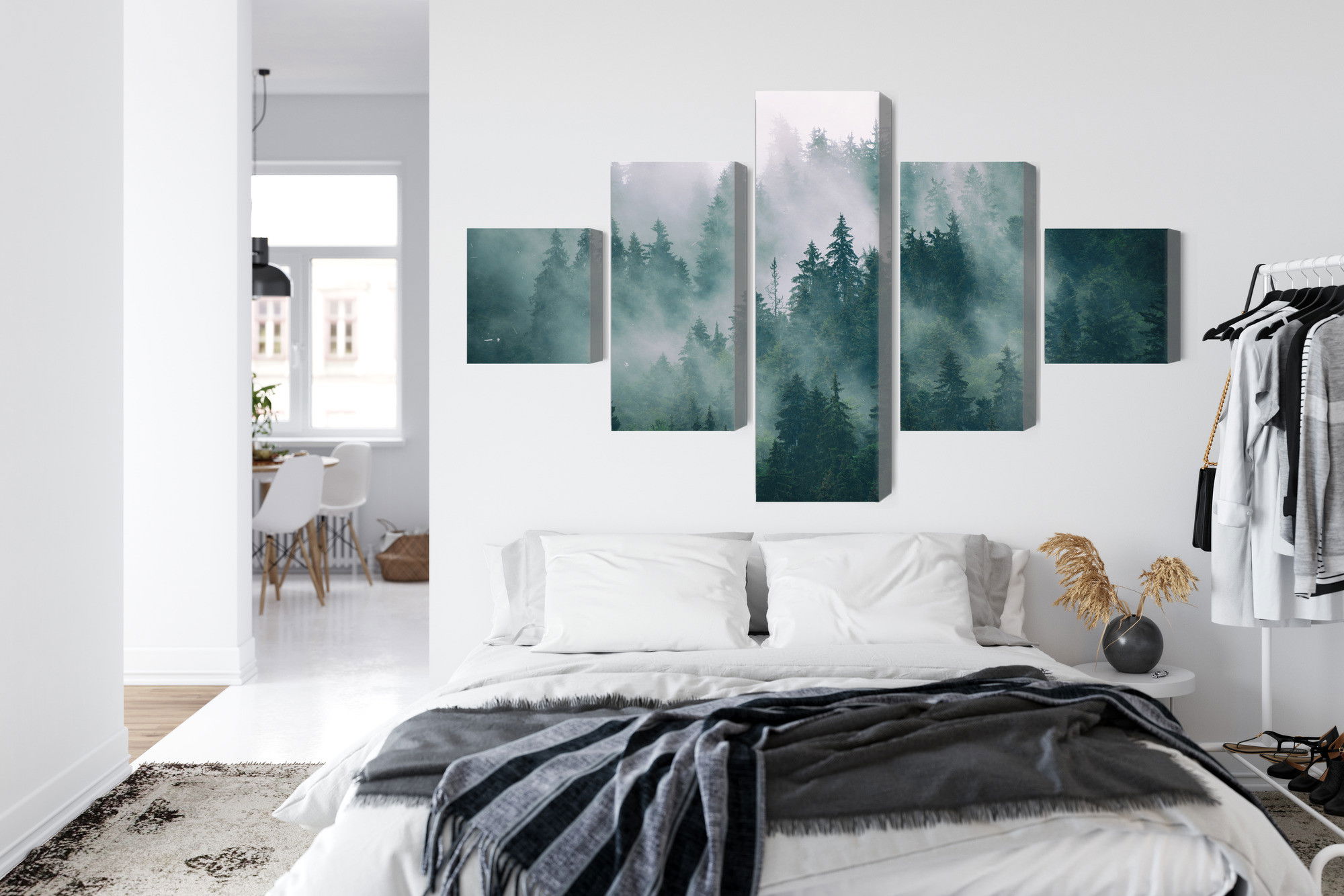 Ljuddämpande tavla – Fog in the green forest för lugnare rum och mjukare akustik