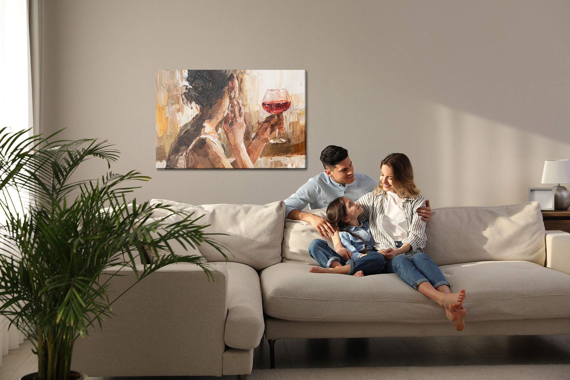 Varje tavla monteras på en massiv fururam. Format upp till 70×50 cm har en ram på 15 mm, medan format från 90×60 cm och uppåt har en ram på 20 mm. Den exakta dukspänningen gör att tavlan håller sin form över tid. Motivet trycks runt hela ramen vilket ger ett stilrent galleriuttryck där tavlan är lika vacker från sidan som framifrån. Kombinationen av rak dukspänning, rena linjer och korrekt tryck ger en professionell finish.