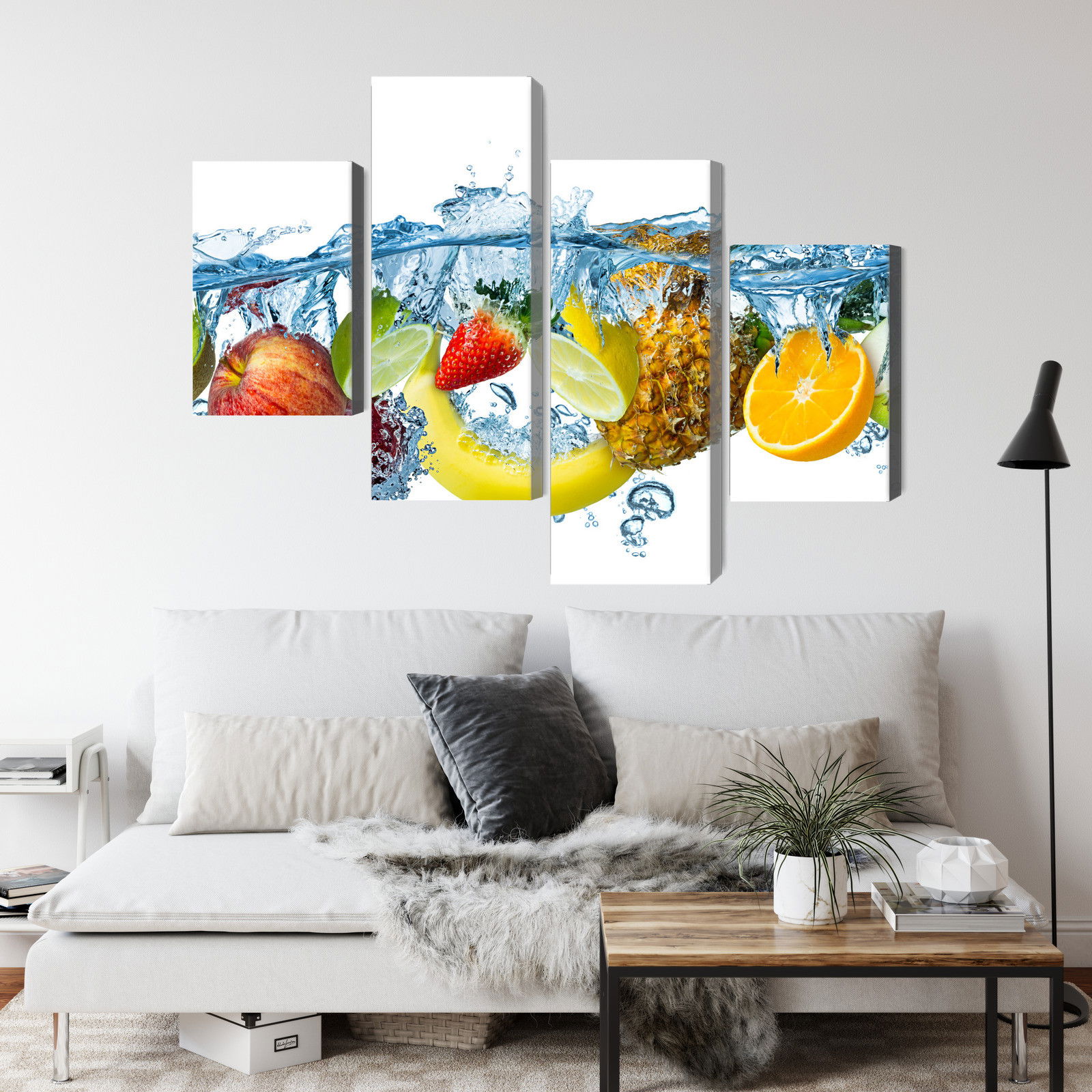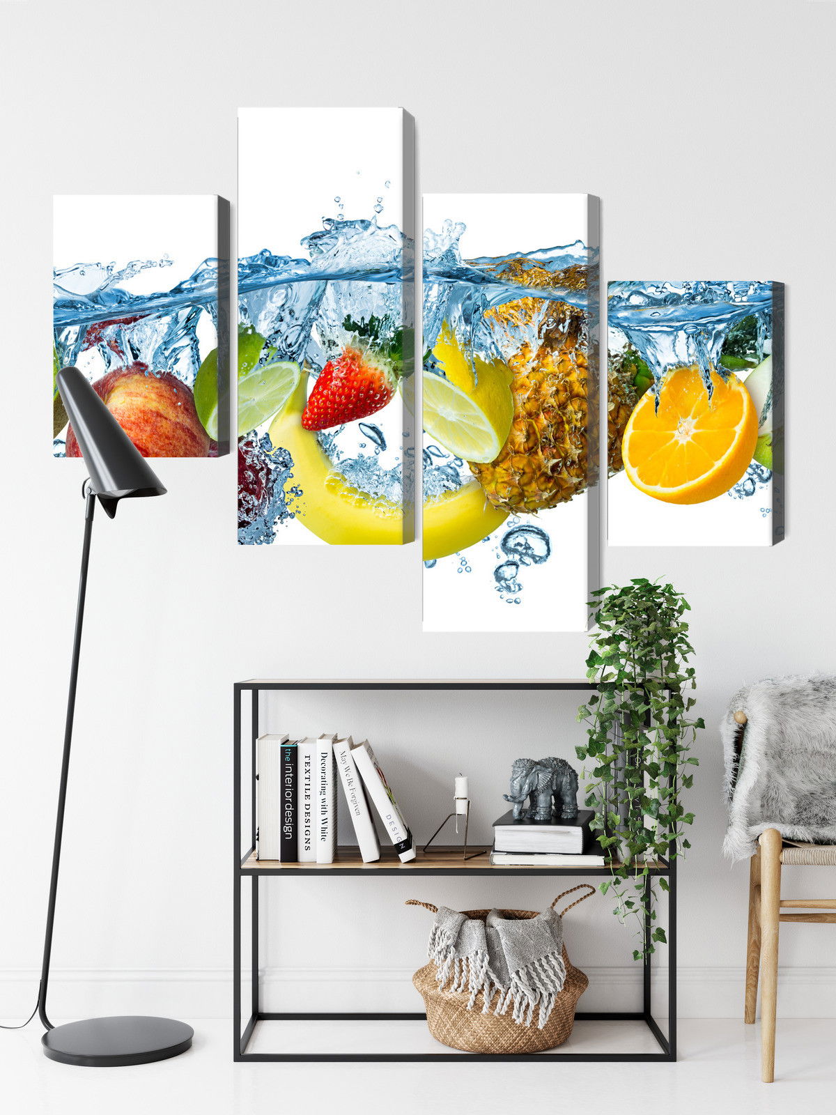 Motivet Fresh fruit in the water återges med hög färgprecision och detaljrikedom tack vare HP Latex-teknologi. Trycket sker med vattenbaserade, luktfria och GREENGUARD Gold-certifierade bläck som ger en upplösning på upp till 300 DPI. Färgerna är UV-beständiga och behåller sin styrka även i ljusa rum, vilket gör tavlan lämplig för både hem- och offentliga miljöer.