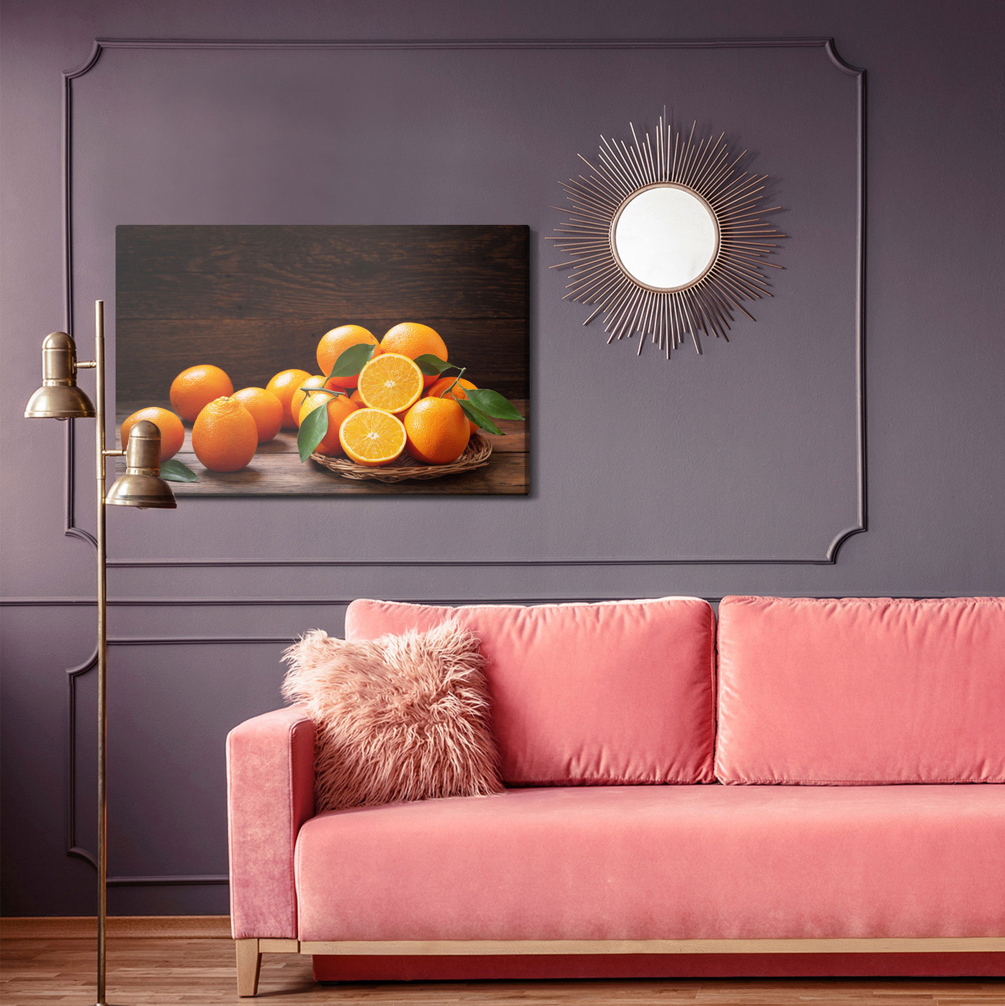 Motivet Fresh oranges on boards återges med hög färgprecision och detaljrikedom tack vare HP Latex-teknologi. Trycket sker med vattenbaserade, luktfria och GREENGUARD Gold-certifierade bläck som ger en upplösning på upp till 300 DPI. Färgerna är UV-beständiga och behåller sin styrka även i ljusa rum, vilket gör tavlan lämplig för både hem- och offentliga miljöer.