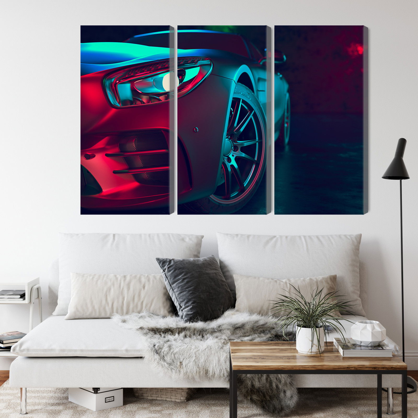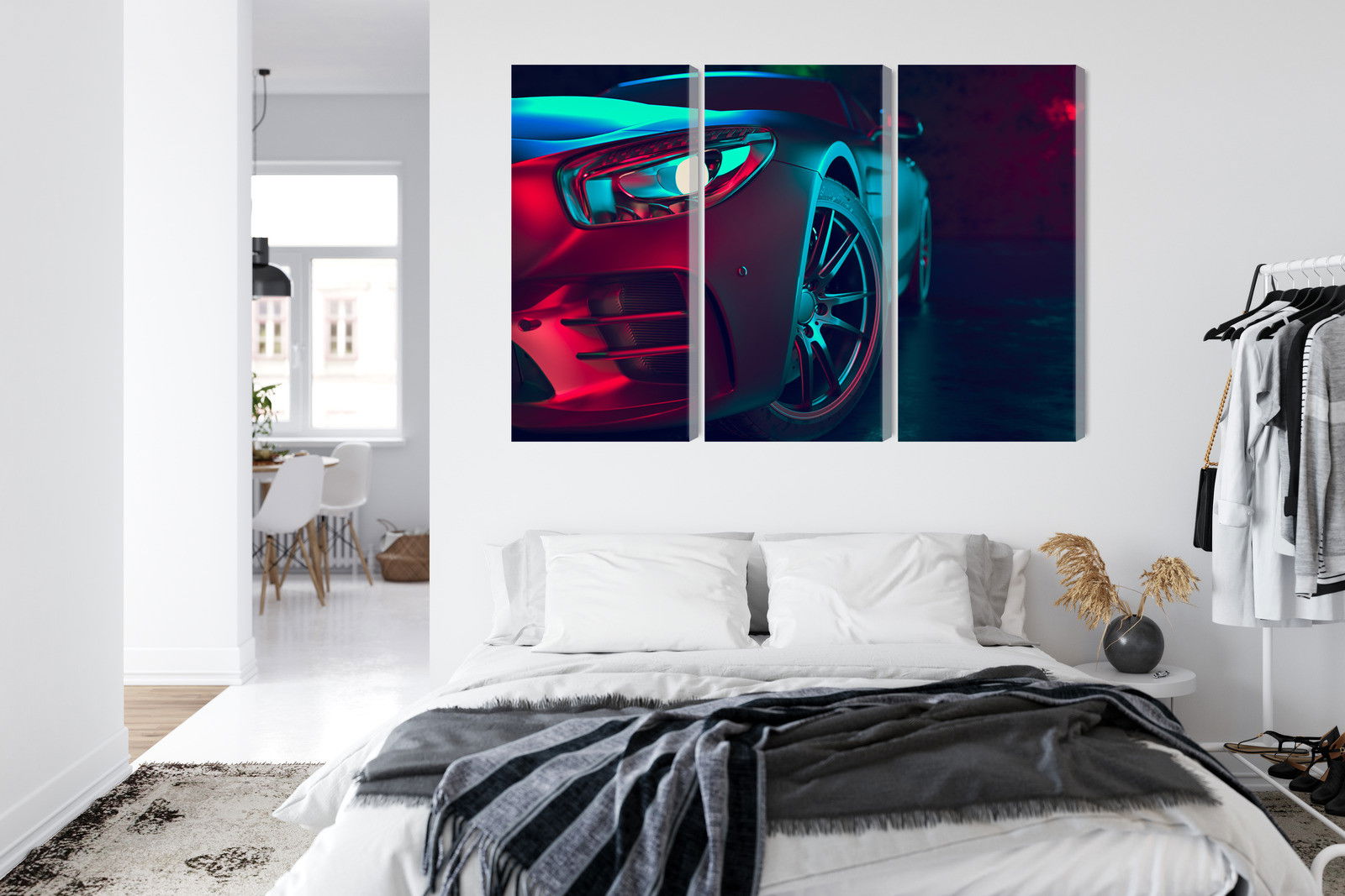 Ljuddämpande tavla – Front of a 3d sports car för lugnare rum och mjukare akustik