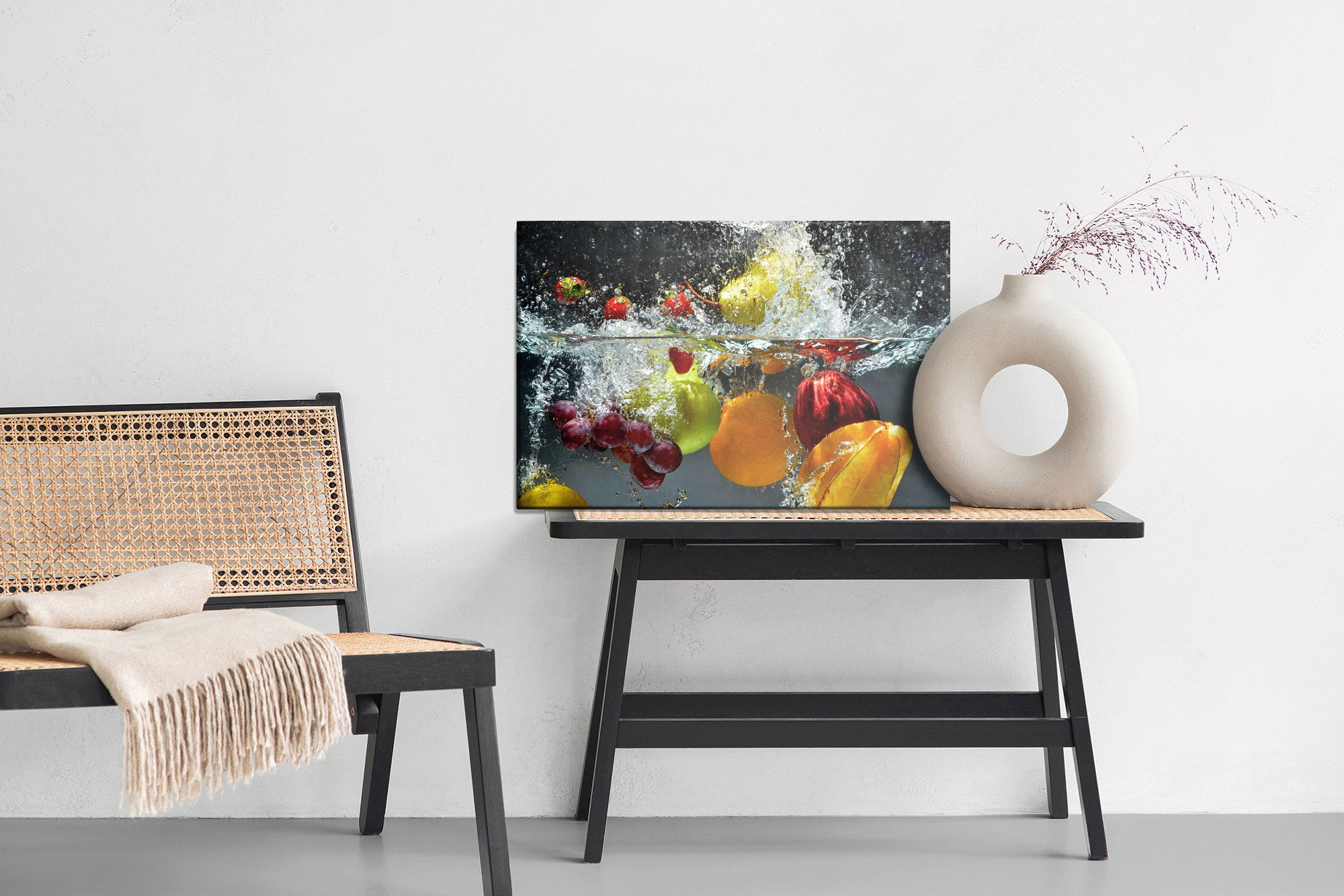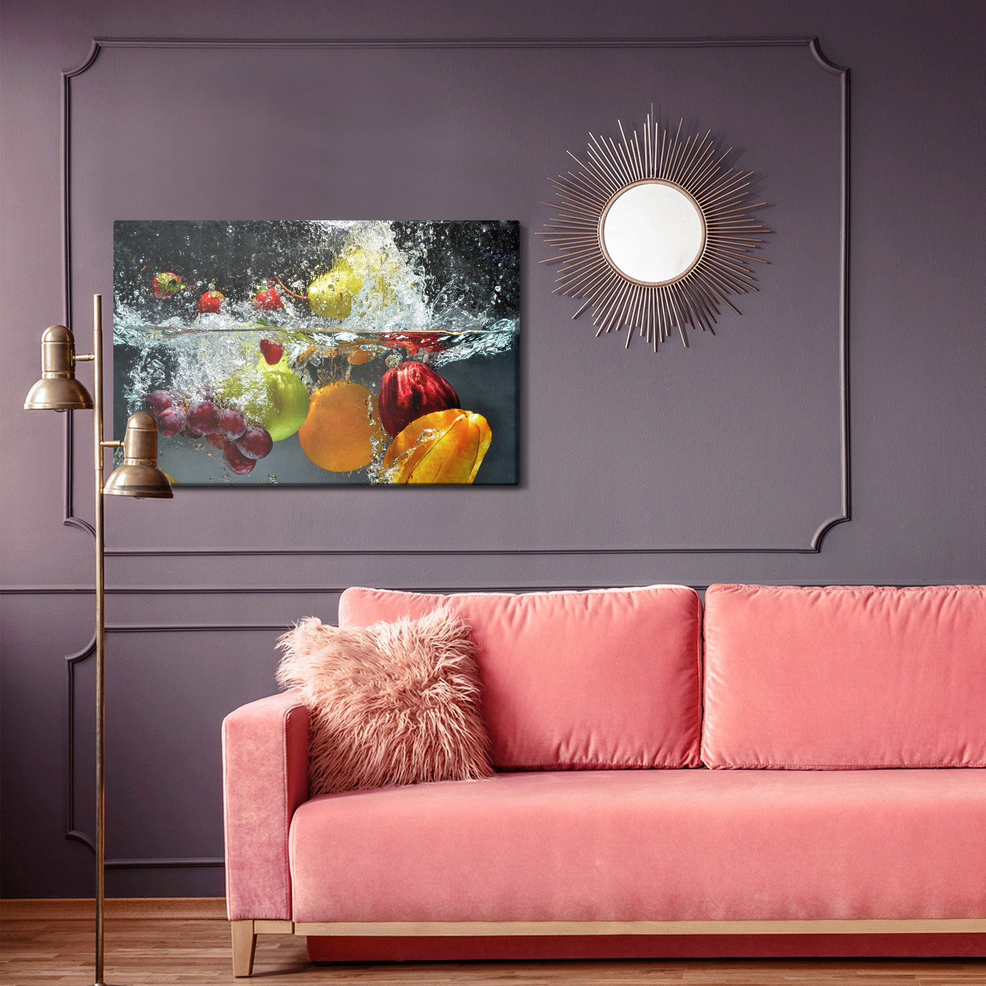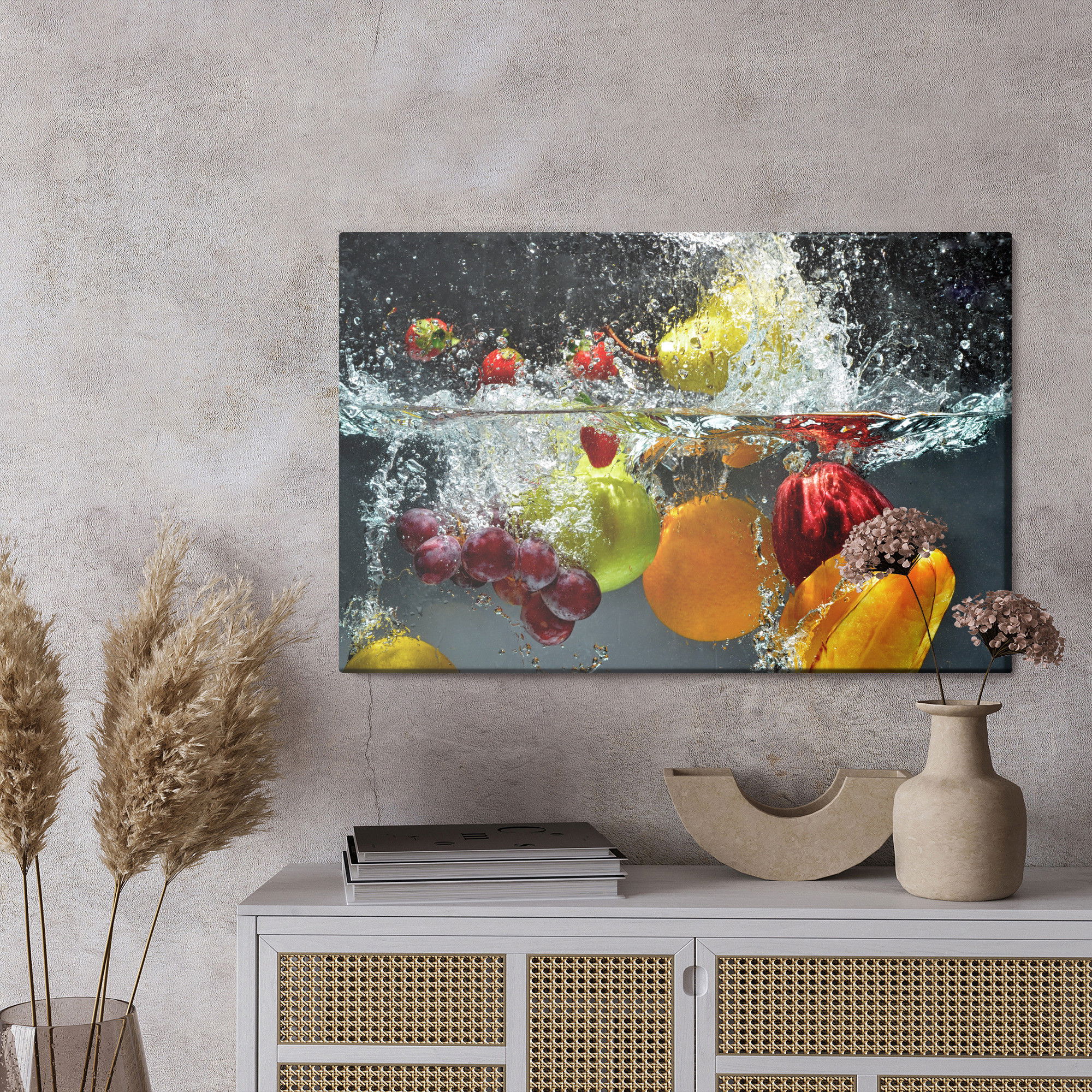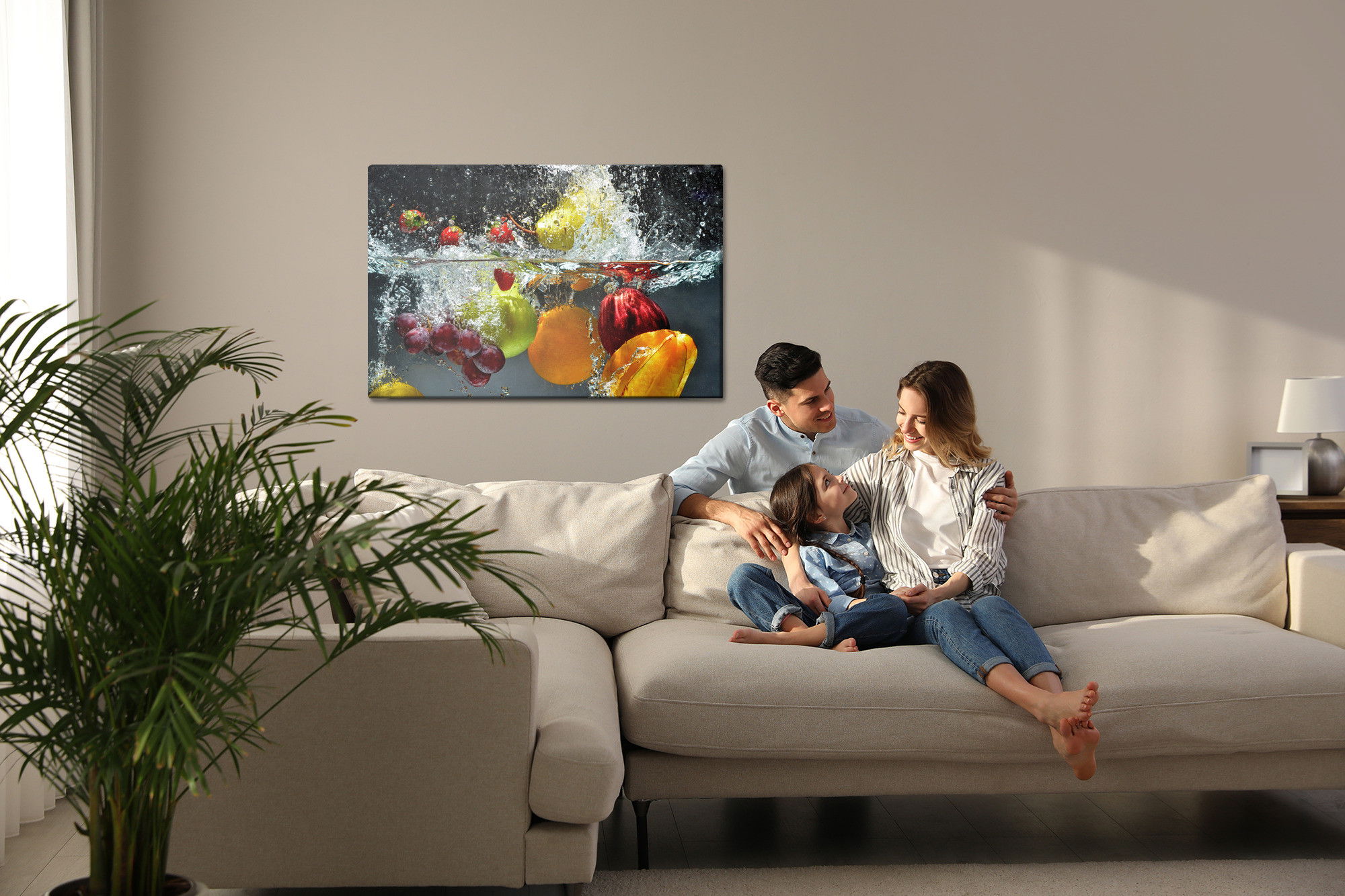 Motivet Fruit in the water återges med hög färgprecision och detaljrikedom tack vare HP Latex-teknologi. Trycket sker med vattenbaserade, luktfria och GREENGUARD Gold-certifierade bläck som ger en upplösning på upp till 300 DPI. Färgerna är UV-beständiga och behåller sin styrka även i ljusa rum, vilket gör tavlan lämplig för både hem- och offentliga miljöer.