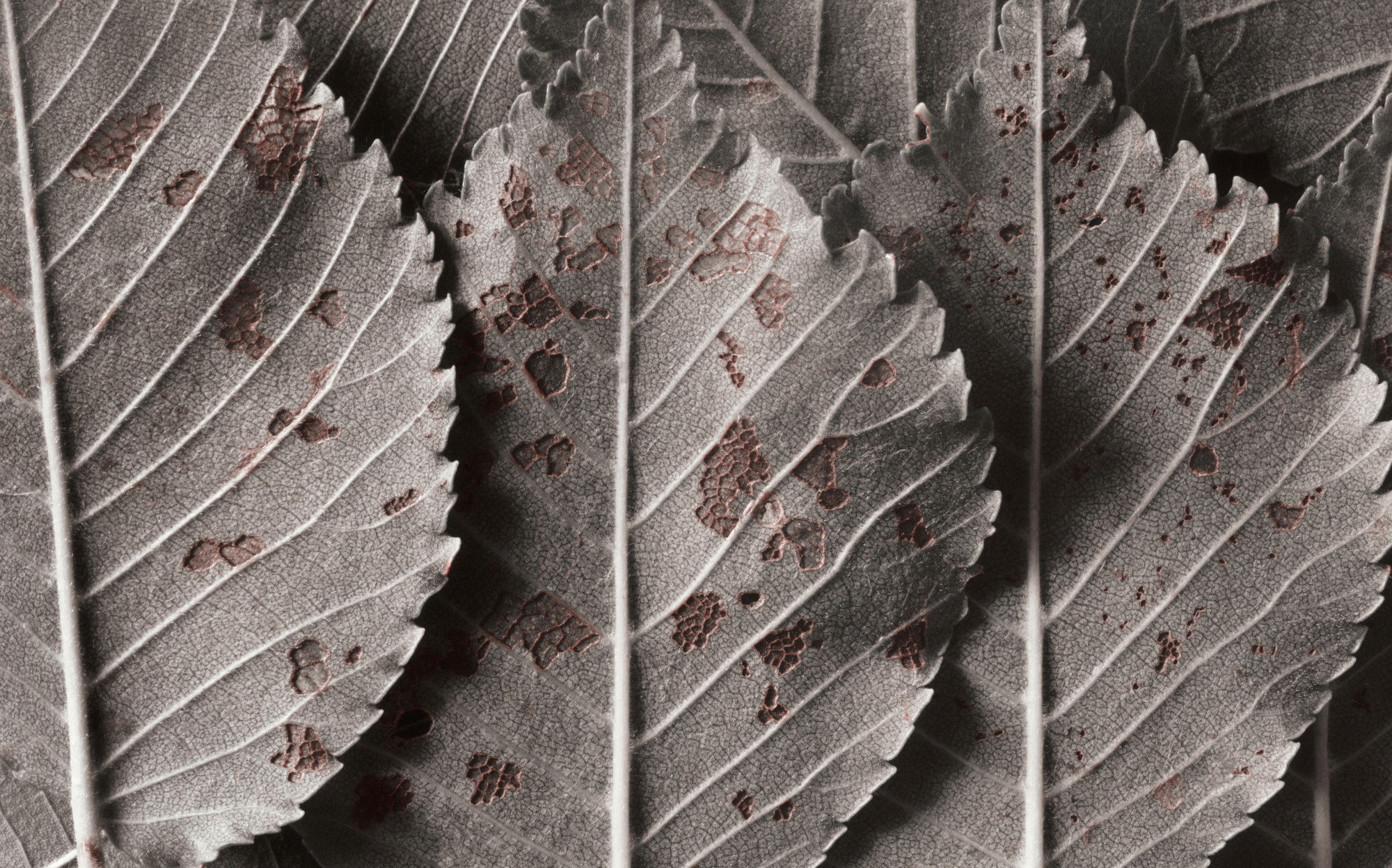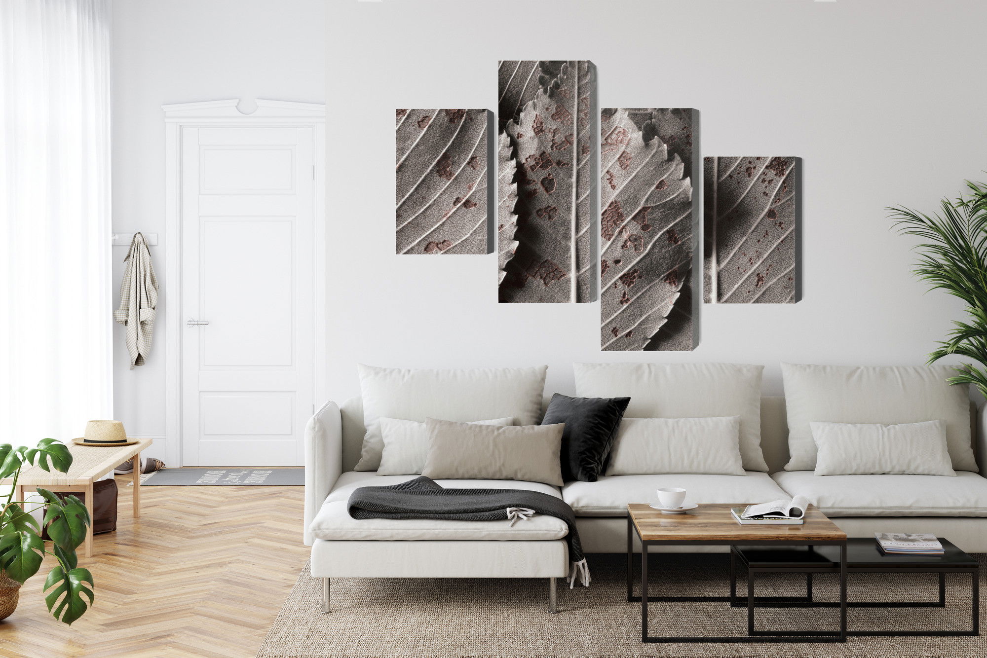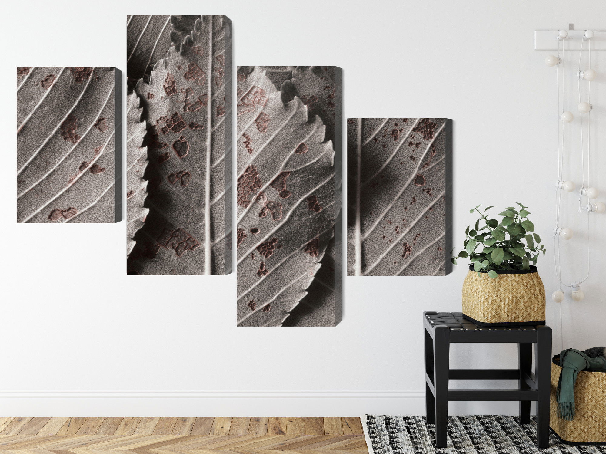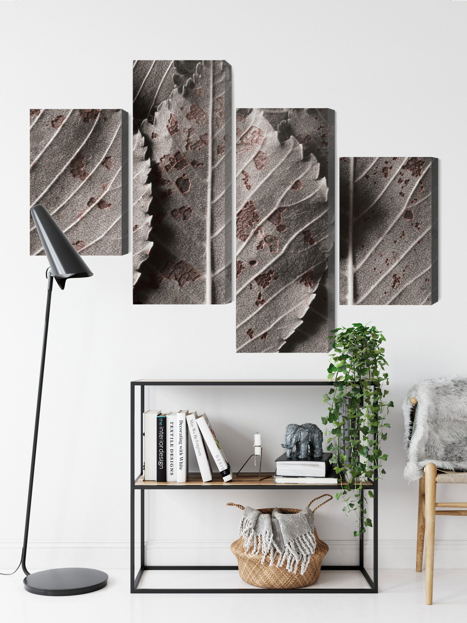 Ljuddämpande tavla – Gray leaves on a macro scale för lugnare rum och mjukare akustik