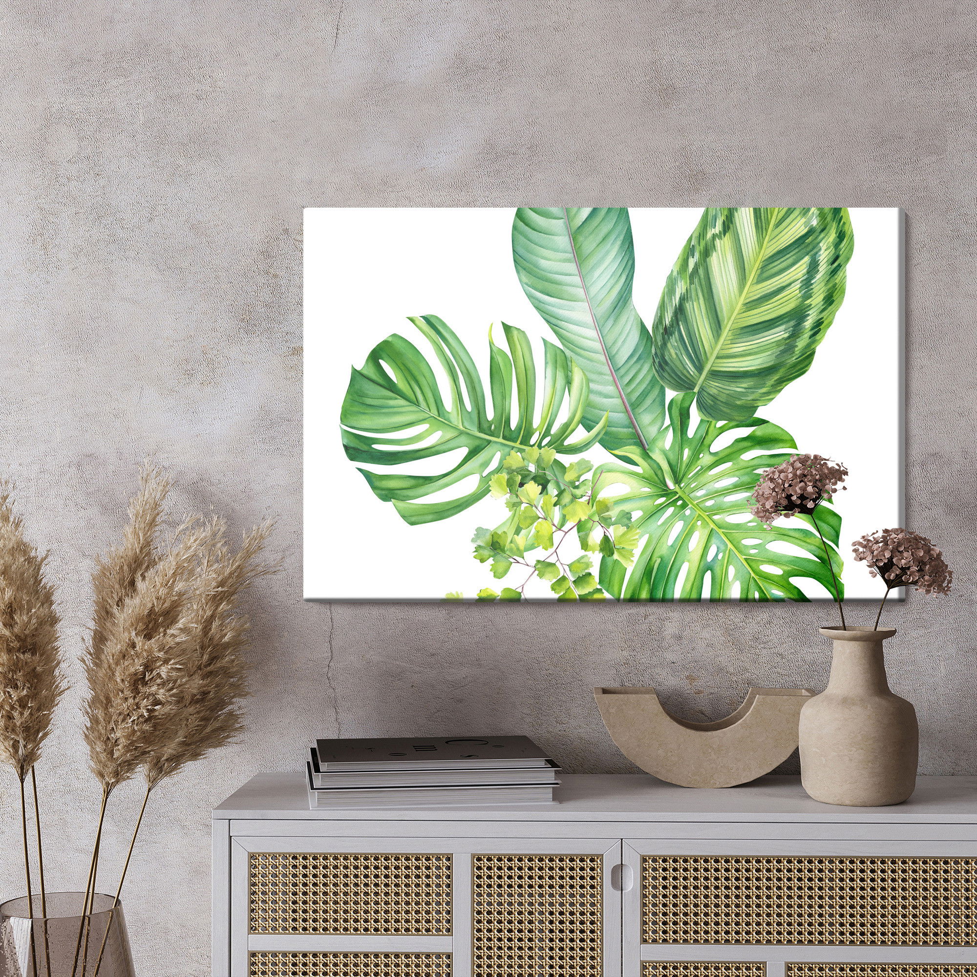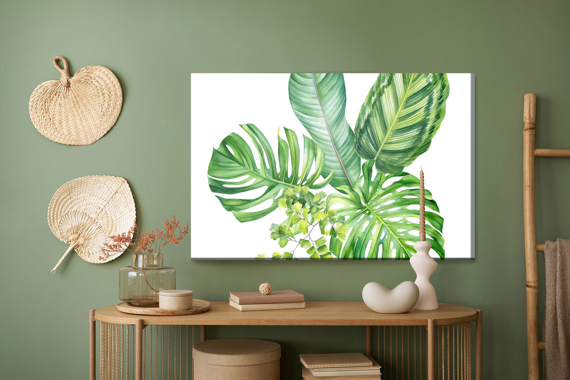 Ljuddämpande tavla – Green exotic leaves painted för lugnare rum och mjukare akustik