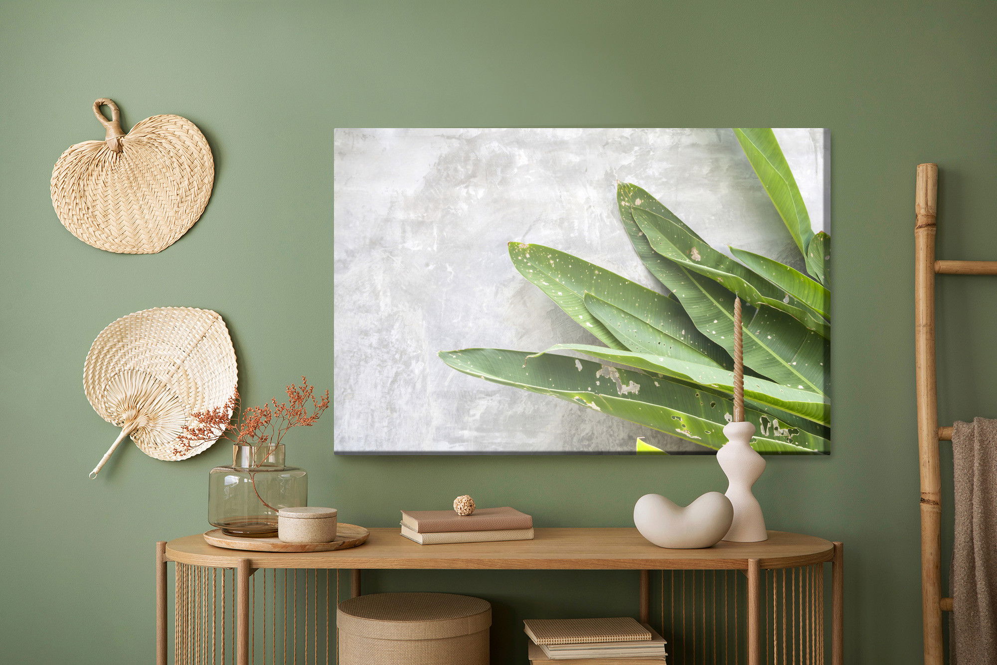 Ljuddämpande tavla – Green leaves on a concrete för lugnare rum och mjukare akustik