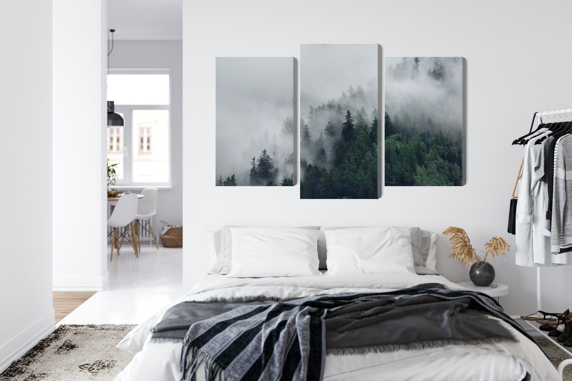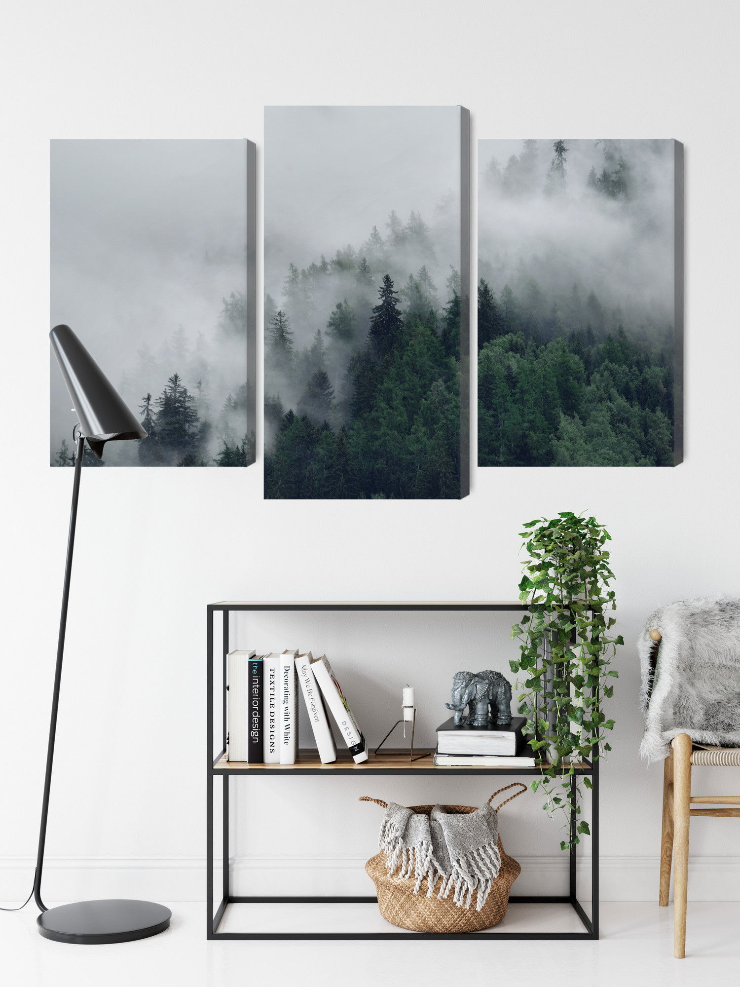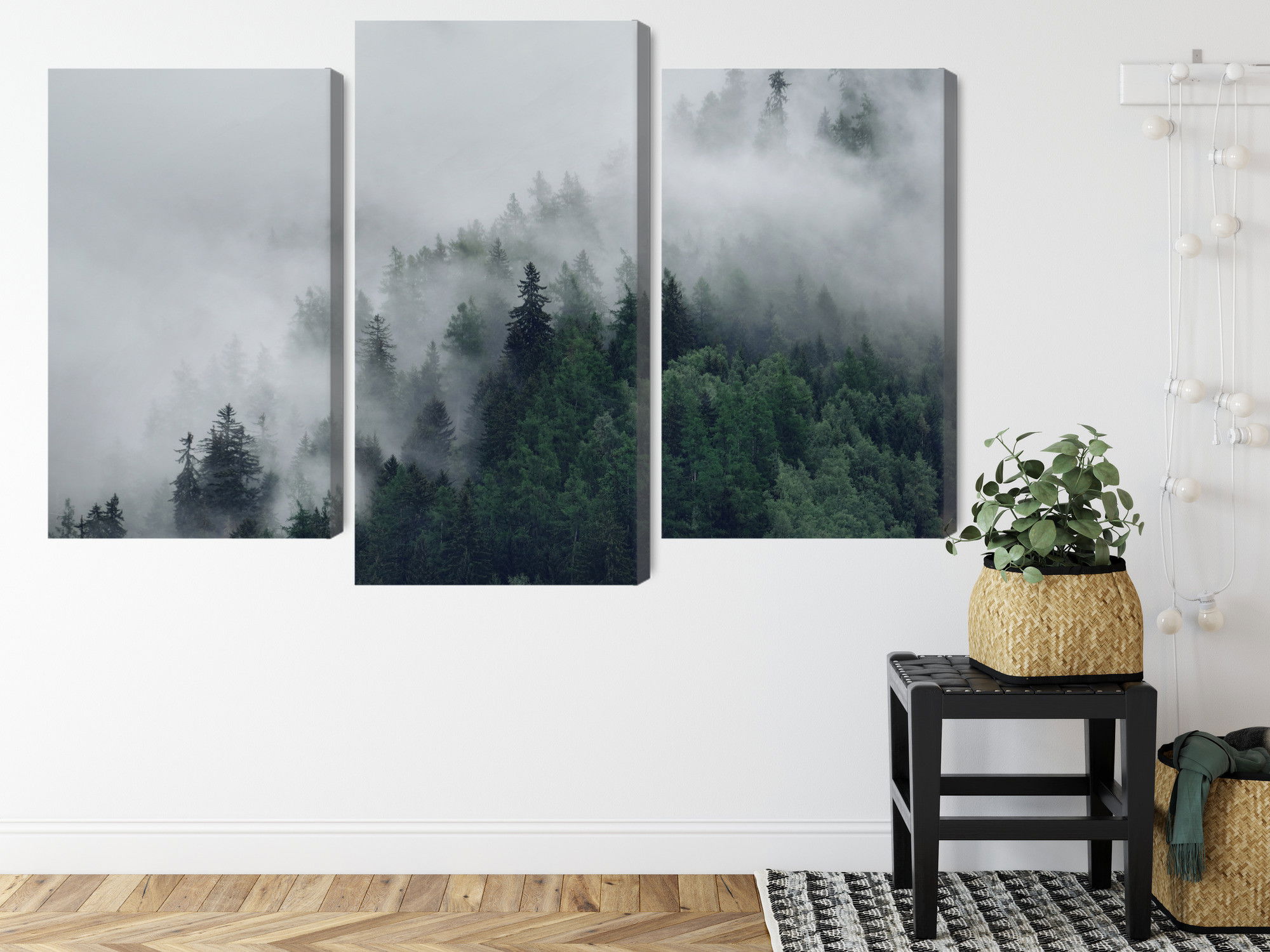 Ljuddämpande tavla – Green misty forest för lugnare rum och mjukare akustik