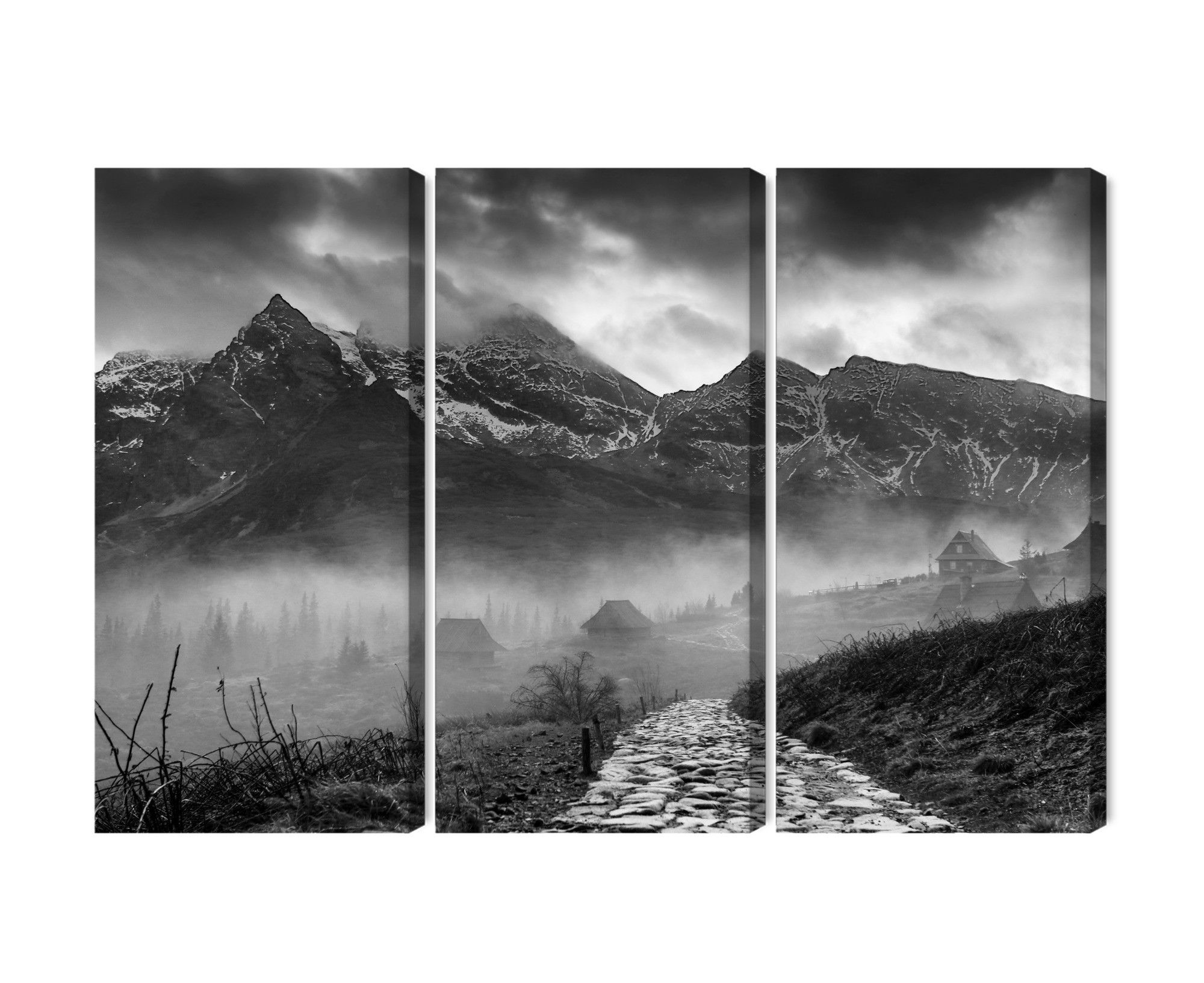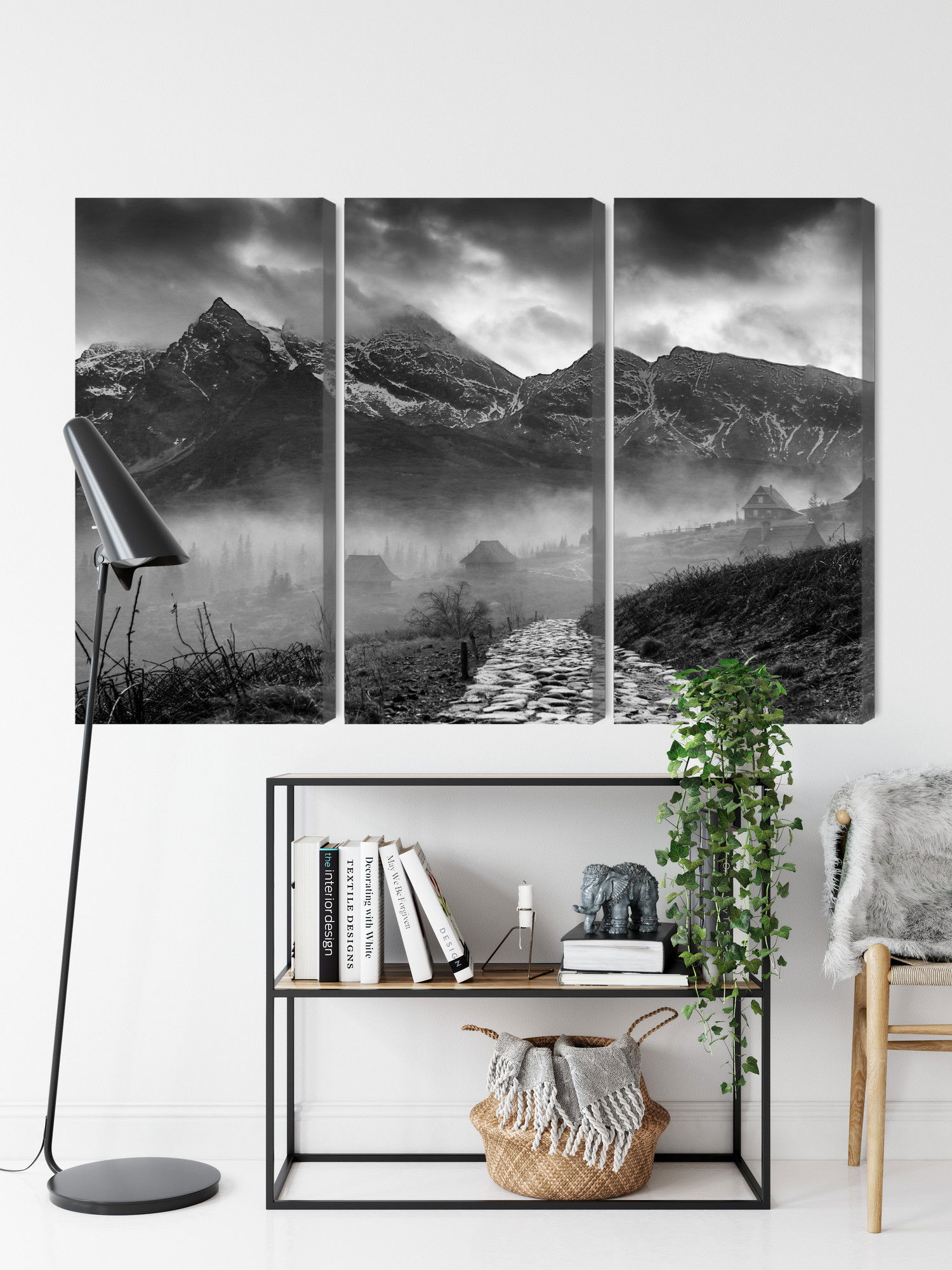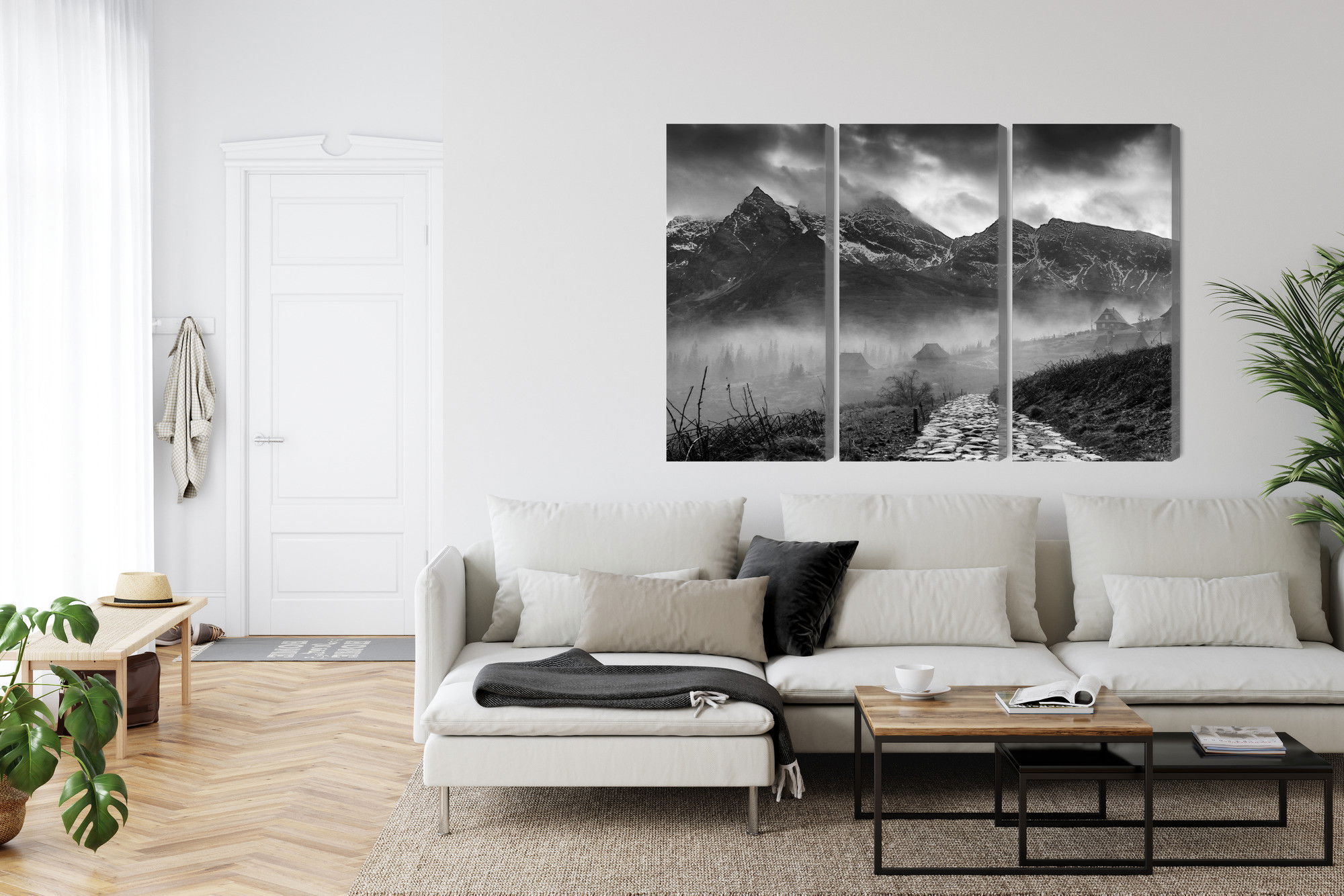 Varje tavla monteras på en massiv fururam. Format upp till 70×50 cm har en ram på 15 mm, medan format från 90×60 cm och uppåt har en ram på 20 mm. Den exakta dukspänningen gör att tavlan håller sin form över tid. Motivet Hala gasienicowa in black trycks runt hela ramen vilket ger ett stilrent galleriuttryck där tavlan är lika vacker från sidan som framifrån. Kombinationen av rak dukspänning, rena linjer och korrekt tryck ger en professionell finish.
