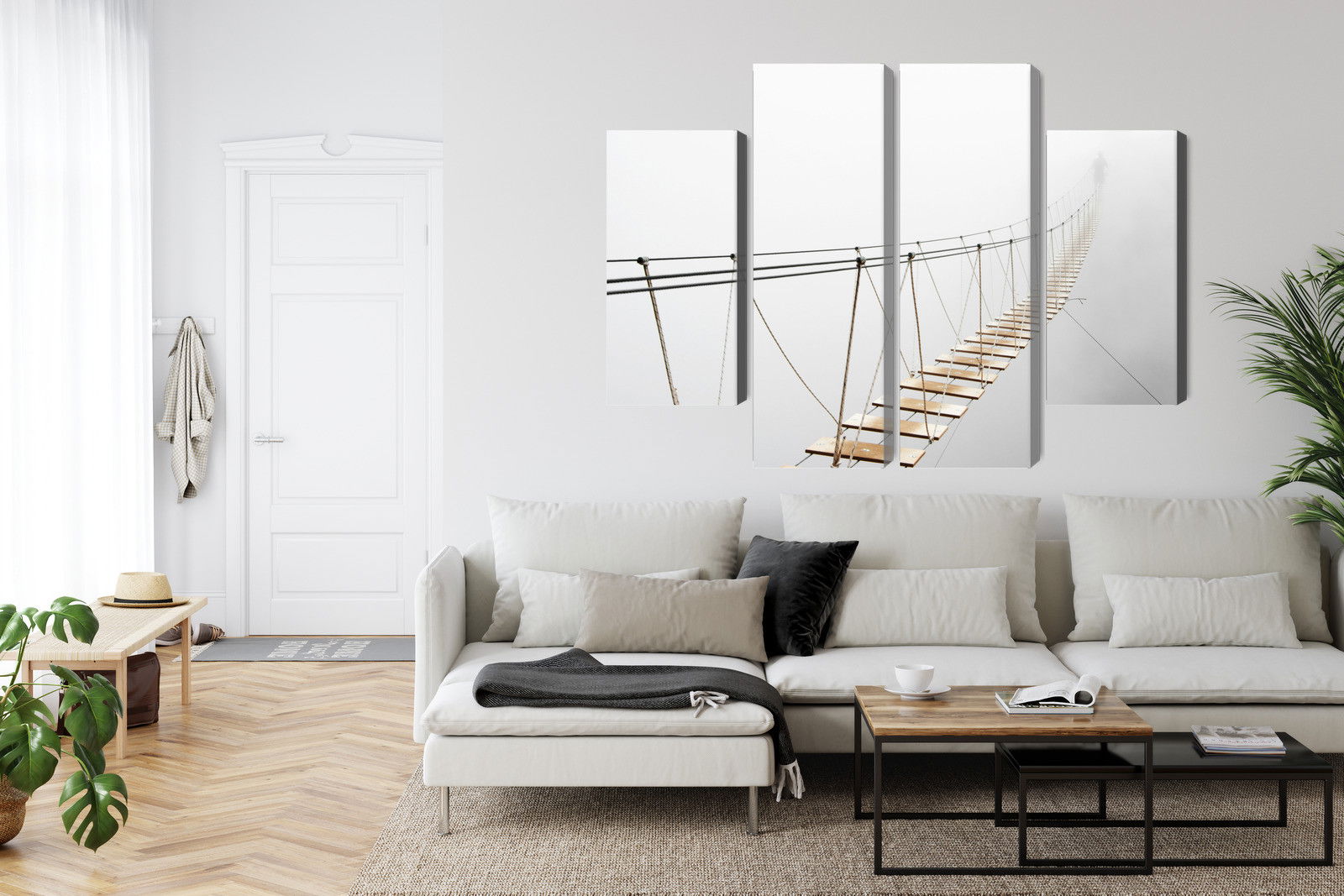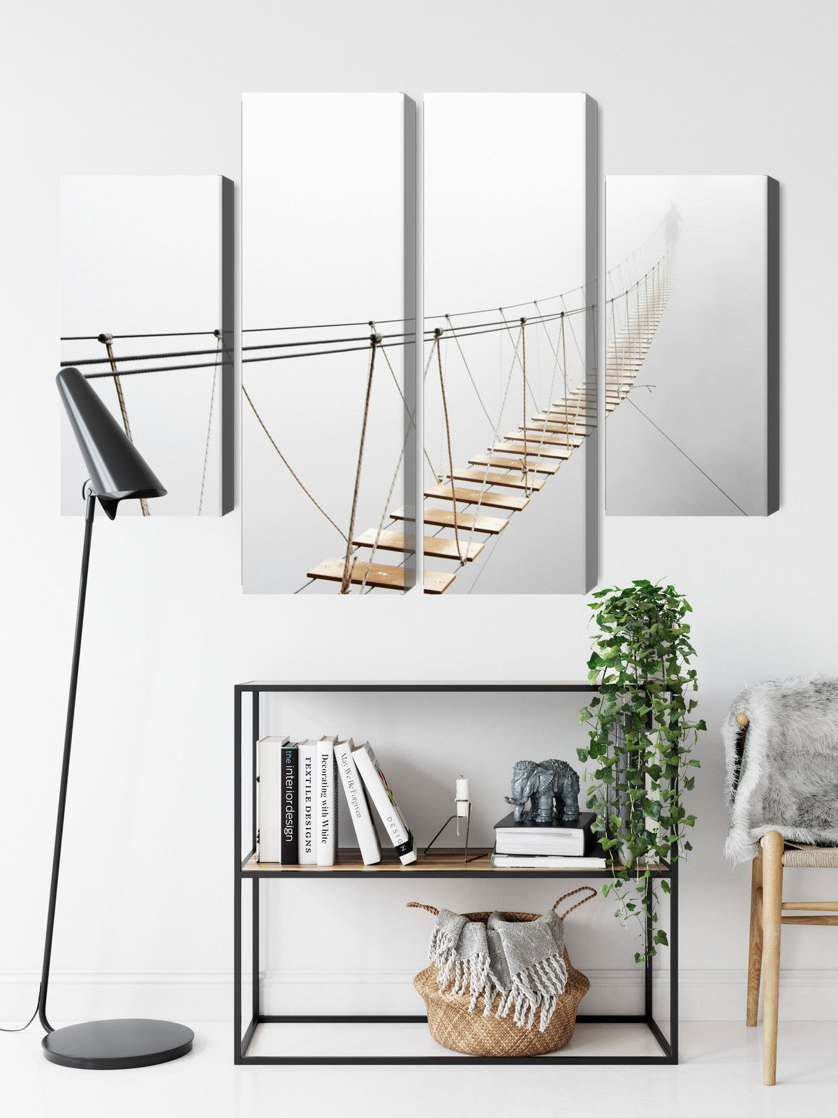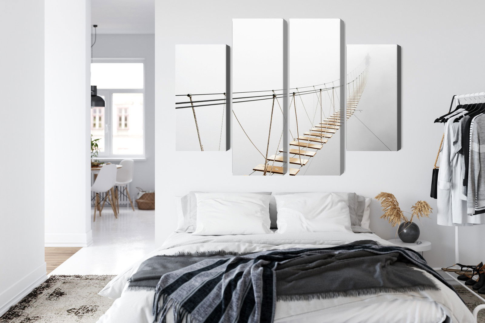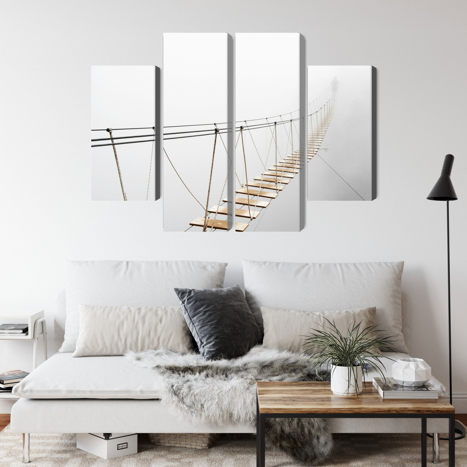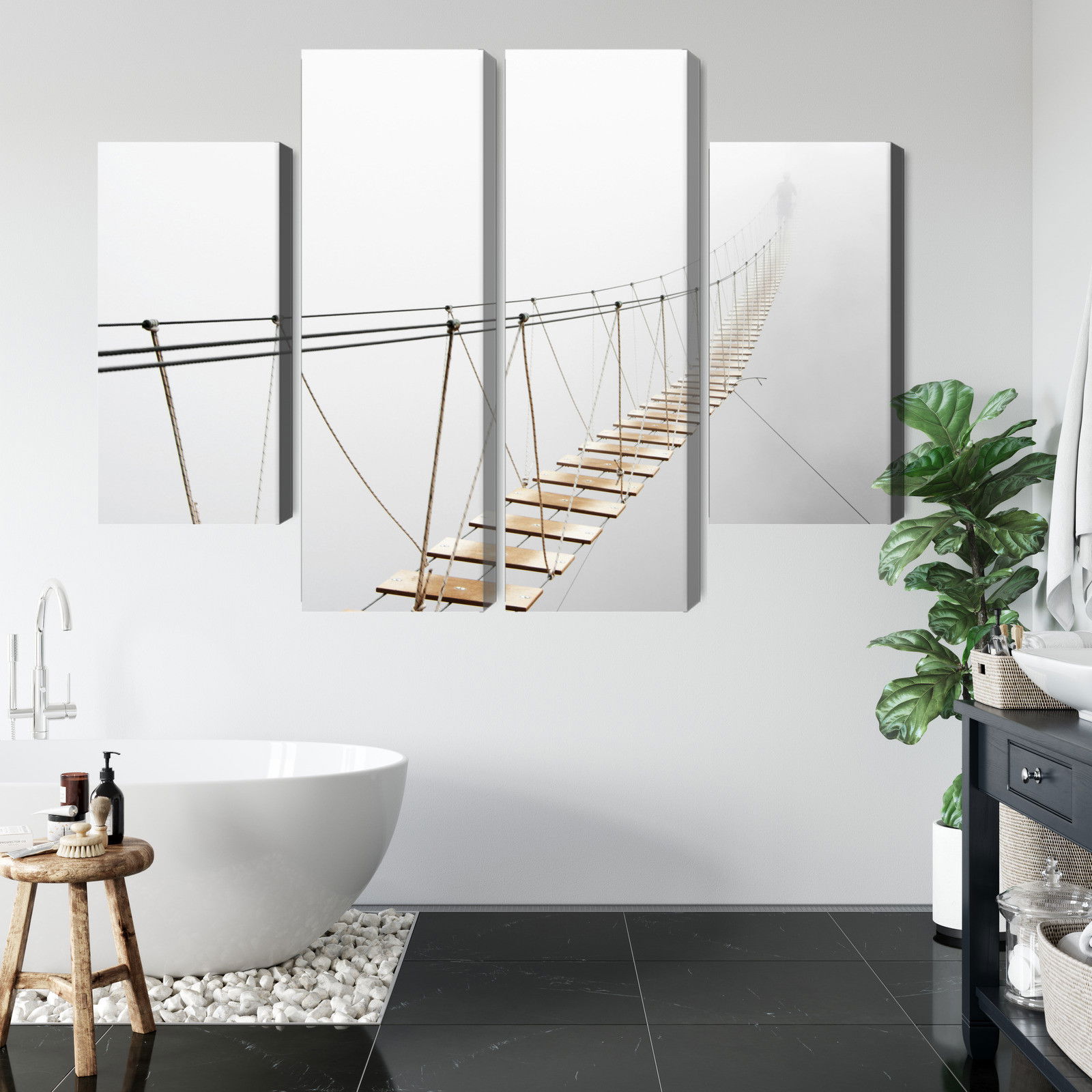 Ljuddämpande tavla – Hanging bridge in the fog för lugnare rum och mjukare akustik