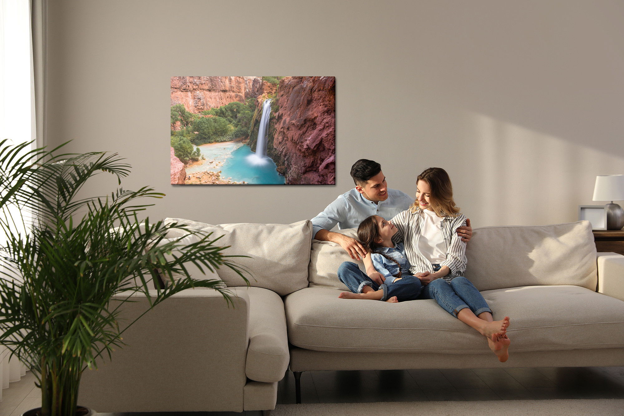 Motivet Havasu falls, arizona återges med hög färgprecision och detaljrikedom tack vare HP Latex-teknologi. Trycket sker med vattenbaserade, luktfria och GREENGUARD Gold-certifierade bläck som ger en upplösning på upp till 300 DPI. Färgerna är UV-beständiga och behåller sin styrka även i ljusa rum, vilket gör tavlan lämplig för både hem- och offentliga miljöer.