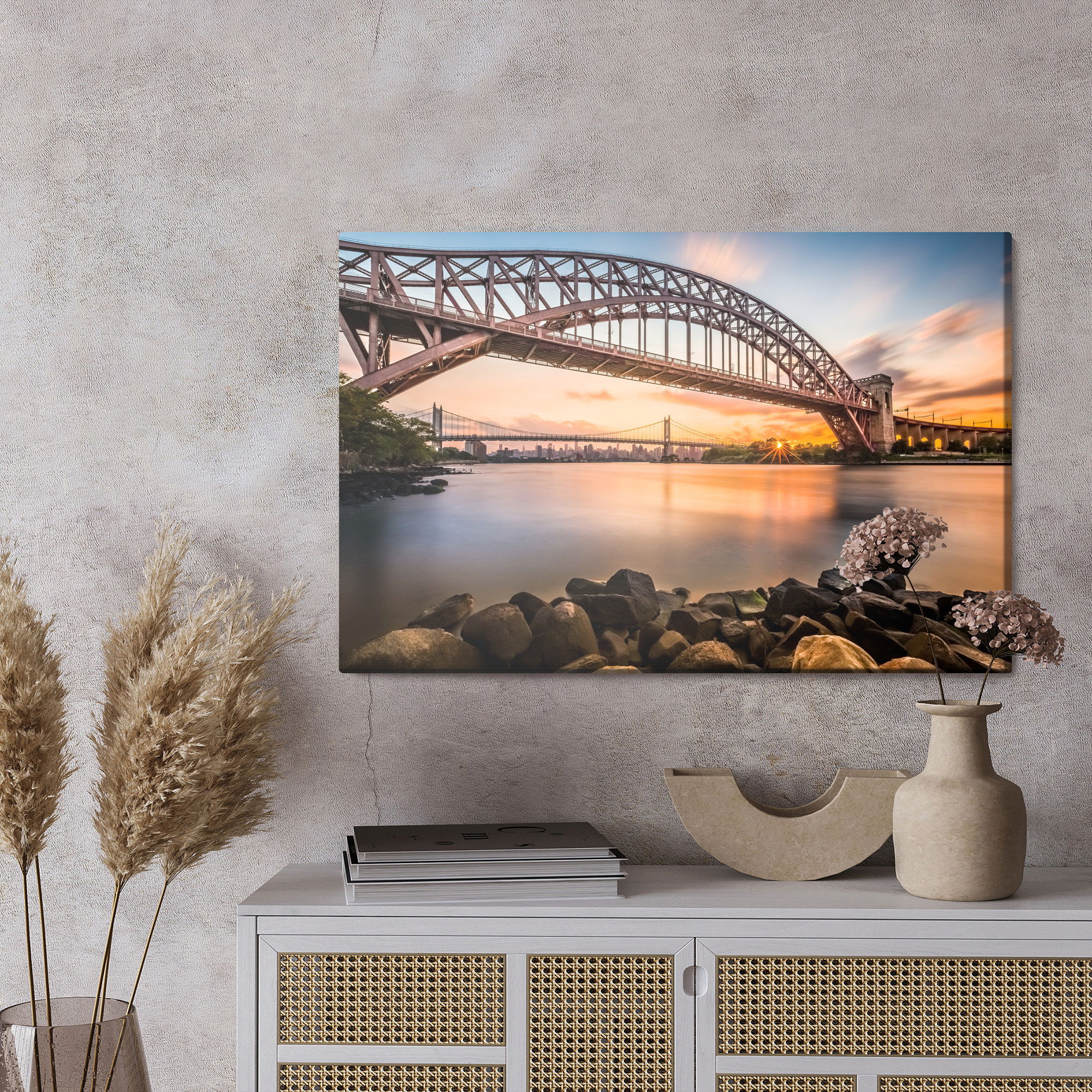 Ljuddämpande tavla – Hell gate bridge, New York för lugnare rum och mjukare akustik