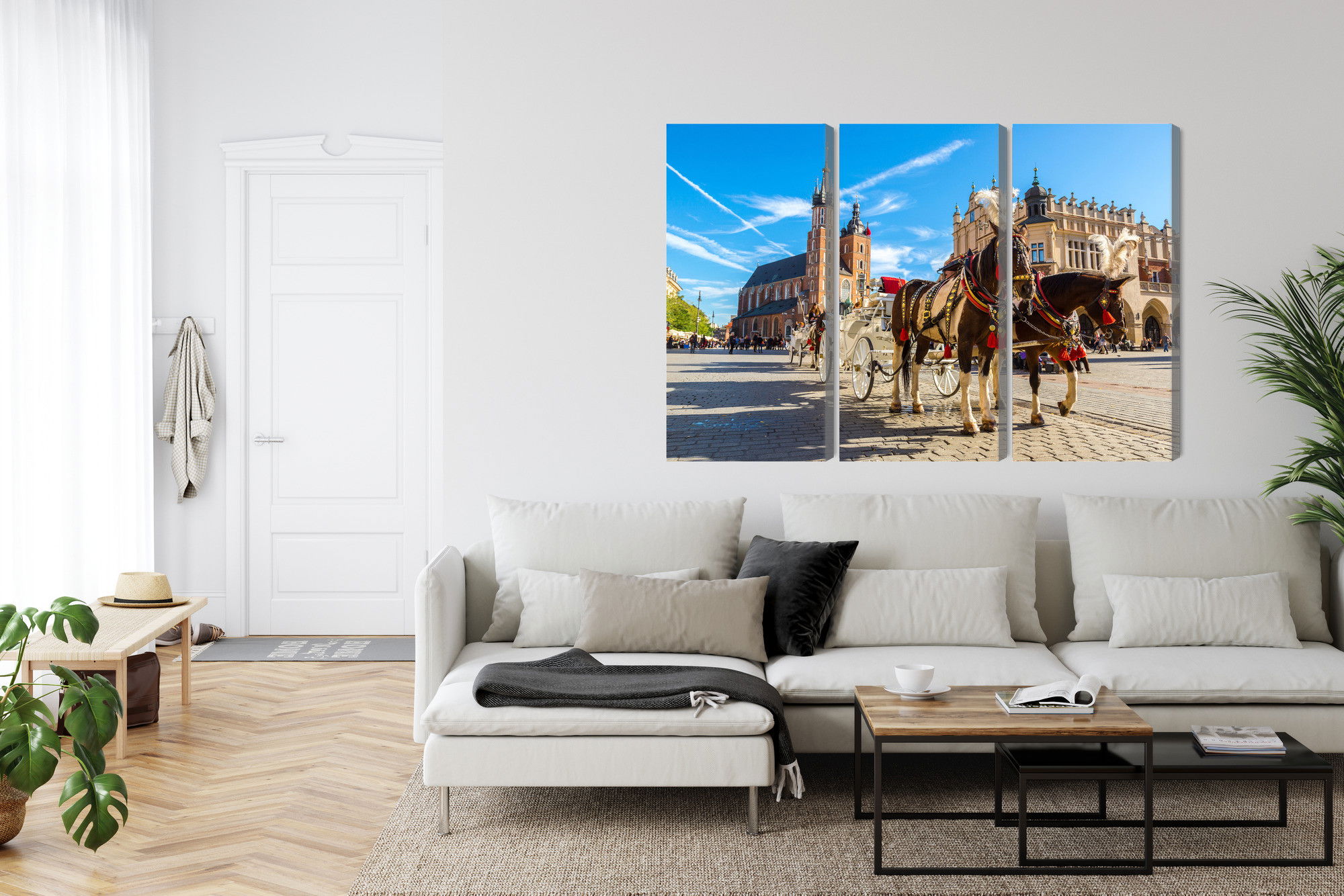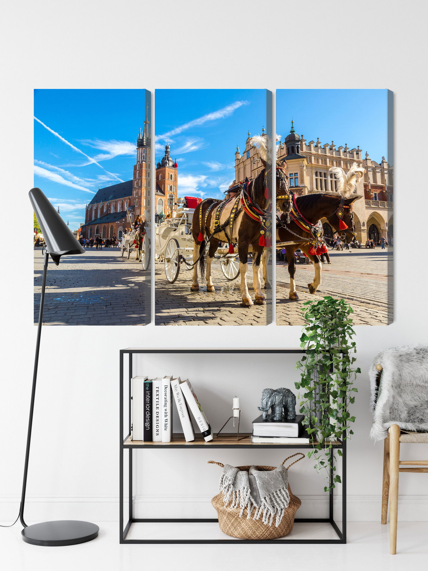 Varje tavla monteras på en massiv fururam. Format upp till 70×50 cm har en ram på 15 mm, medan format från 90×60 cm och uppåt har en ram på 20 mm. Den exakta dukspänningen gör att tavlan håller sin form över tid. Motivet Horse carriages trycks runt hela ramen vilket ger ett stilrent galleriuttryck där tavlan är lika vacker från sidan som framifrån. Kombinationen av rak dukspänning, rena linjer och korrekt tryck ger en professionell finish.