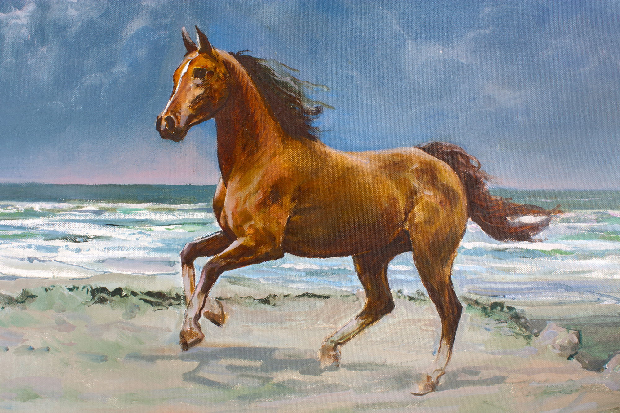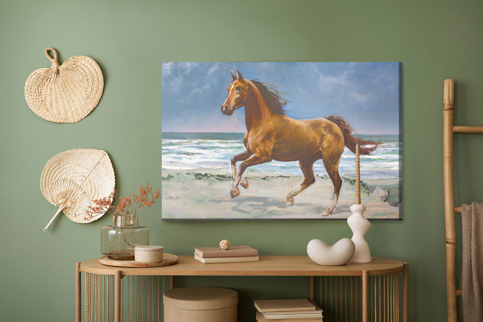 Ljuddämpande tavla – Horse, sun and sea för lugnare rum och mjukare akustik