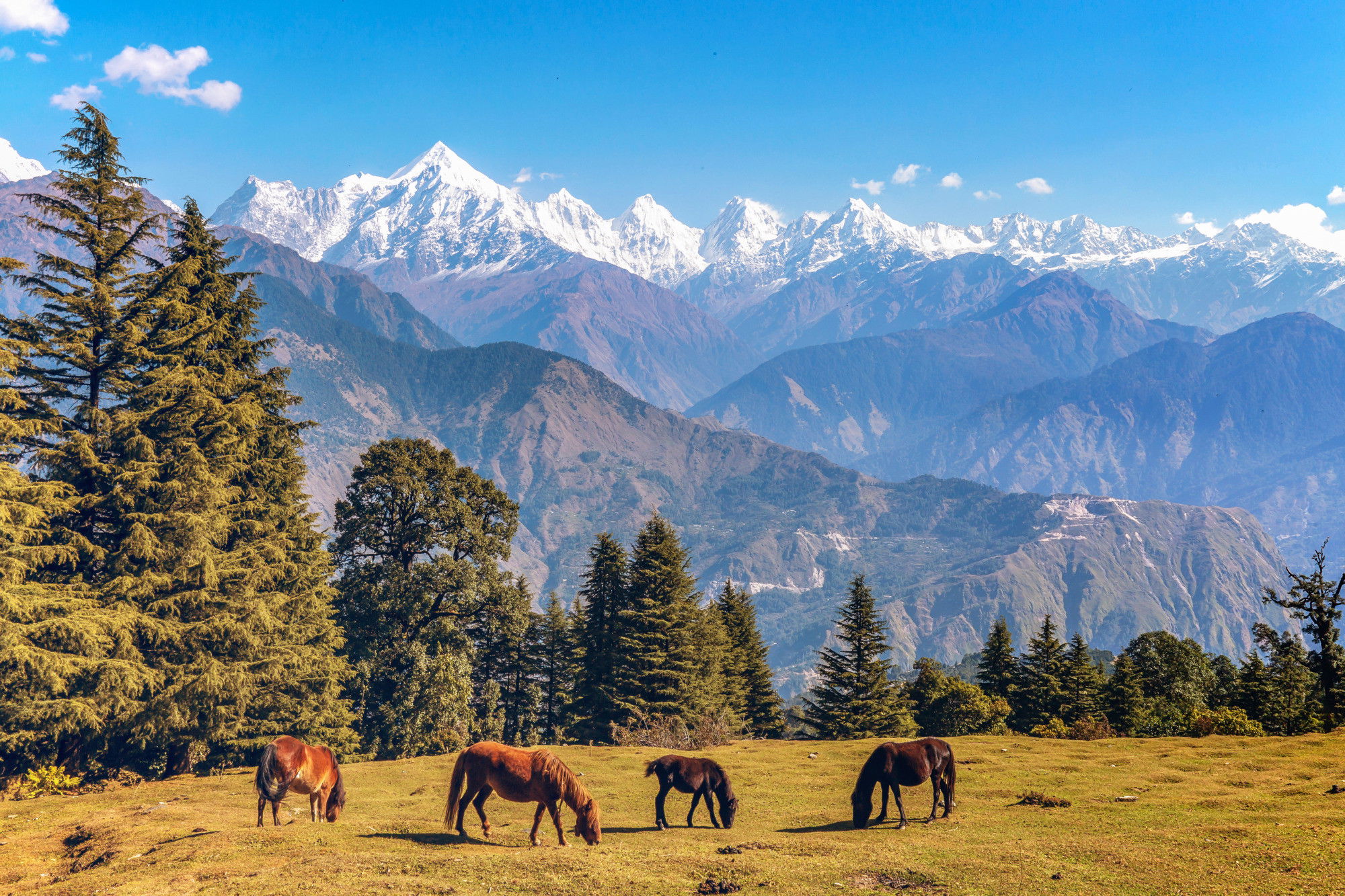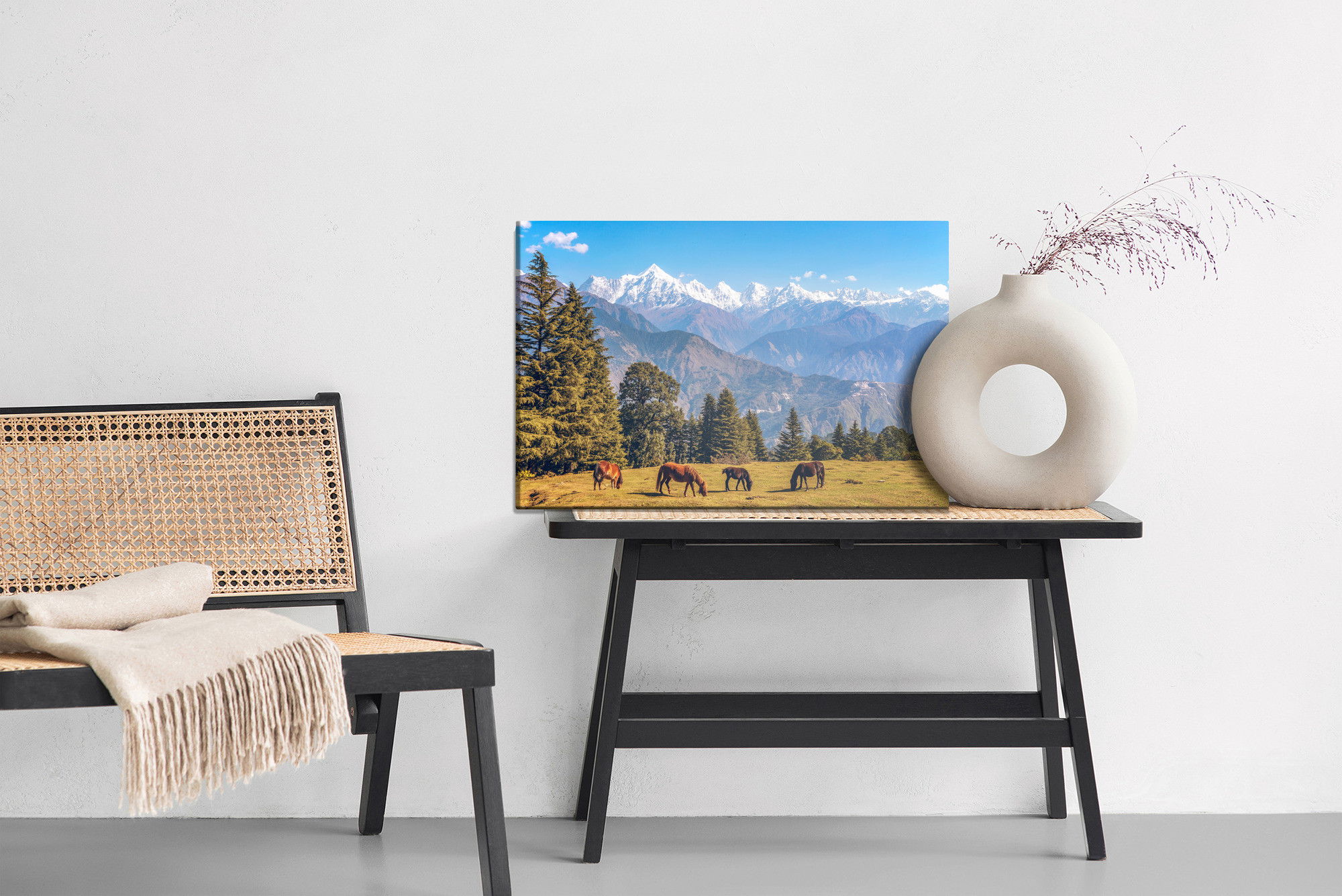 Ljuddämpande tavla – Horses and mountain landscape för lugnare rum och mjukare akustik