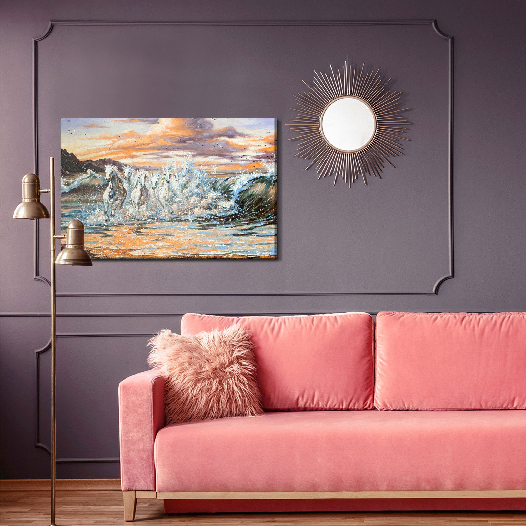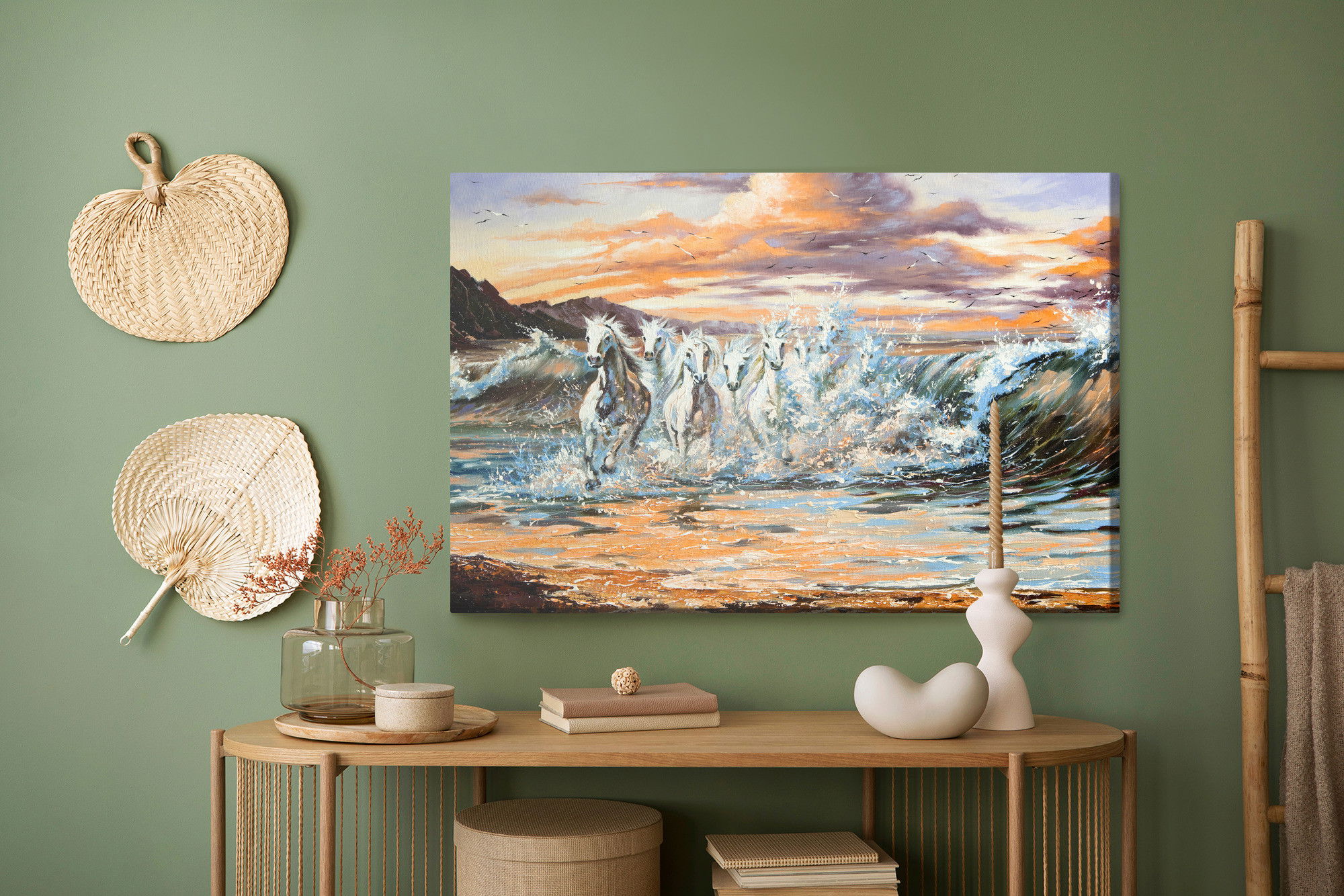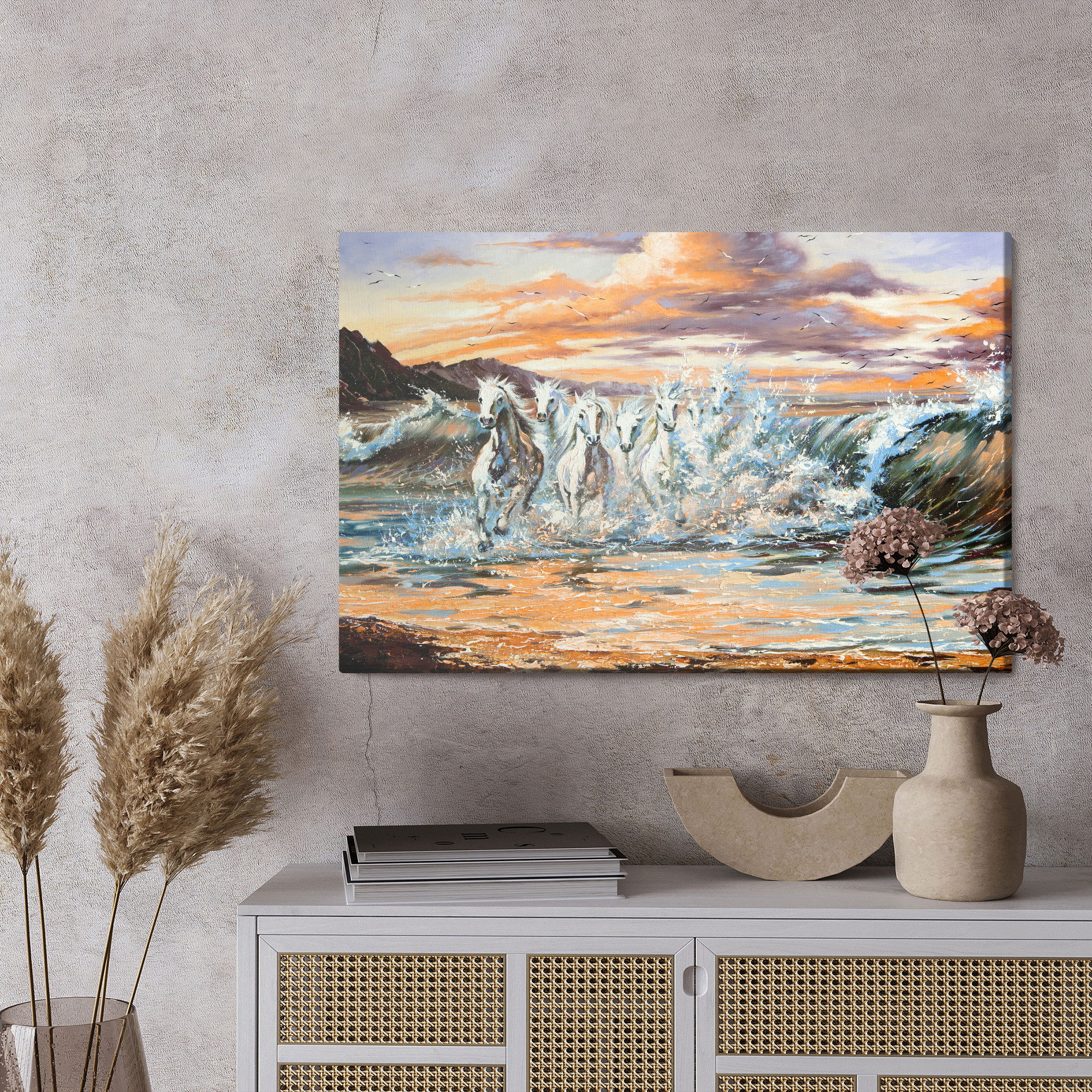 Ljuddämpande tavla – Horses at the seaside för lugnare rum och mjukare akustik