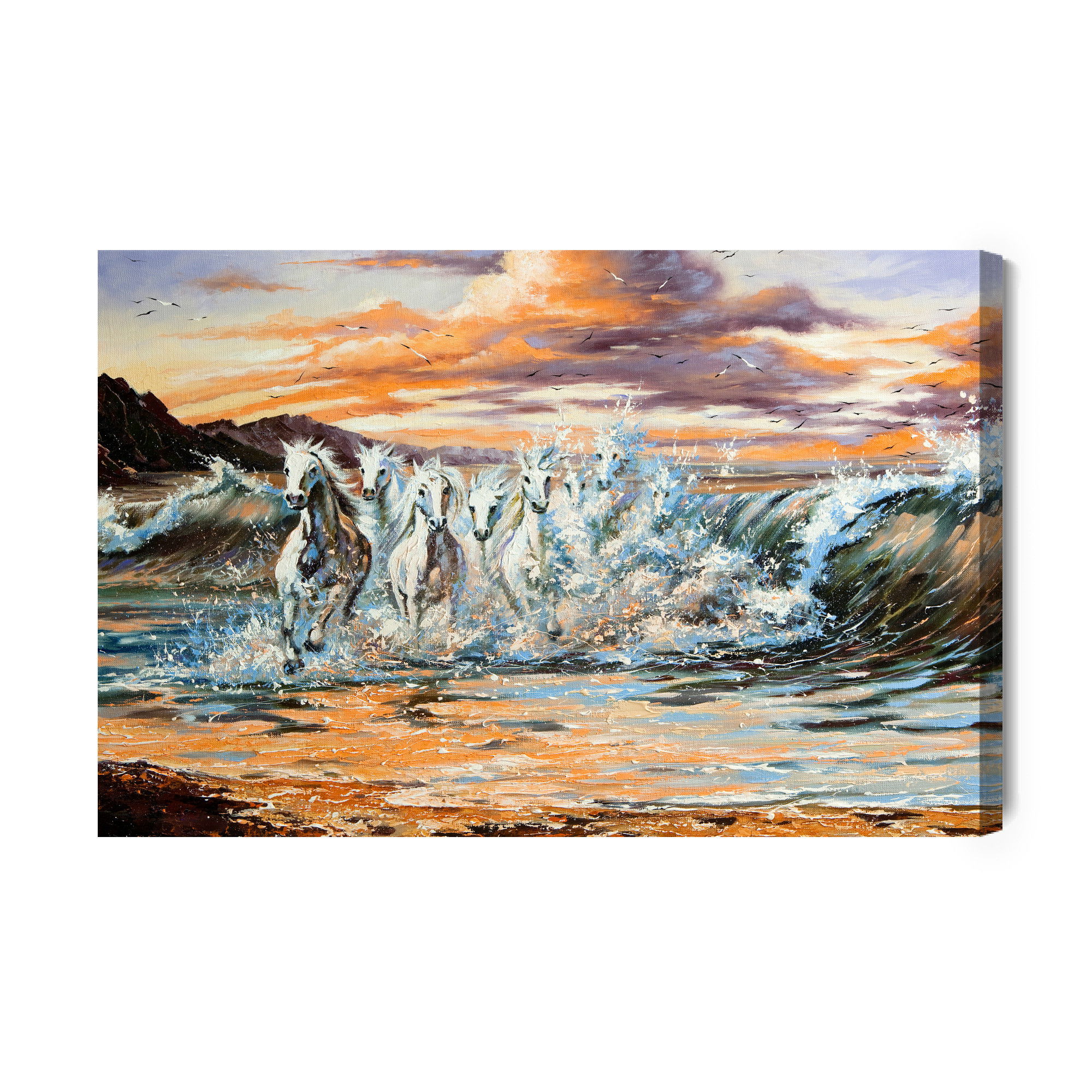 Motivet Horses at the seaside återges med hög färgprecision och detaljrikedom tack vare HP Latex-teknologi. Trycket sker med vattenbaserade, luktfria och GREENGUARD Gold-certifierade bläck som ger en upplösning på upp till 300 DPI. Färgerna är UV-beständiga och behåller sin styrka även i ljusa rum, vilket gör tavlan lämplig för både hem- och offentliga miljöer.