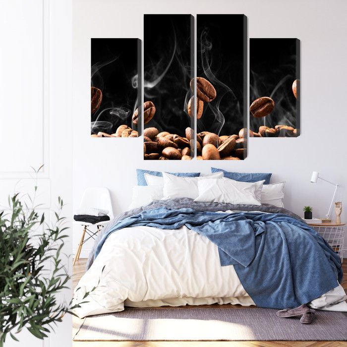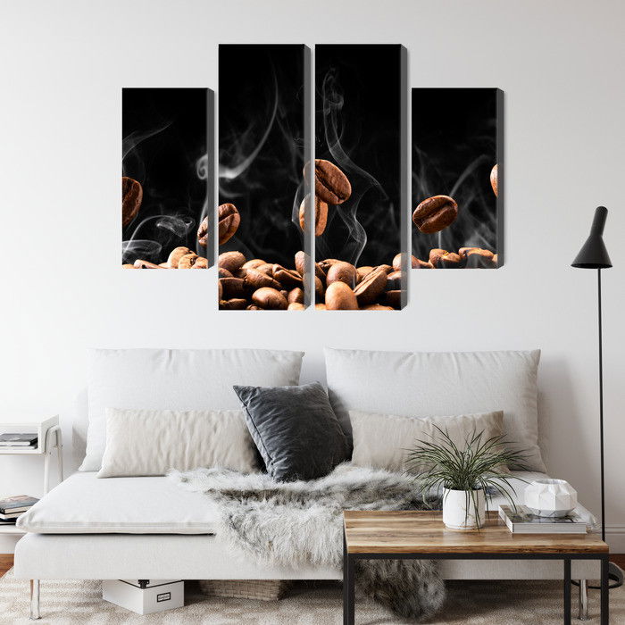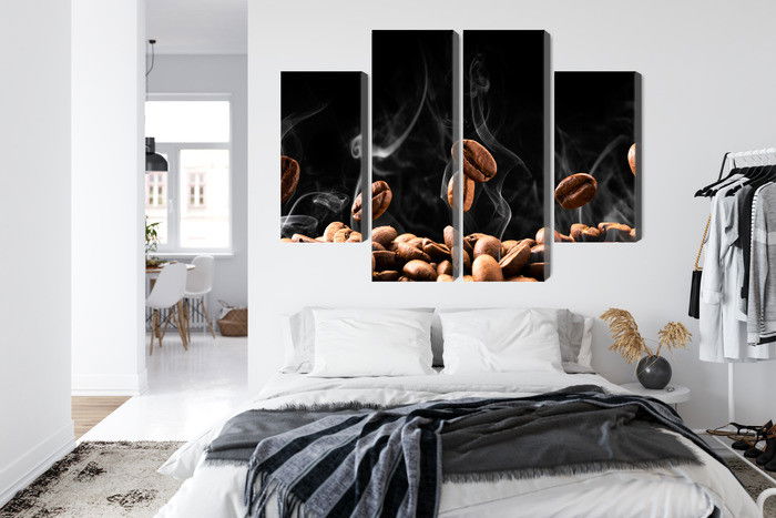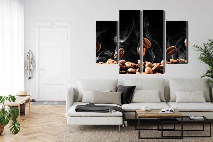 SilentDirects ljuddämpande tavla Hot coffee beans kombinerar ett högupplöst motiv med avancerad akustikteknik. Varje tavla monteras i Sverige och bygger på en stabil canvastavla med fururam, där insidan av ramen fylls med en ljudabsorberande kärna av återvunnen polyester. Konstruktionen gör tavlan till ett både estetiskt och funktionellt inslag i rummet.