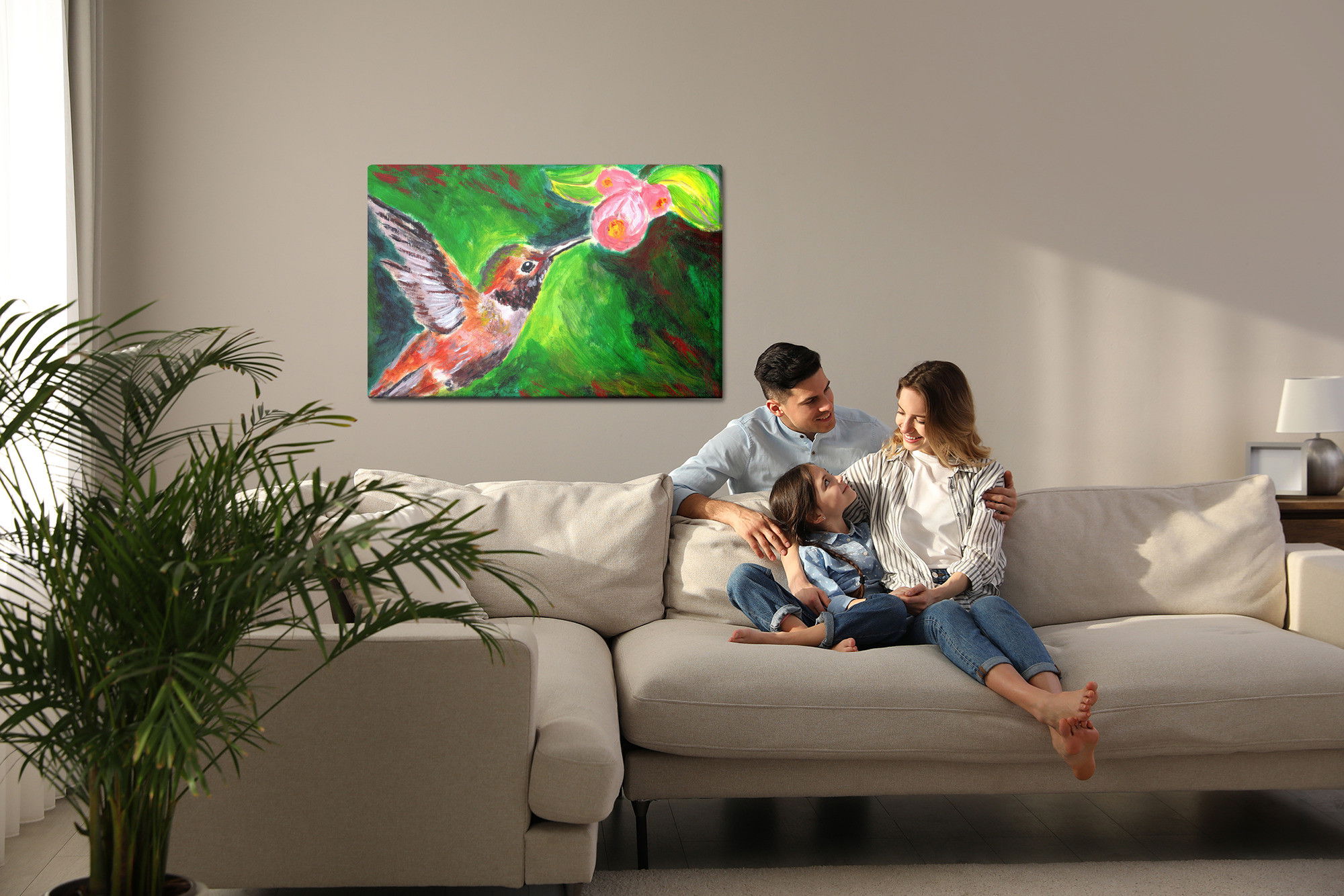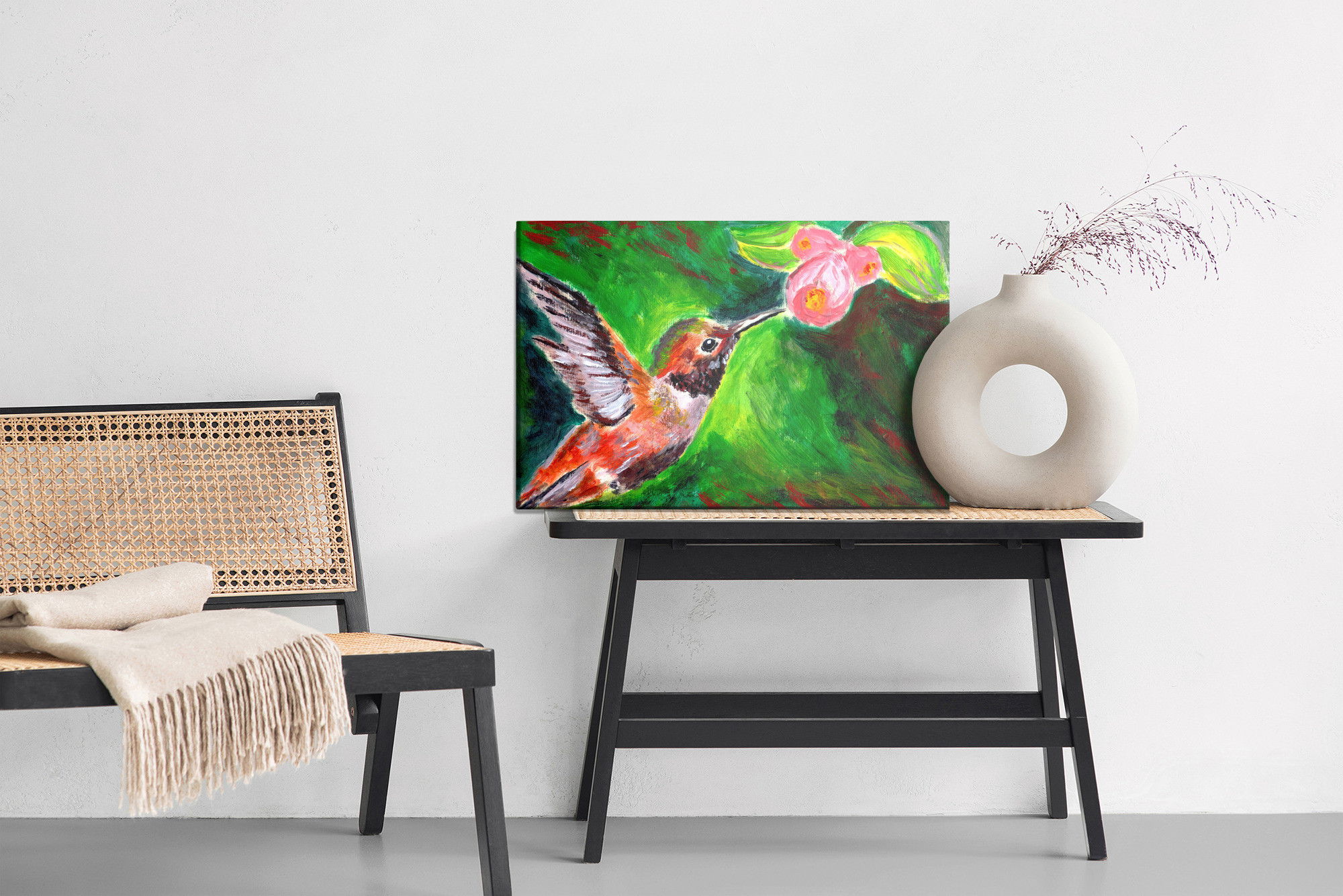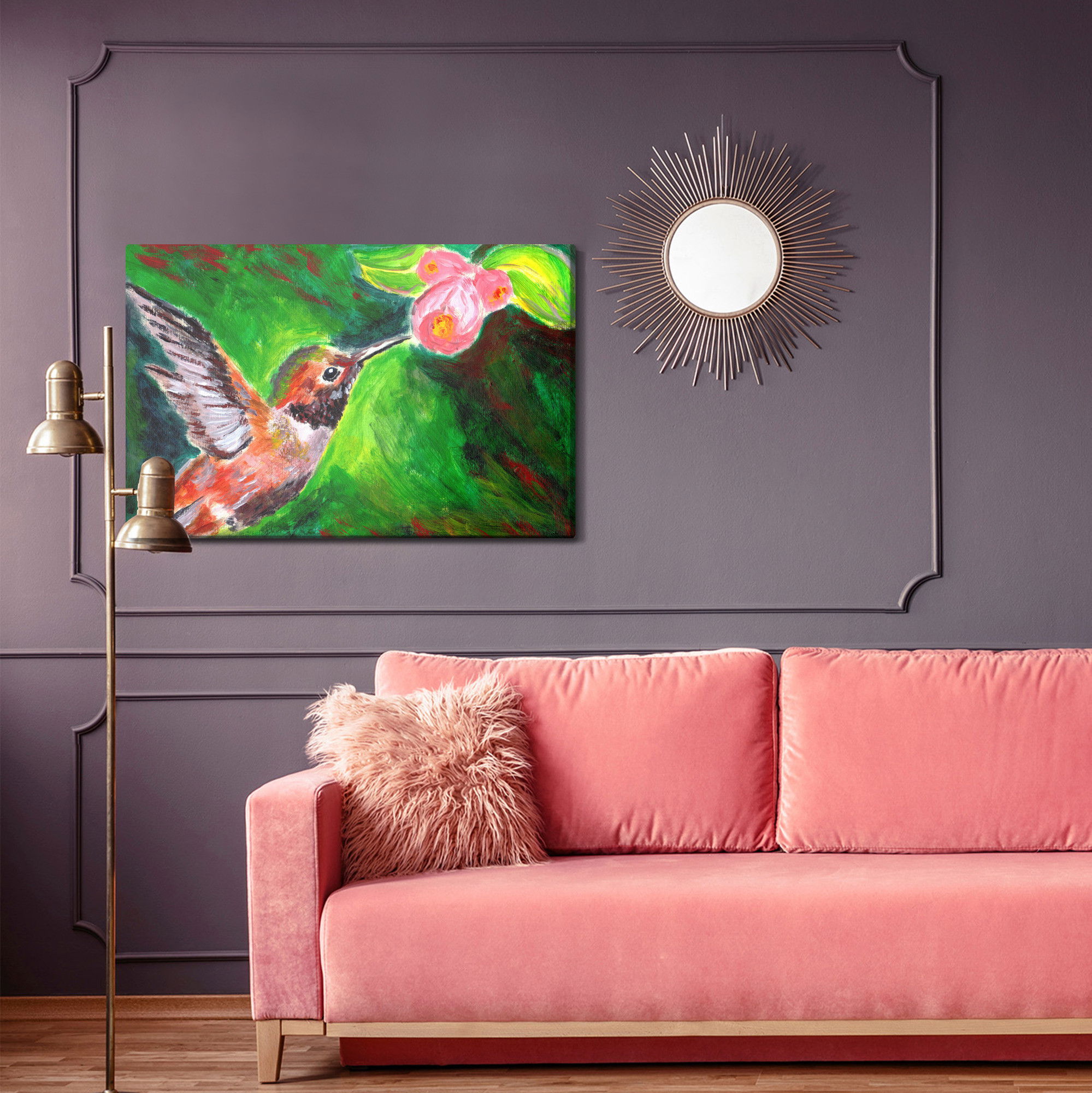Ljuddämpande tavla – Hummingbird bird för lugnare rum och mjukare akustik