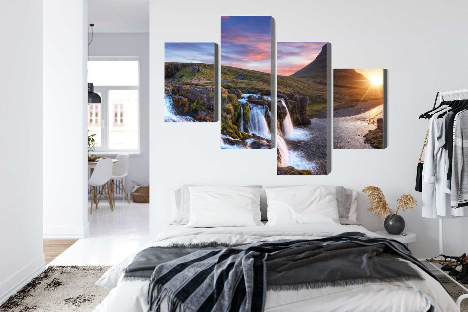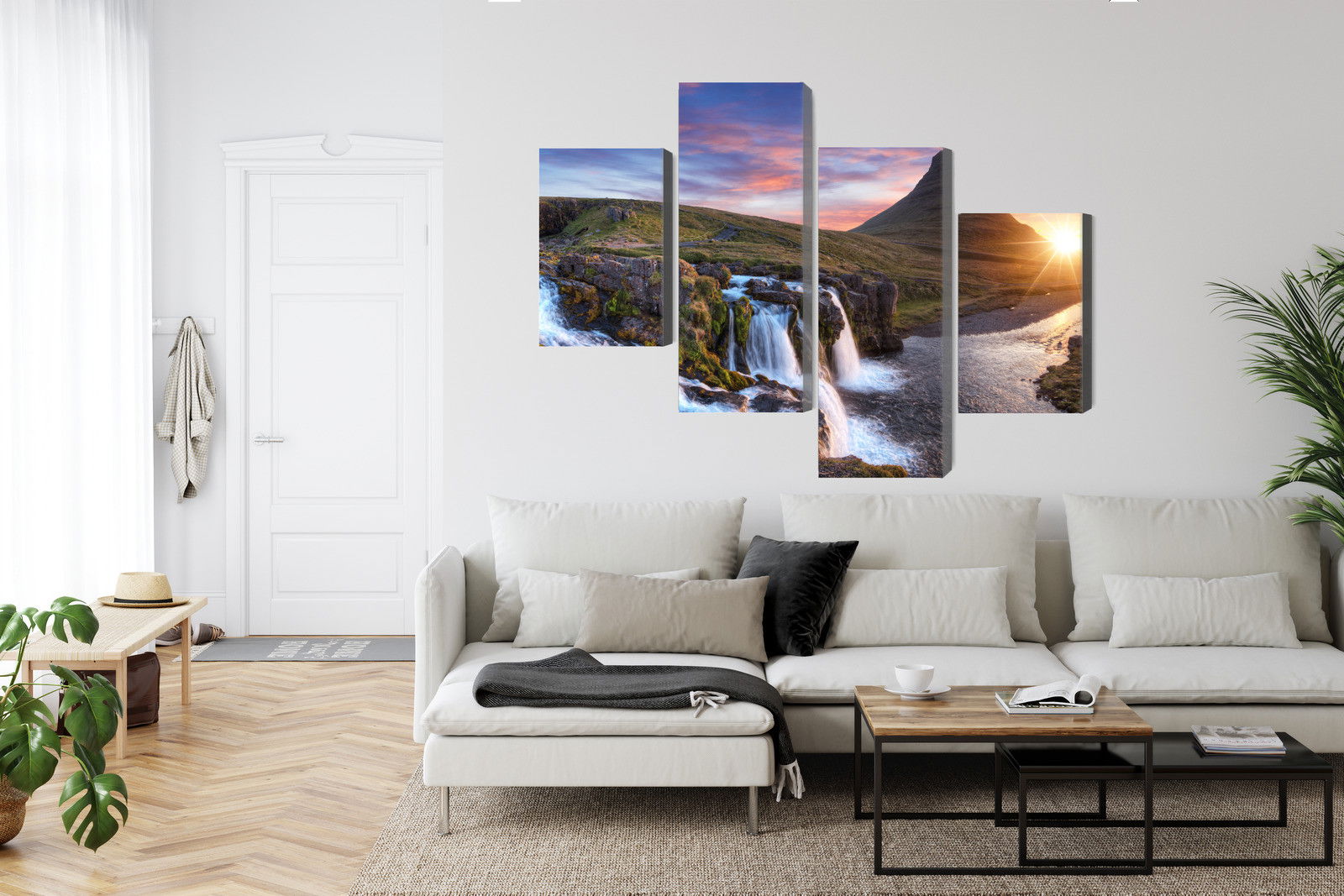 Varje tavla monteras på en massiv fururam. Format upp till 70×50 cm har en ram på 15 mm, medan format från 90×60 cm och uppåt har en ram på 20 mm. Den exakta dukspänningen gör att tavlan håller sin form över tid. Motivet Kirkjufell mountain trycks runt hela ramen vilket ger ett stilrent galleriuttryck där tavlan är lika vacker från sidan som framifrån. Kombinationen av rak dukspänning, rena linjer och korrekt tryck ger en professionell finish.