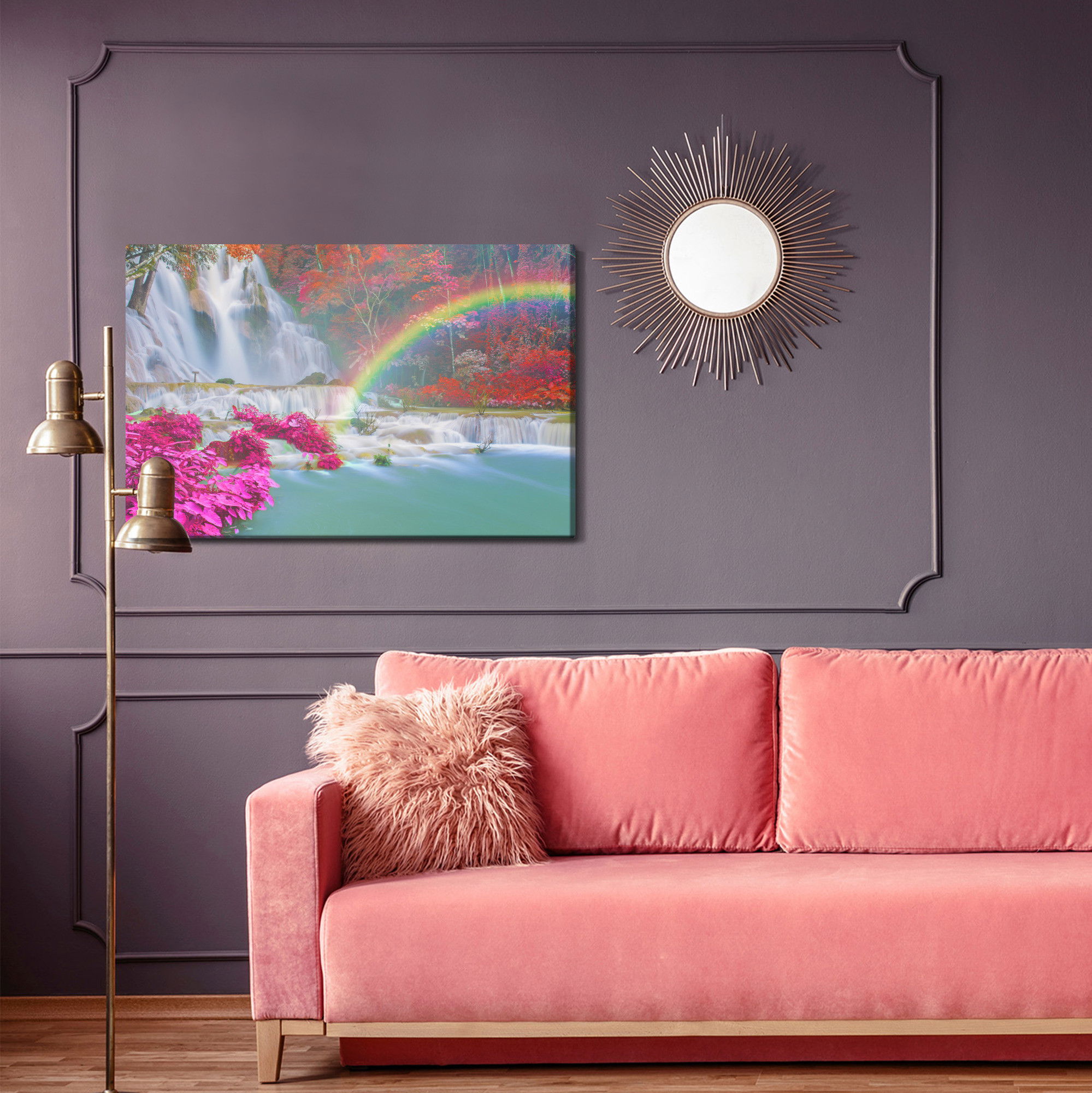 Motivet Kuang si waterfall in laos återges med hög färgprecision och detaljrikedom tack vare HP Latex-teknologi. Trycket sker med vattenbaserade, luktfria och GREENGUARD Gold-certifierade bläck som ger en upplösning på upp till 300 DPI. Färgerna är UV-beständiga och behåller sin styrka även i ljusa rum, vilket gör tavlan lämplig för både hem- och offentliga miljöer.