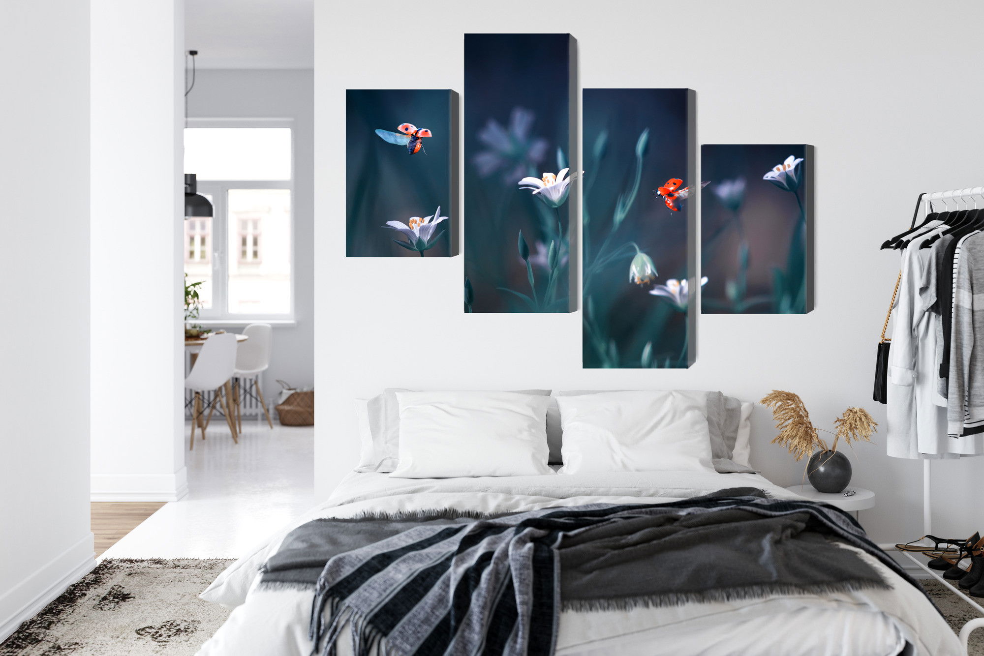 Ljuddämpande tavla – Ladybugs and wildflowers för lugnare rum och mjukare akustik