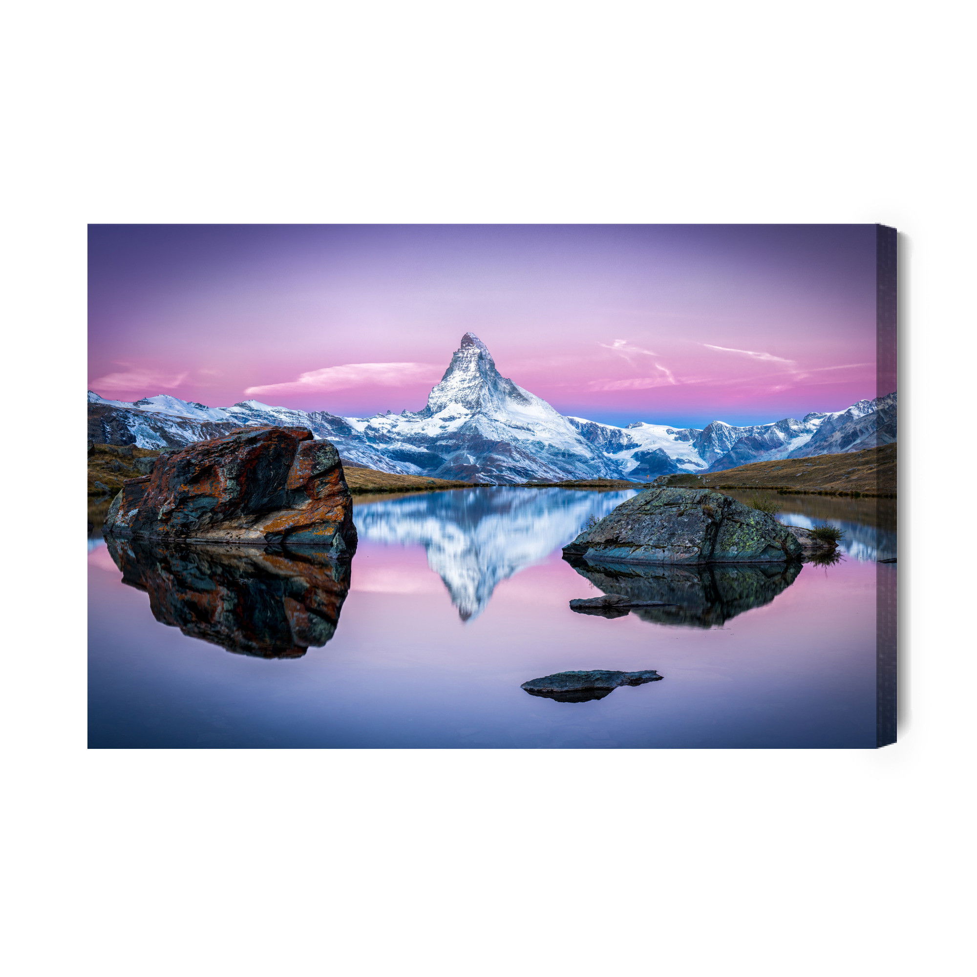 Varje tavla monteras på en massiv fururam. Format upp till 70×50 cm har en ram på 15 mm, medan format från 90×60 cm och uppåt har en ram på 20 mm. Den exakta dukspänningen gör att tavlan håller sin form över tid. Motivet Lake in the mountains trycks runt hela ramen vilket ger ett stilrent galleriuttryck där tavlan är lika vacker från sidan som framifrån. Kombinationen av rak dukspänning, rena linjer och korrekt tryck ger en professionell finish.