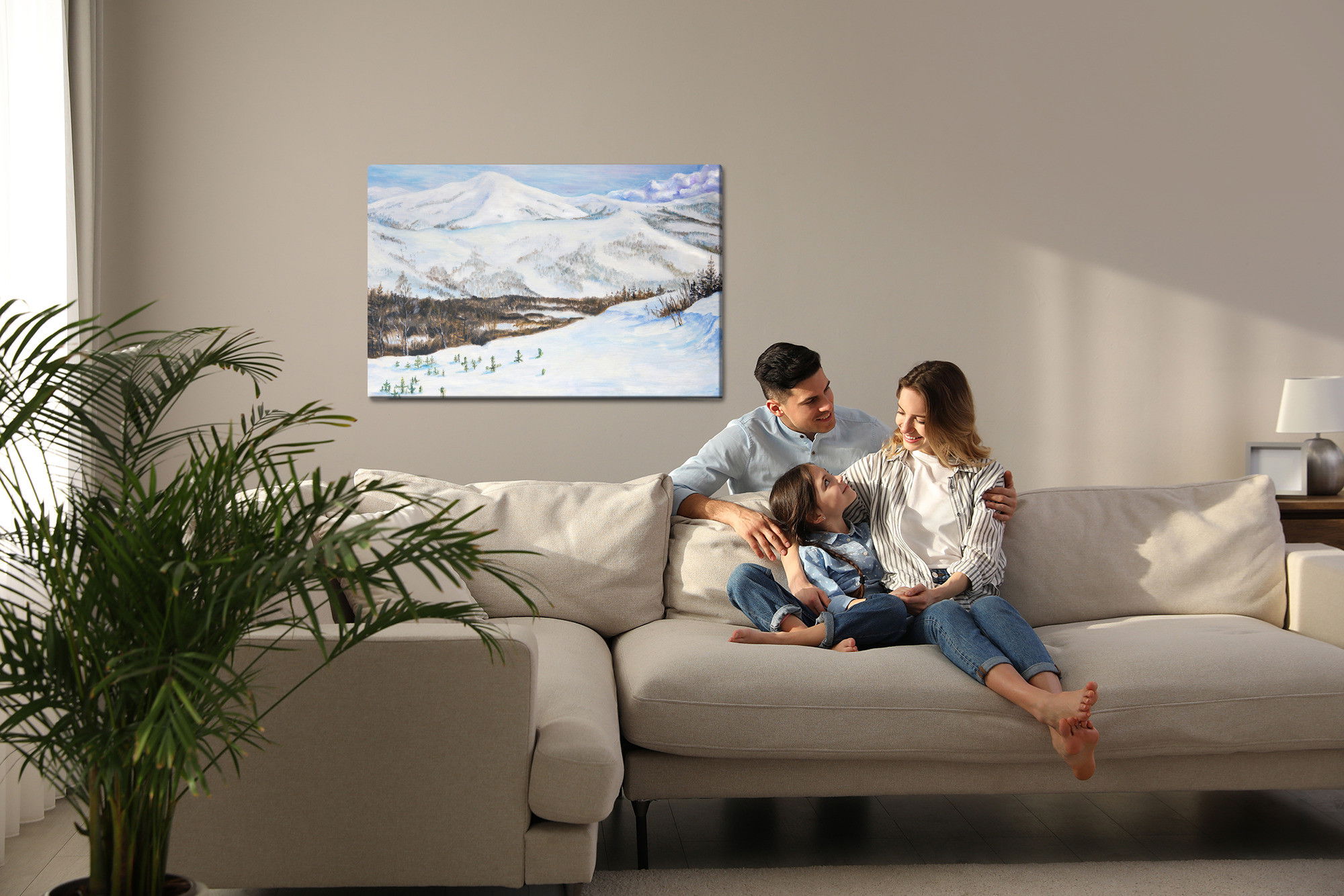 Ljuddämpande tavla – Landscape with snow-capped för lugnare rum och mjukare akustik