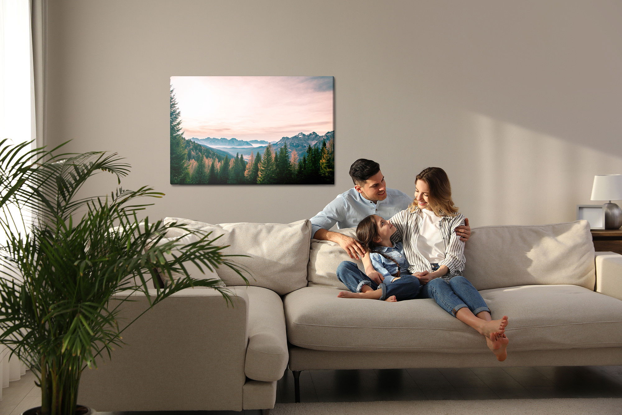 Varje tavla monteras på en massiv fururam. Format upp till 70×50 cm har en ram på 15 mm, medan format från 90×60 cm och uppåt har en ram på 20 mm. Den exakta dukspänningen gör att tavlan håller sin form över tid. Motivet trycks runt hela ramen vilket ger ett stilrent galleriuttryck där tavlan är lika vacker från sidan som framifrån. Kombinationen av rak dukspänning, rena linjer och korrekt tryck ger en professionell finish.