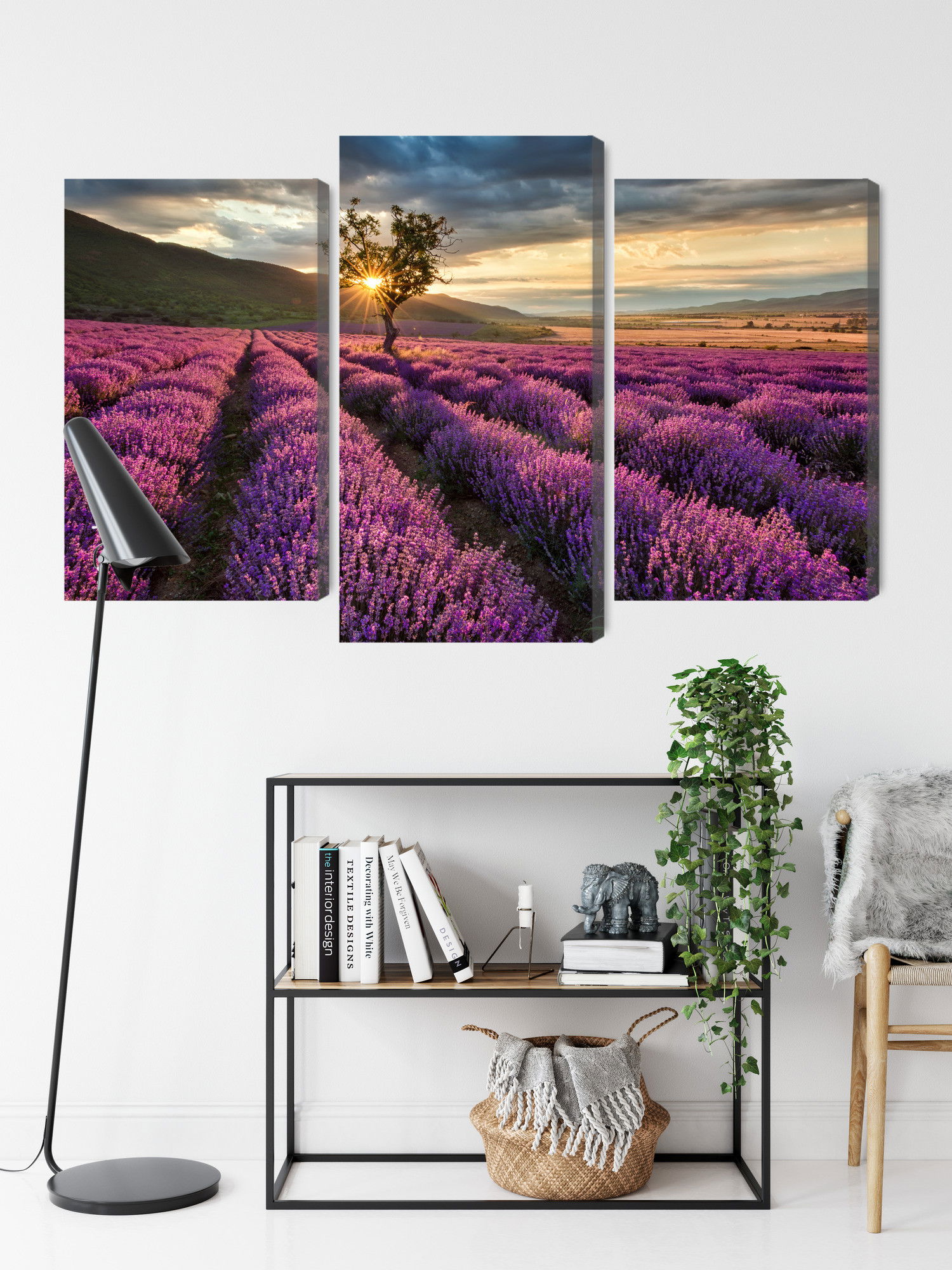 Ljuddämpande tavla – Lavender field at sunset 3d för lugnare rum och mjukare akustik