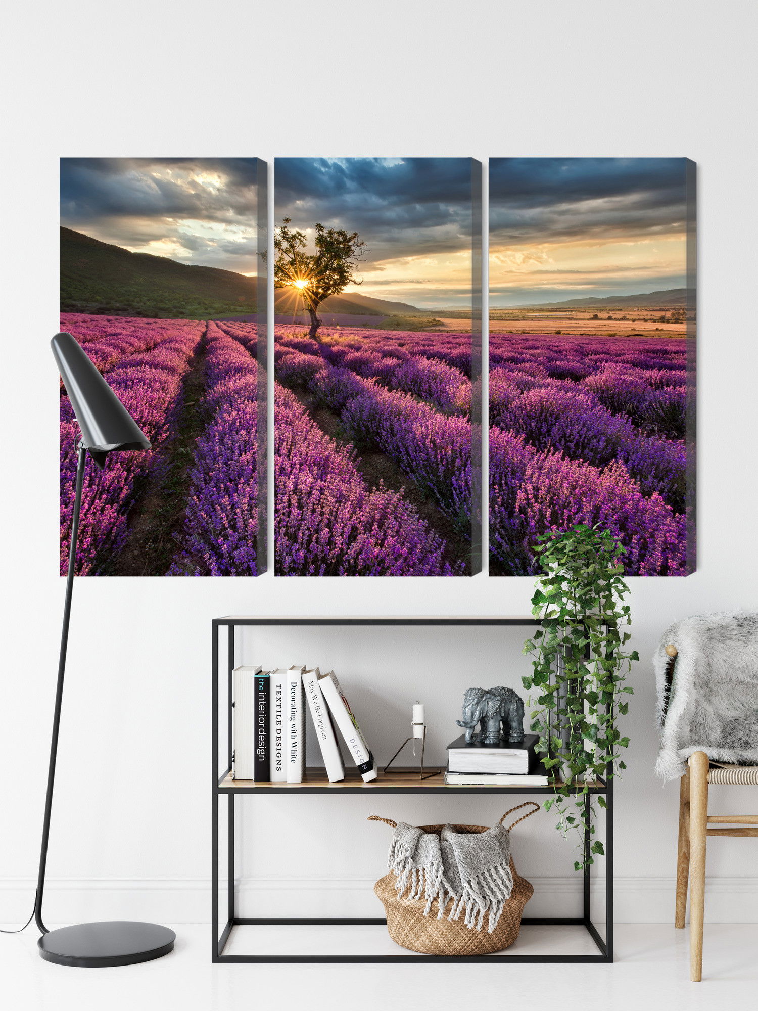 Ljuddämpande tavla – Lavender field at sunset 3d för lugnare rum och mjukare akustik