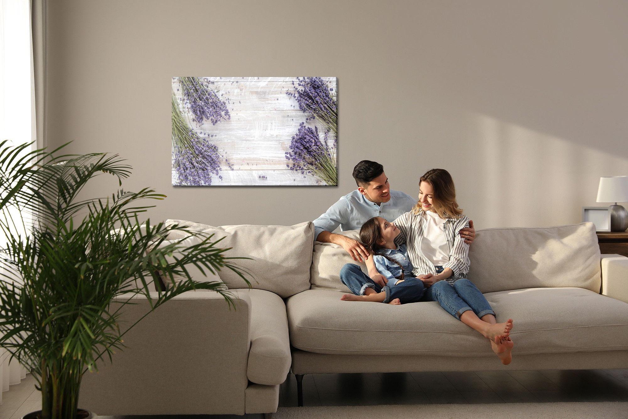 Motivet Lavender flowers återges med hög färgprecision och detaljrikedom tack vare HP Latex-teknologi. Trycket sker med vattenbaserade, luktfria och GREENGUARD Gold-certifierade bläck som ger en upplösning på upp till 300 DPI. Färgerna är UV-beständiga och behåller sin styrka även i ljusa rum, vilket gör tavlan lämplig för både hem- och offentliga miljöer.