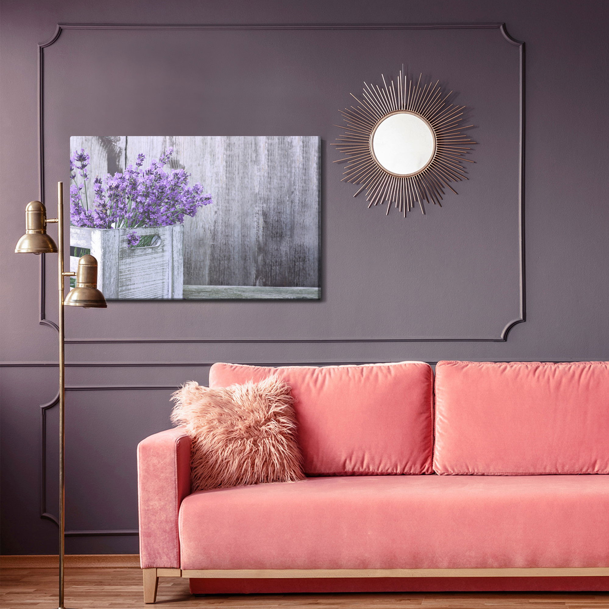 Ljuddämpande tavla – Lavender flowers in a wooden för lugnare rum och mjukare akustik