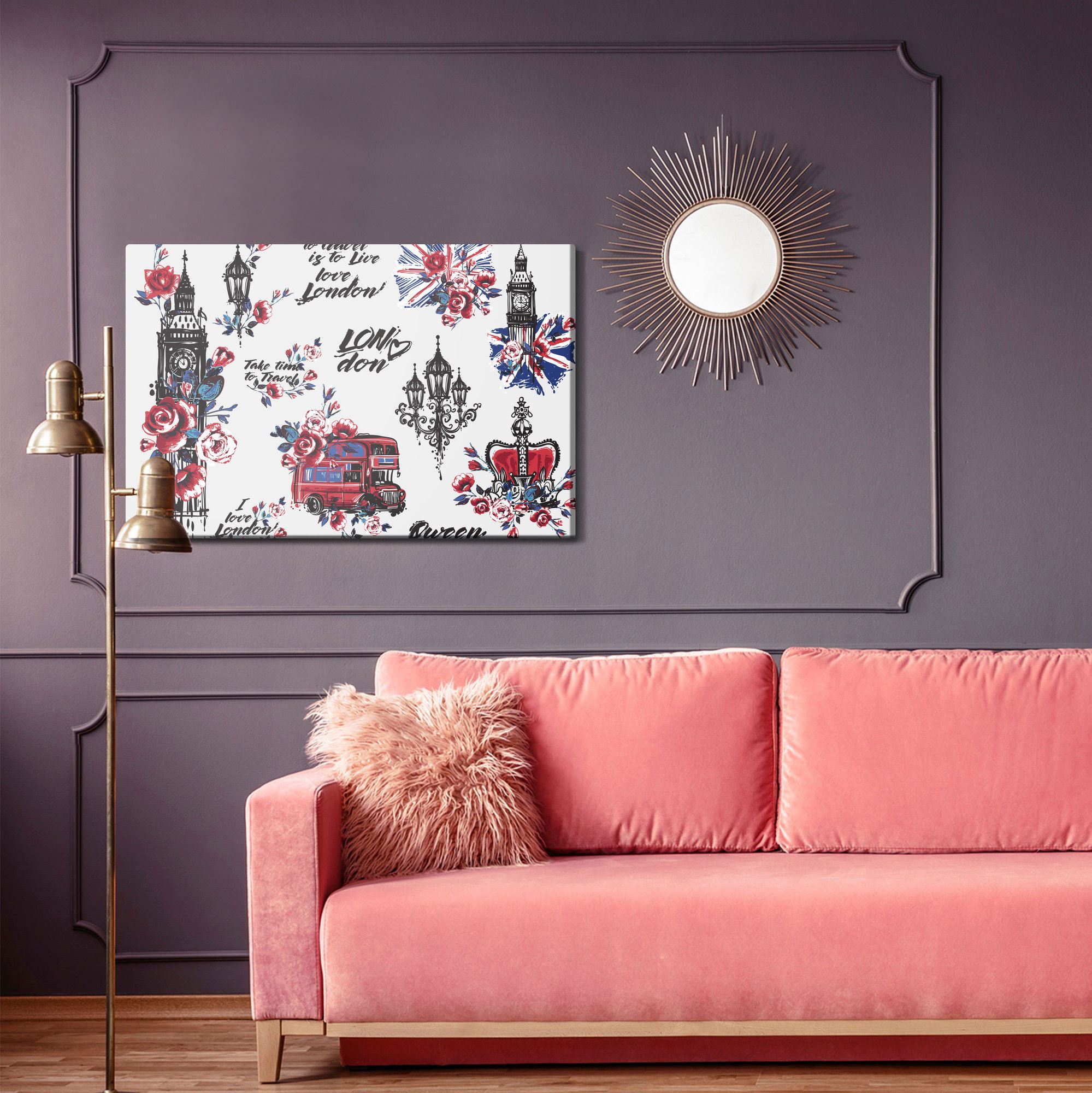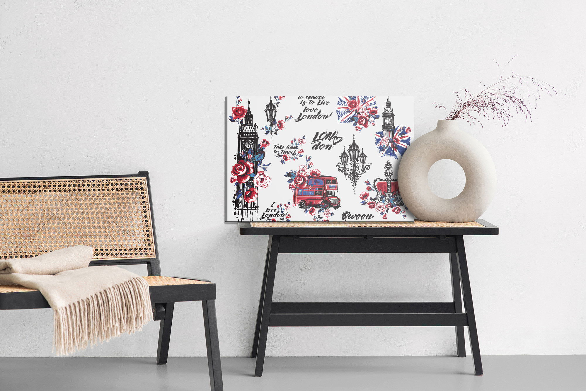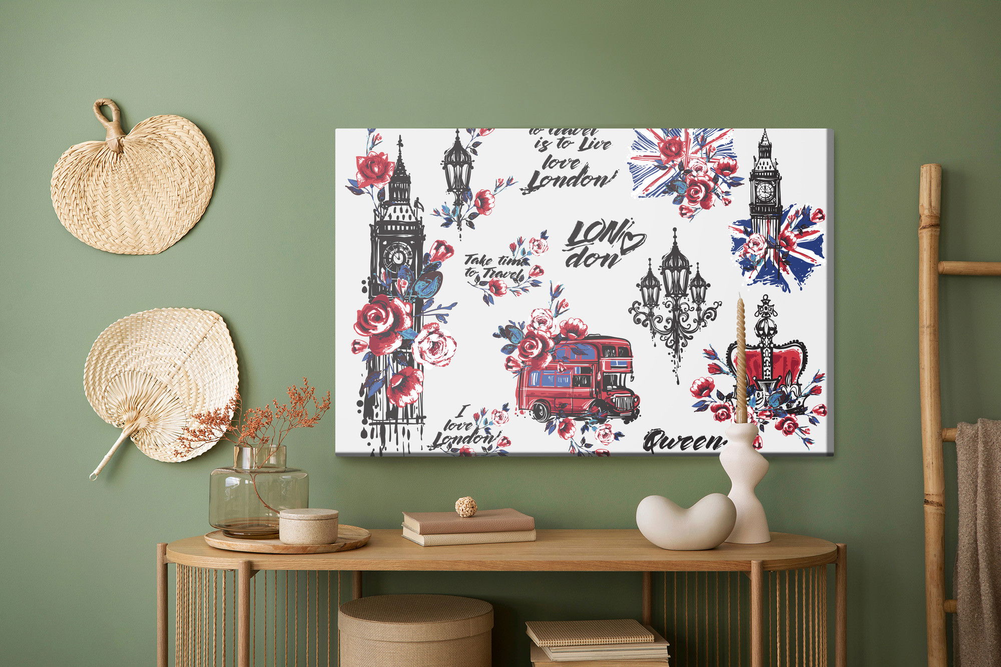 Ljuddämpande tavla – London symbols and flowers för lugnare rum och mjukare akustik